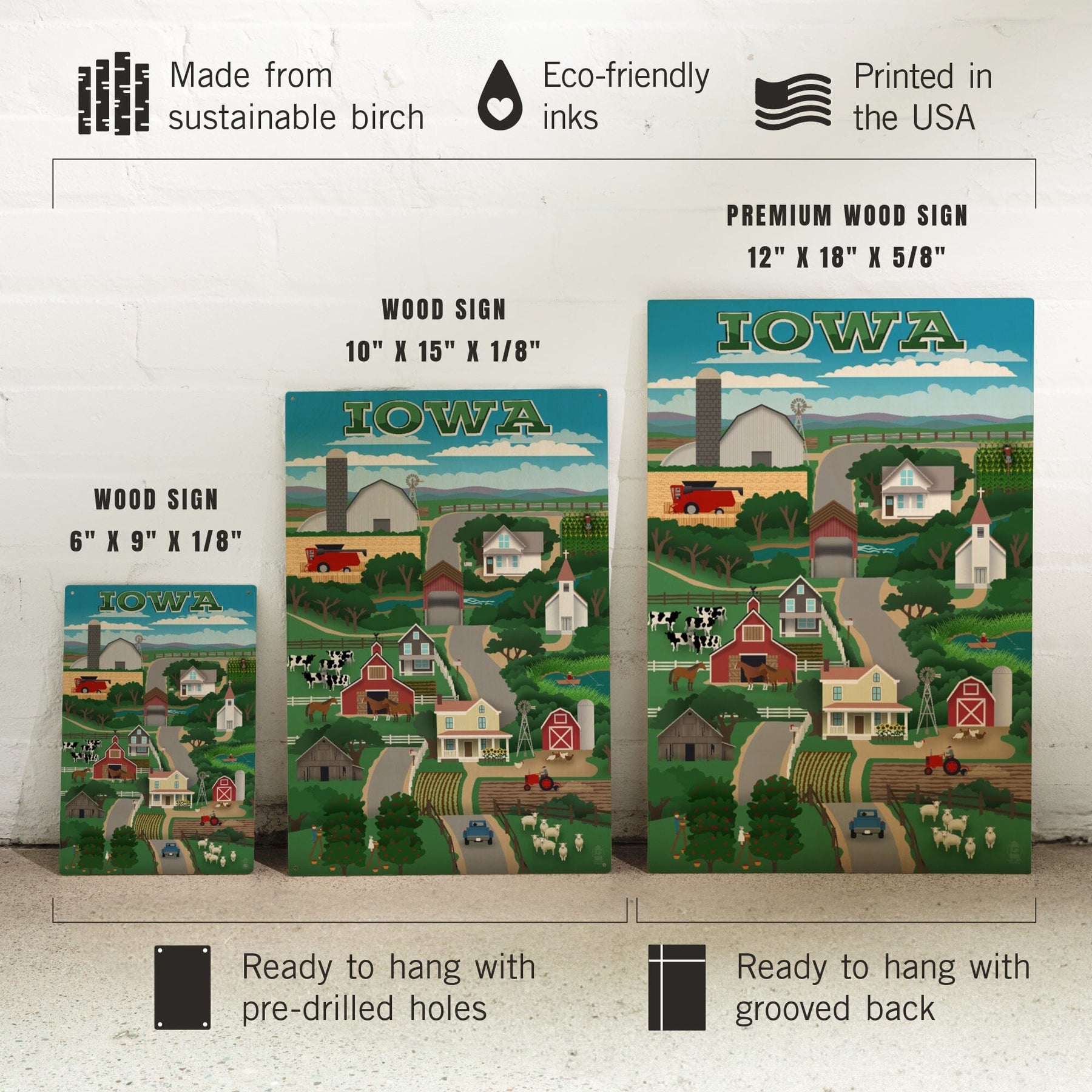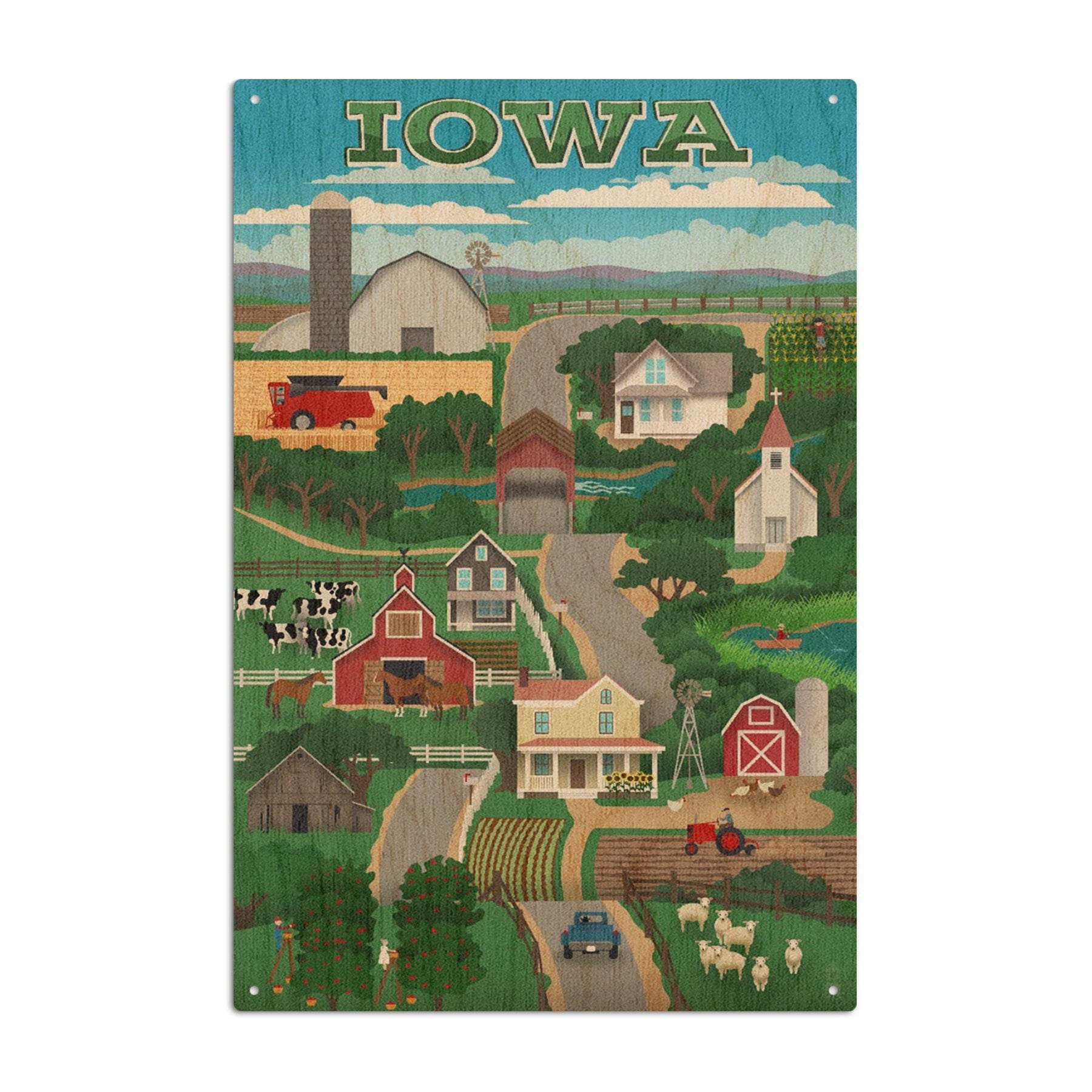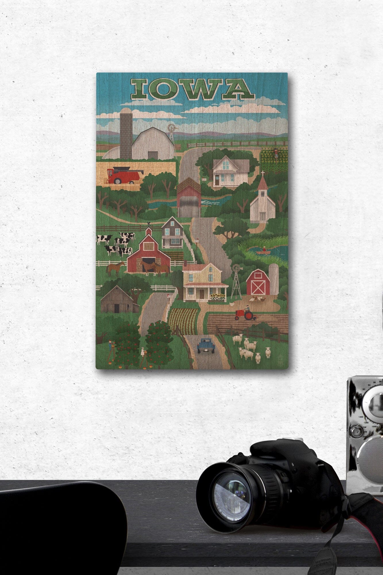 Iowa, Retro Style Countryside, Lantern Press Artwork, Wood Signs and Postcards
