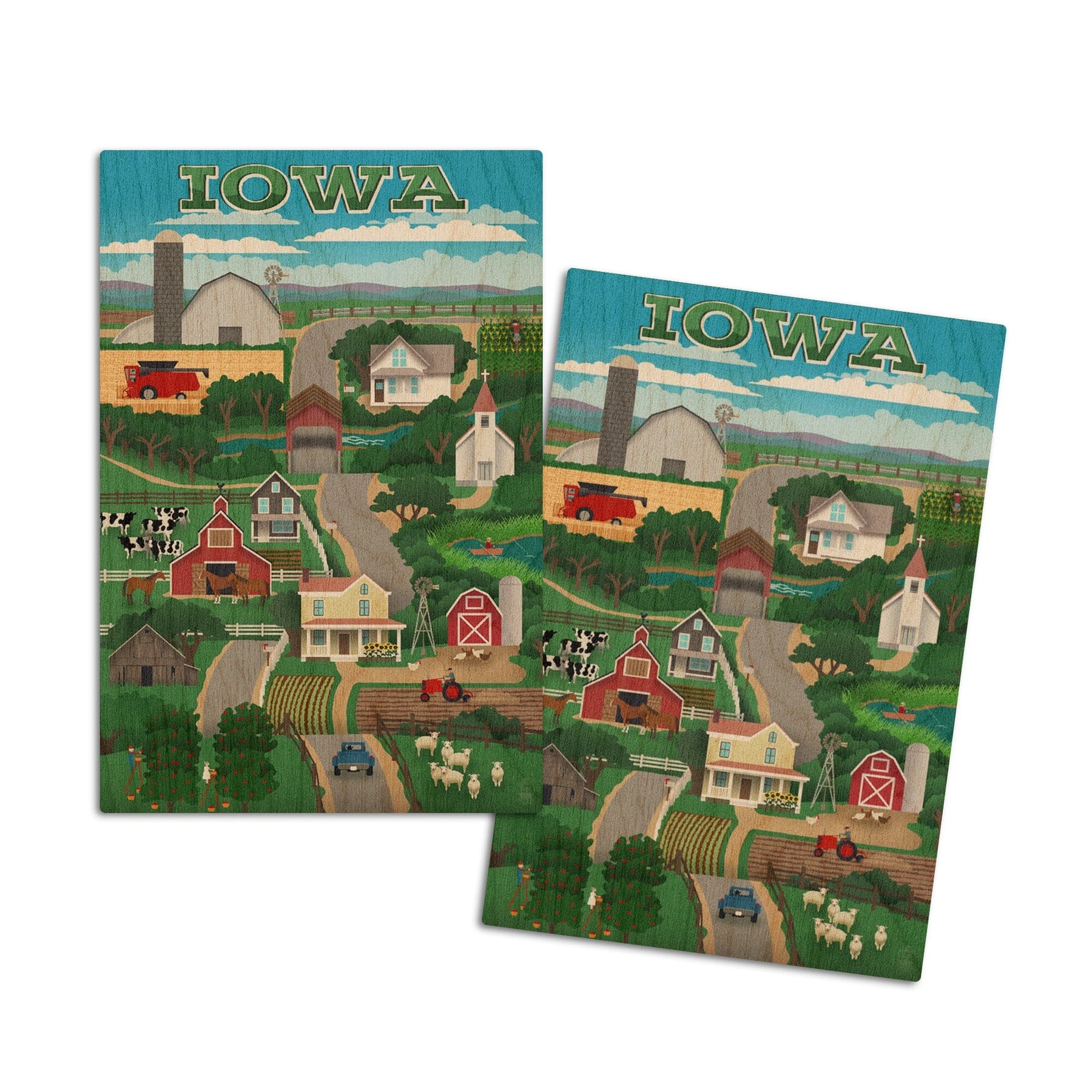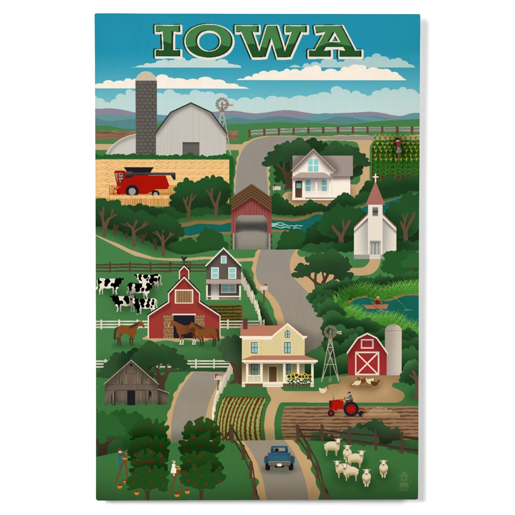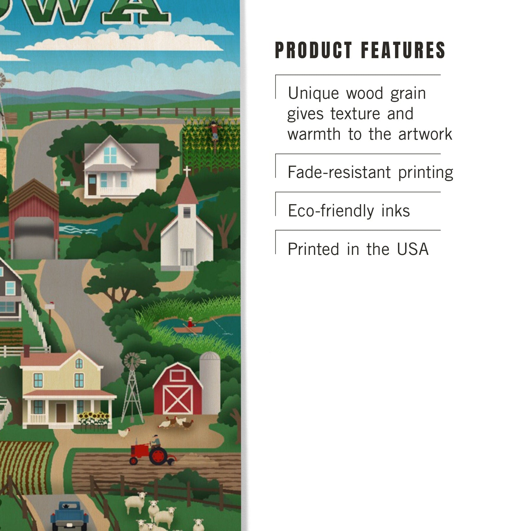 Iowa, Retro Style Countryside, Lantern Press Artwork, Wood Signs and Postcards - Lantern Press