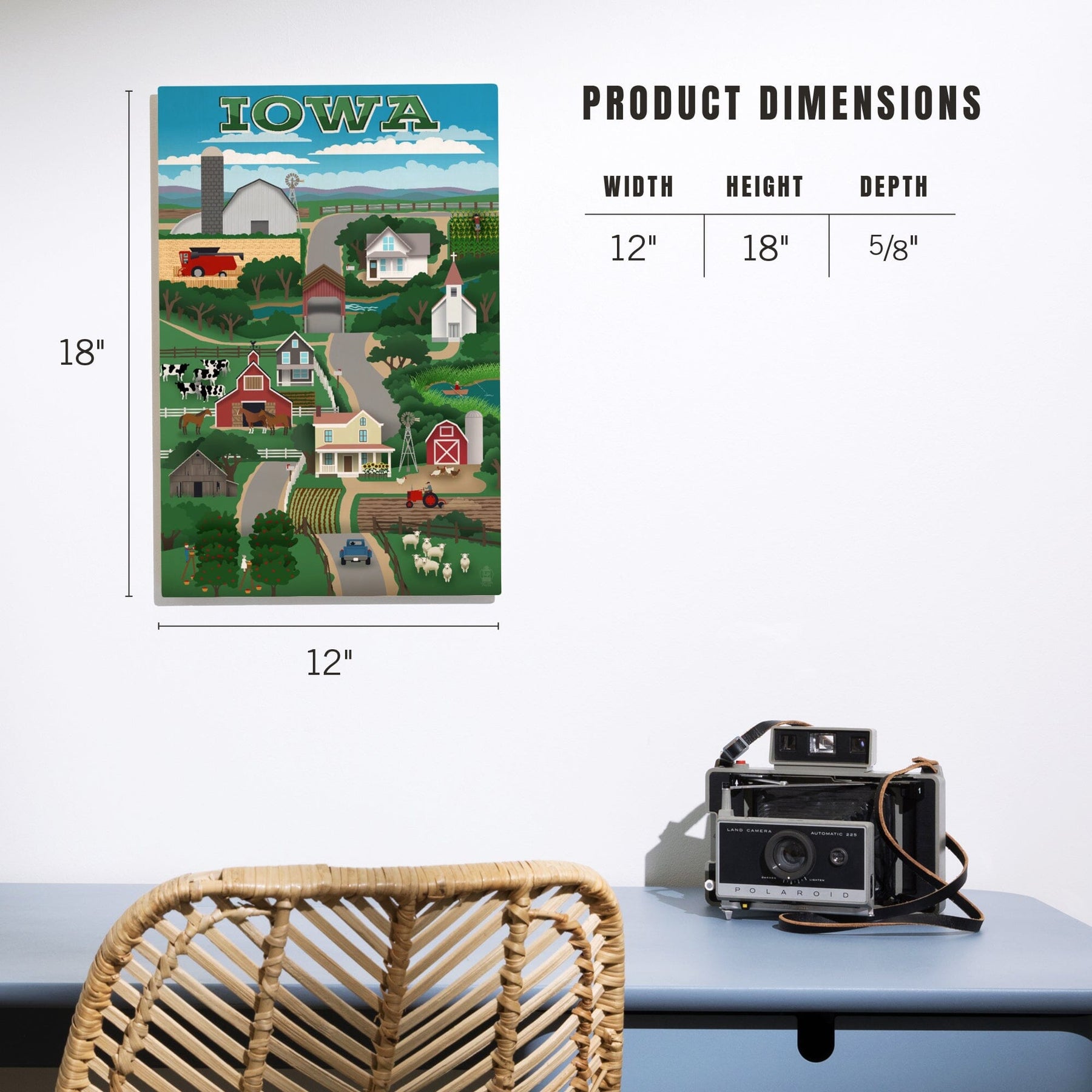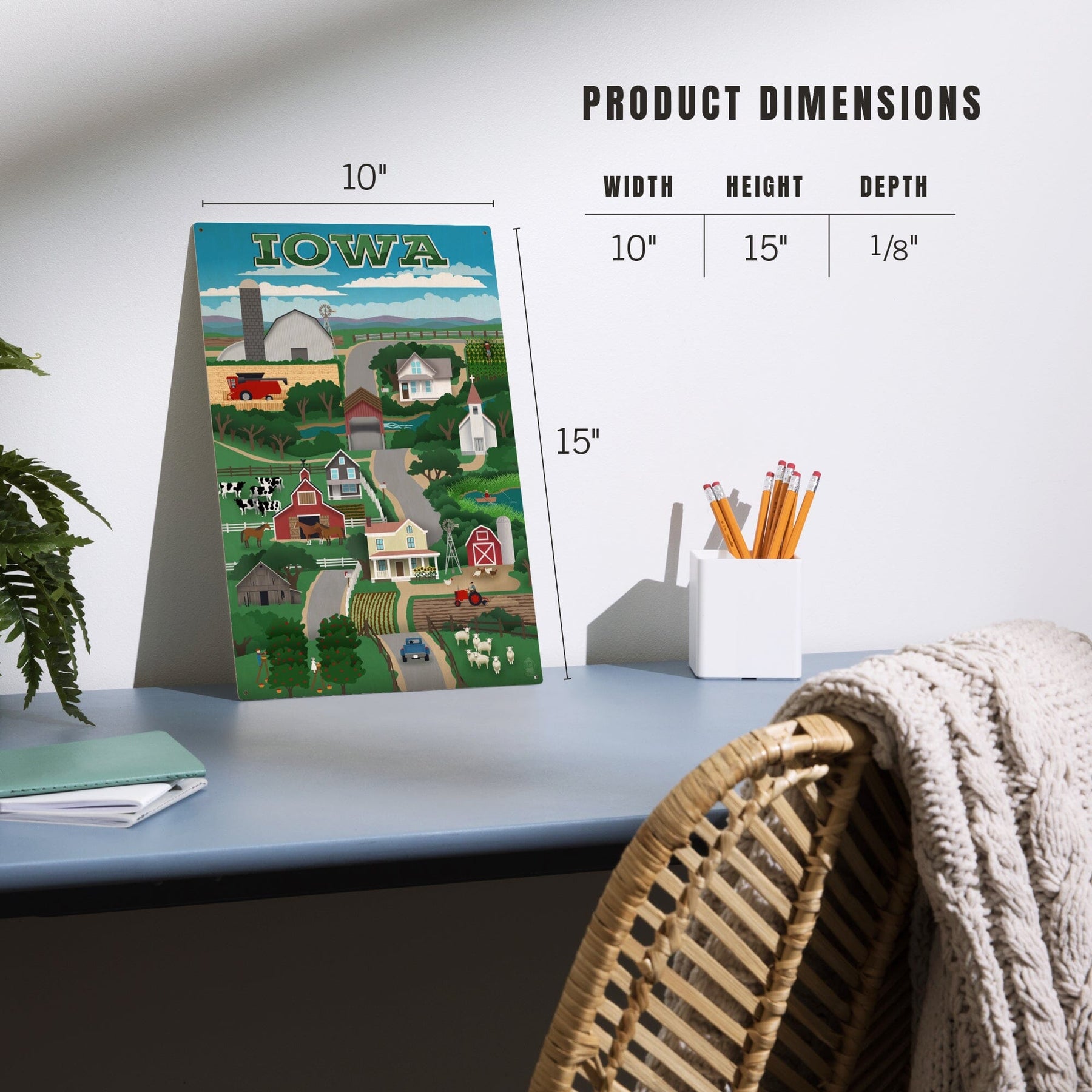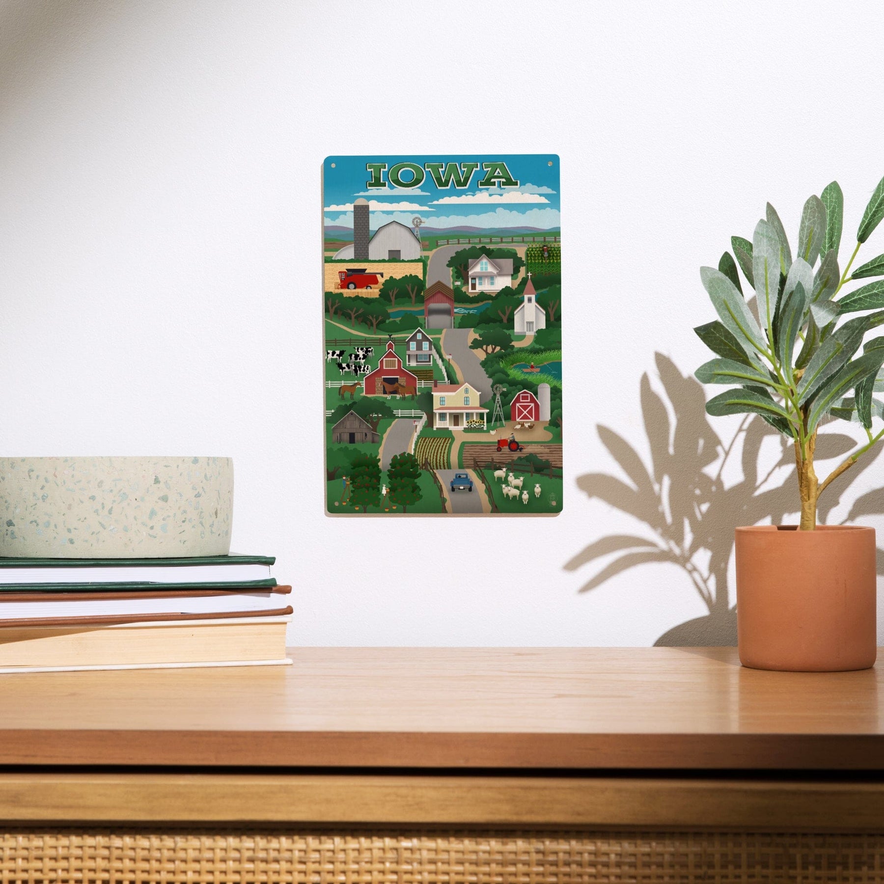 Iowa, Retro Style Countryside, Lantern Press Artwork, Wood Signs and Postcards - Lantern Press
