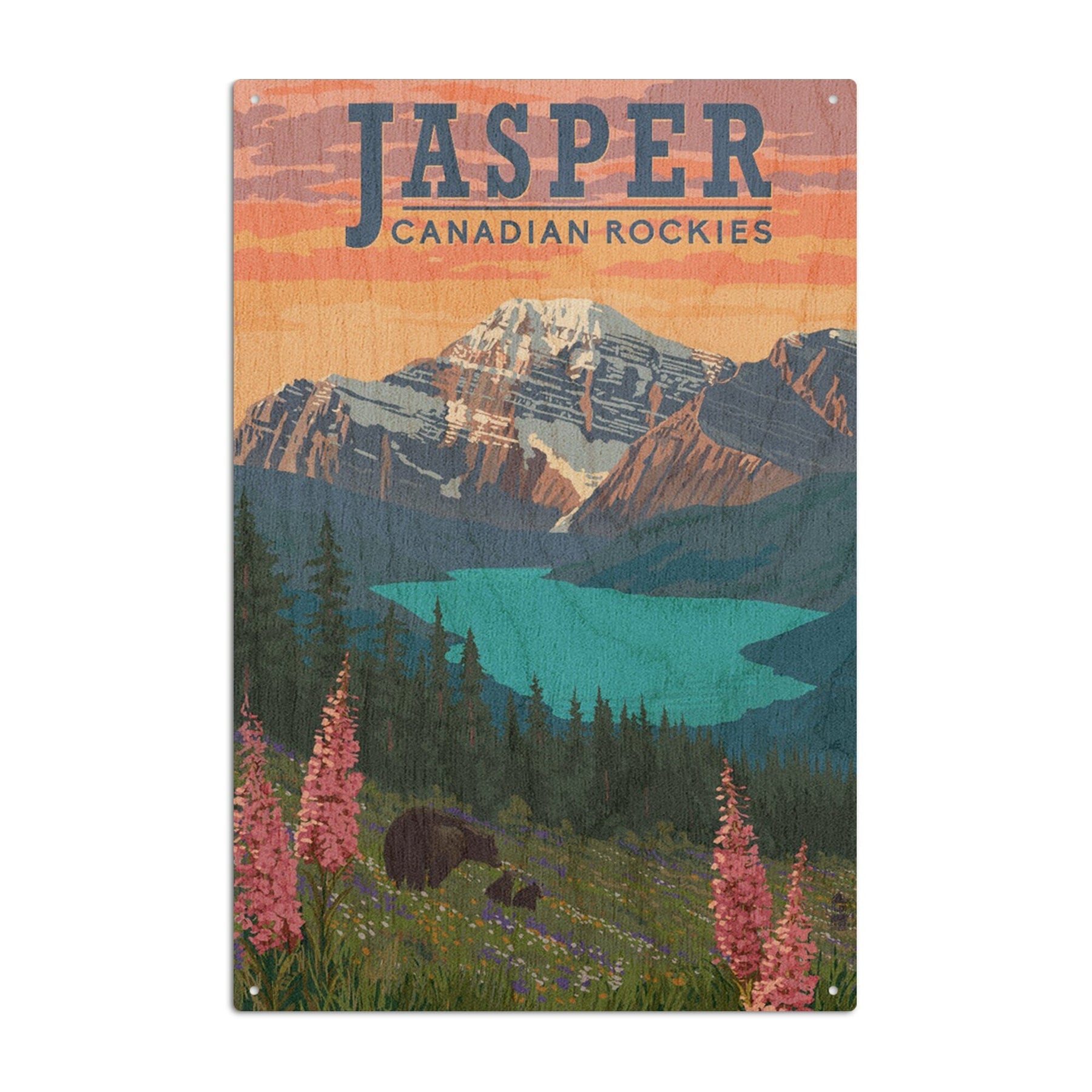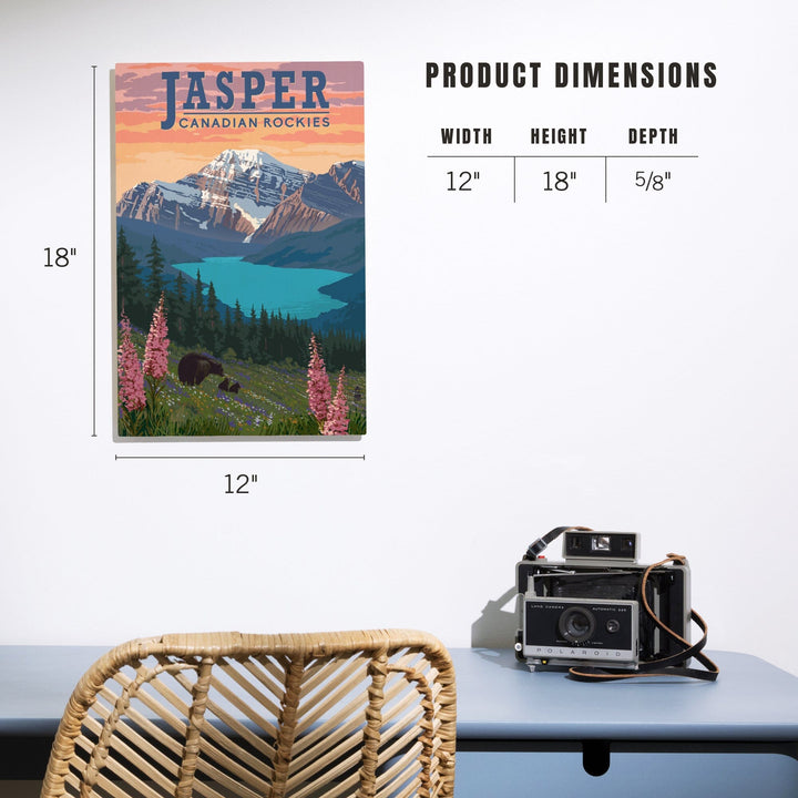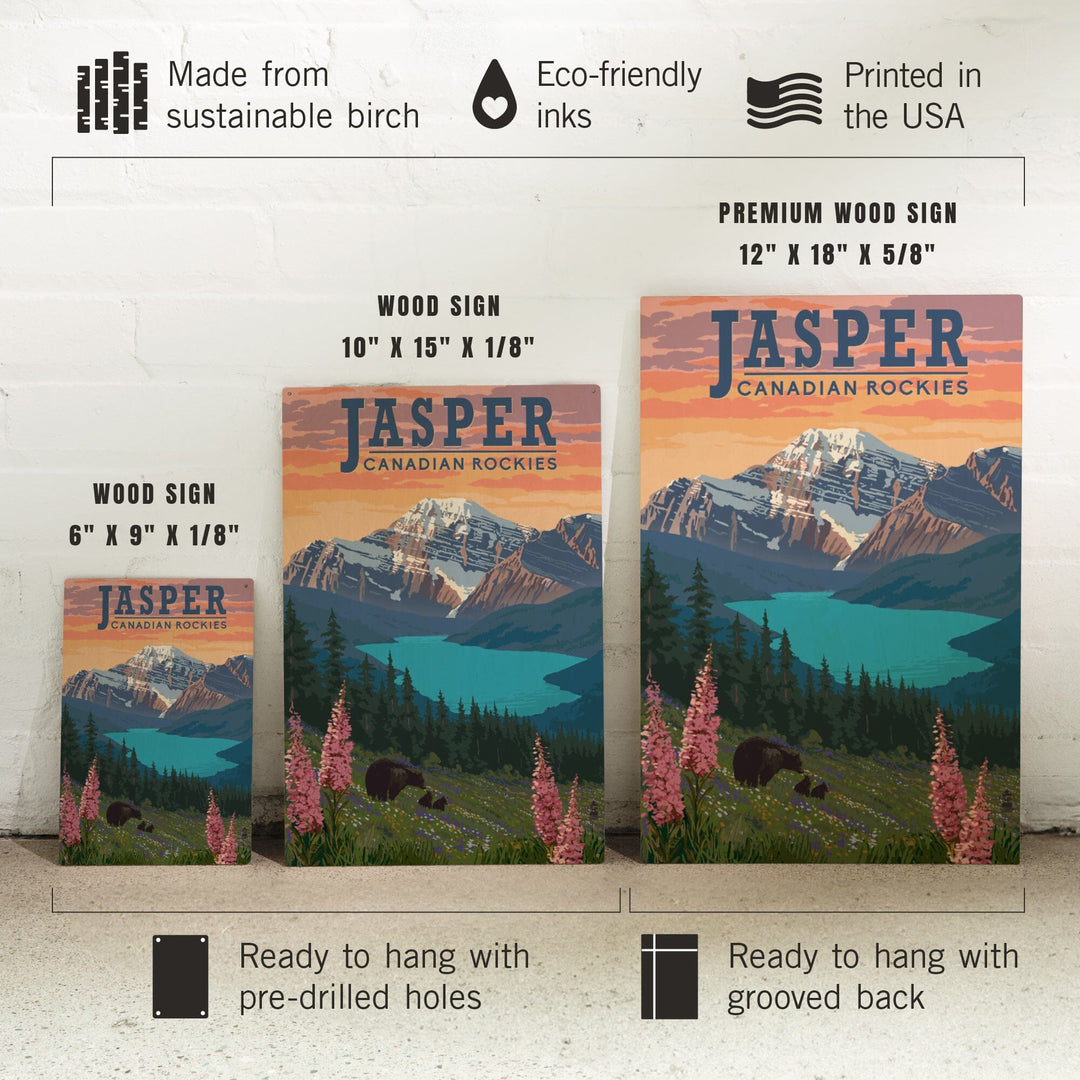 Jasper, Canada, Bear & Spring Flowers, Lantern Press Artwork, Wood Signs and Postcards