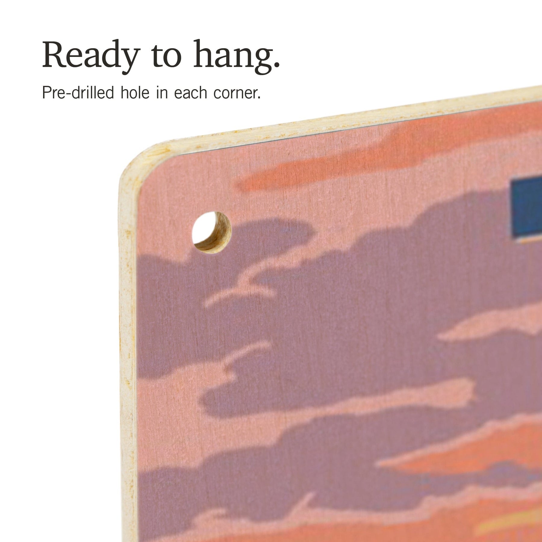 • Hole in each corner, ready to hang