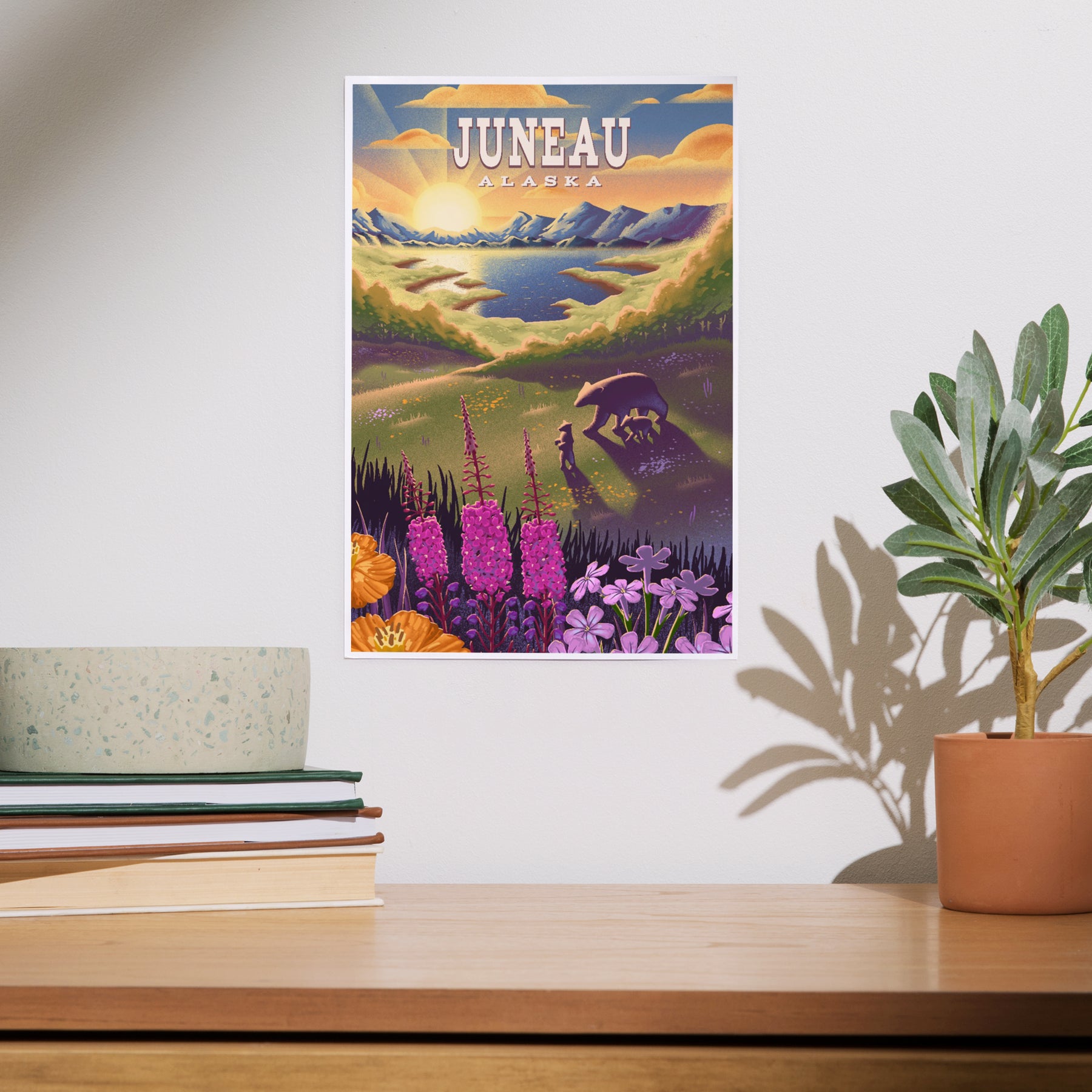 Juneau, Alaska, Bear and Spring Flowers Litho, Art & Giclee Prints