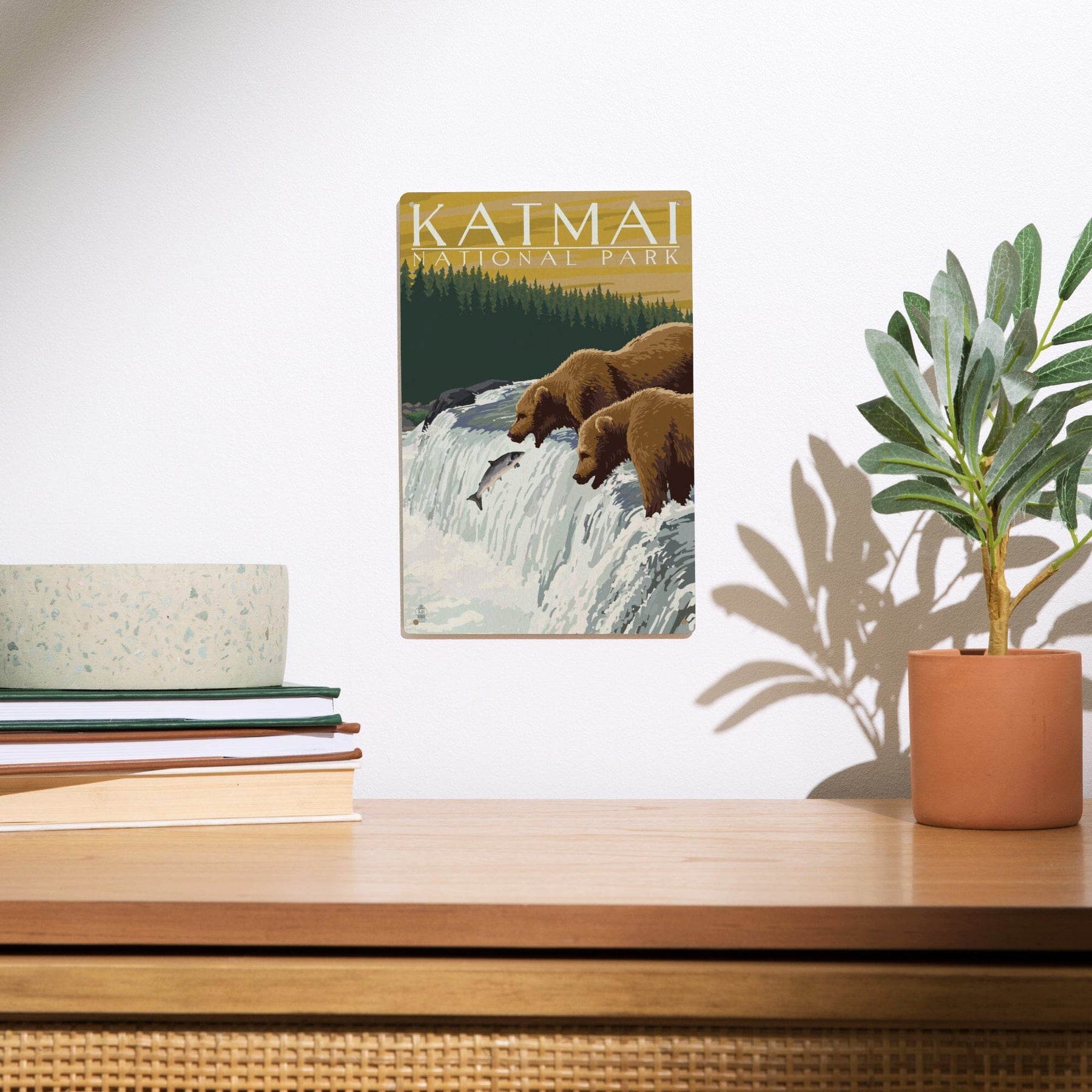 Katmai National Park, Alaska, Bears, Lantern Press Artwork, Wood Signs and Postcards