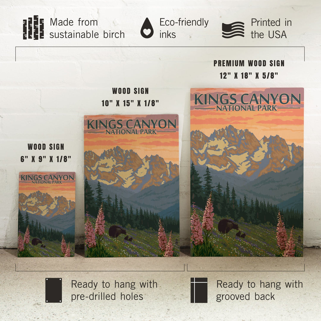 Kings Canyon National Park, Bear Family & Spring Flowers, Lantern Press Poster, Wood Signs and Postcards