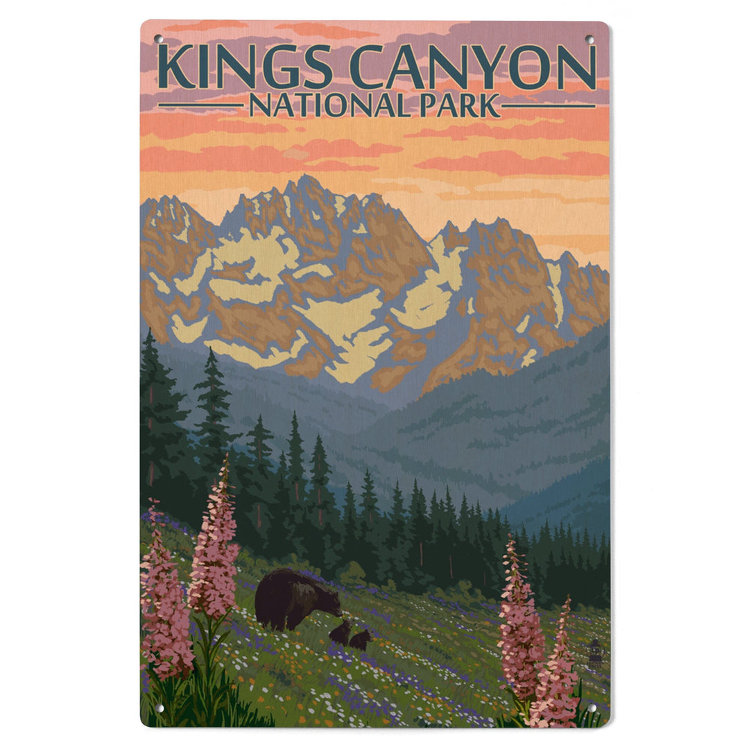 Kings Canyon National Park, Bear Family & Spring Flowers, Lantern Press Poster, Wood Signs and Postcards - Lantern Press