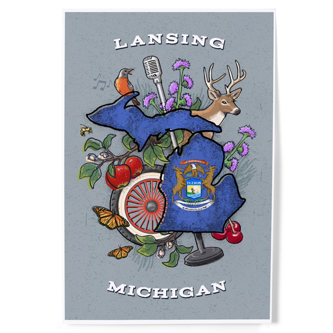 Lansing, Michigan, State Treasure Trove, Art & Giclee Prints Art Lantern Press