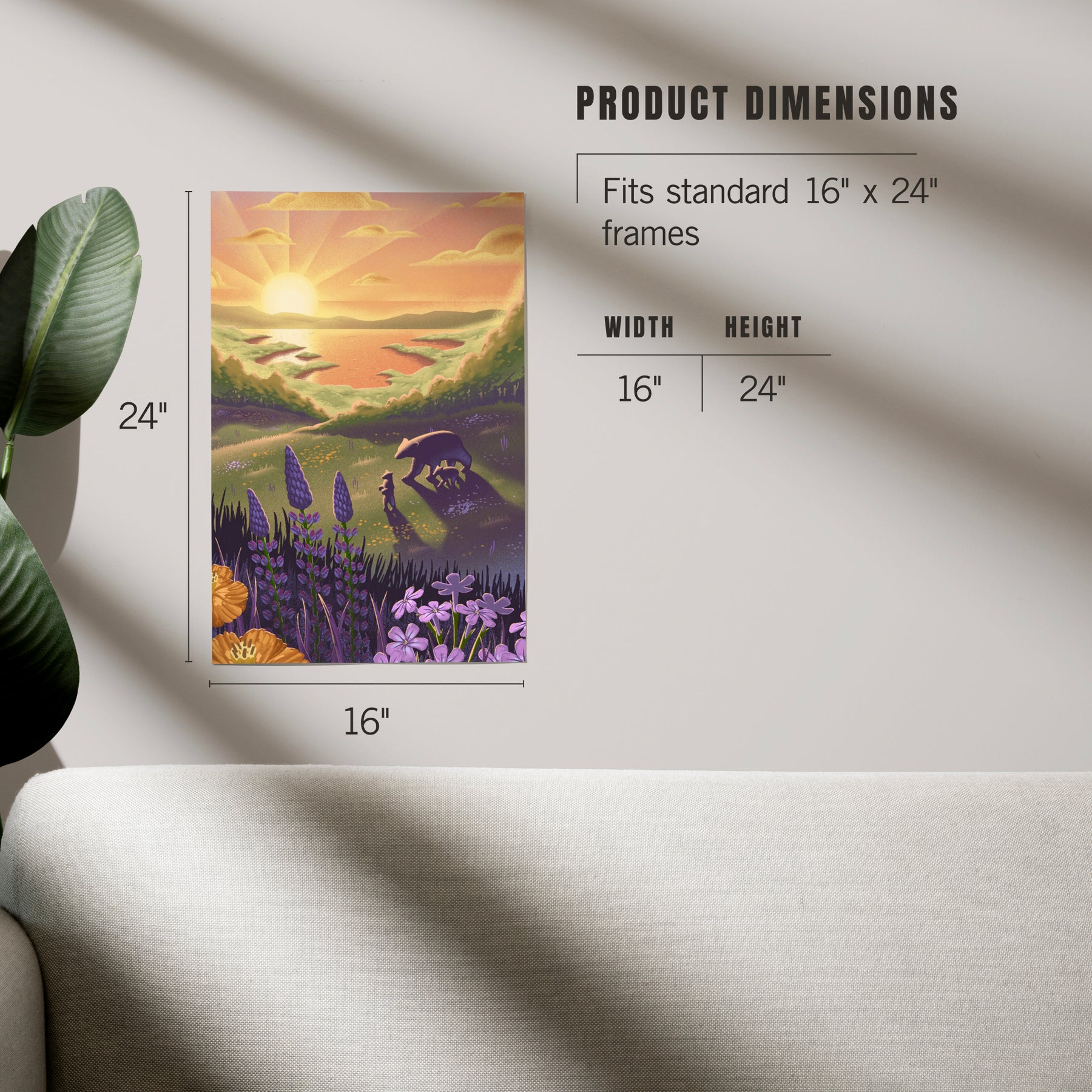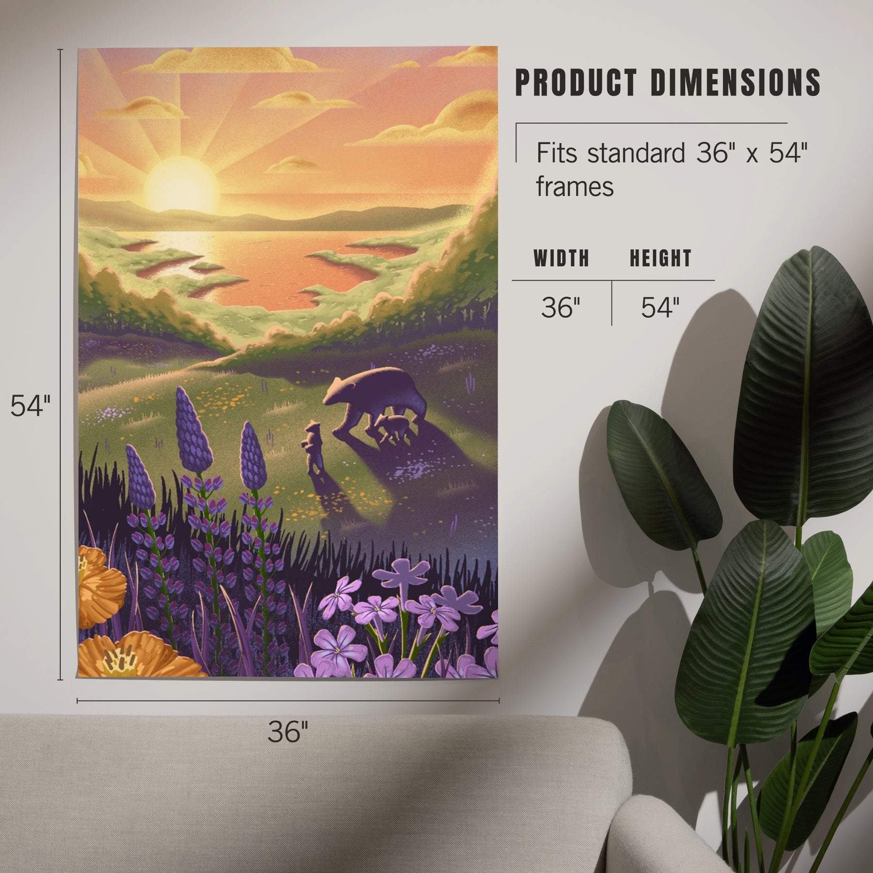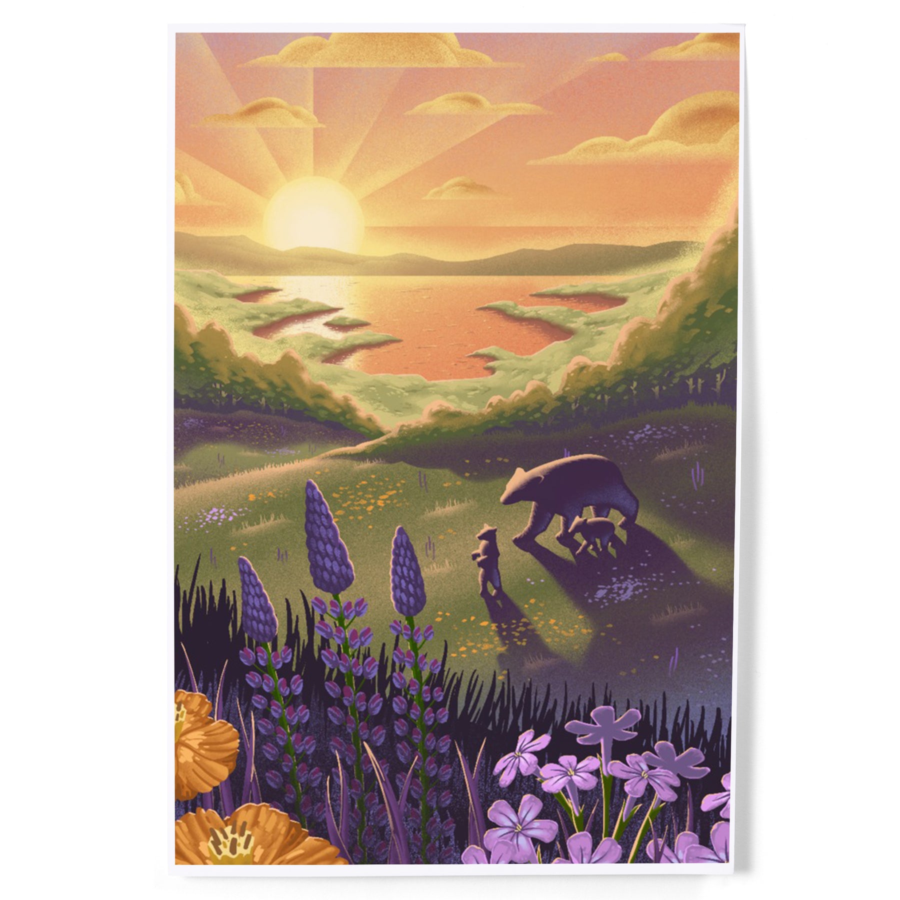 Lithograph, Bear and Spring Flowers, Lake,, Art & Giclee Prints Art Lantern Press