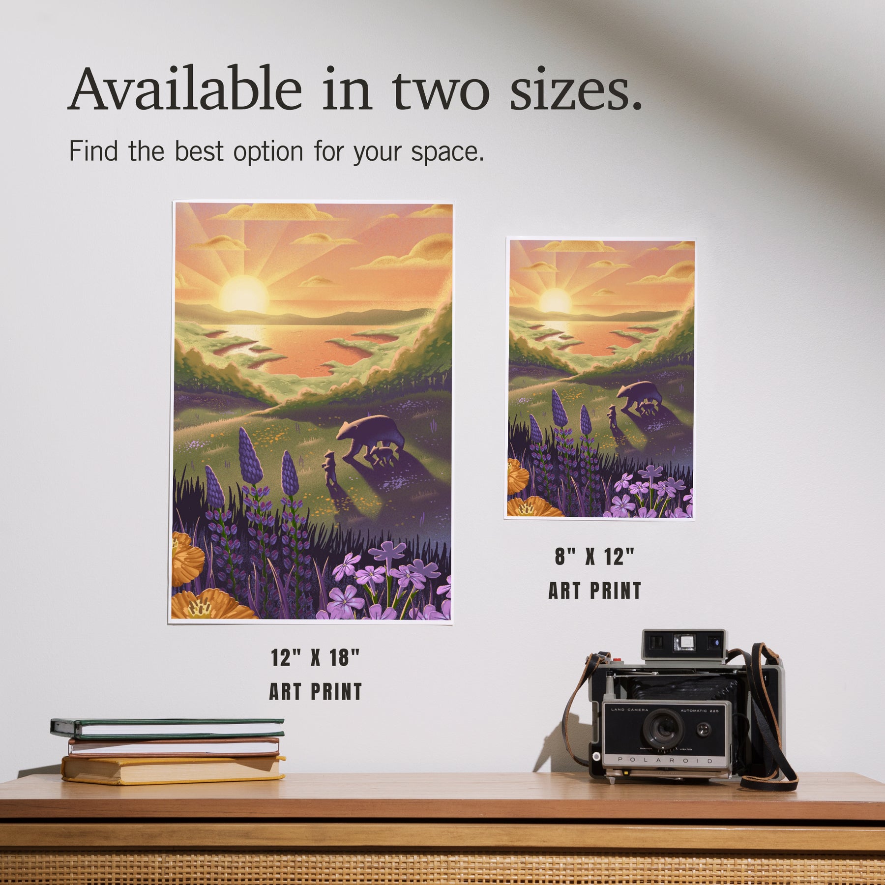 • 11x14 Matted Print: Image size measures 7.5 by 10.5 inches with an added 3.5 inch beveled edge mat board. Total size of art print measures 11 by 14 inches