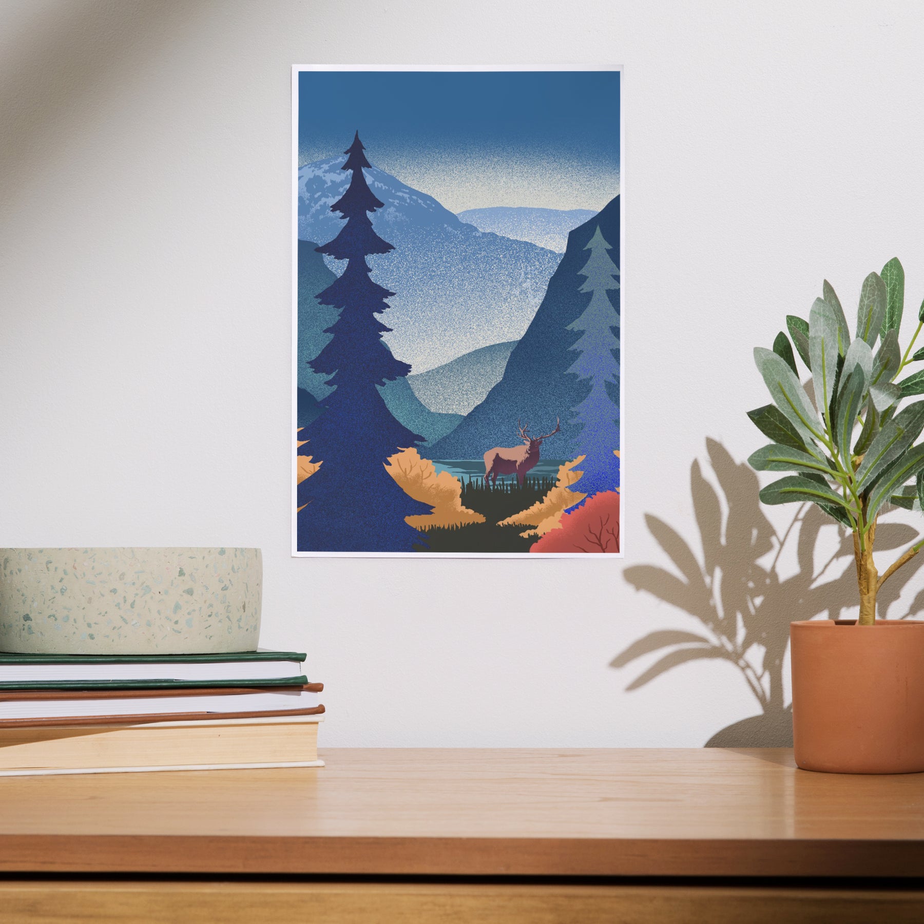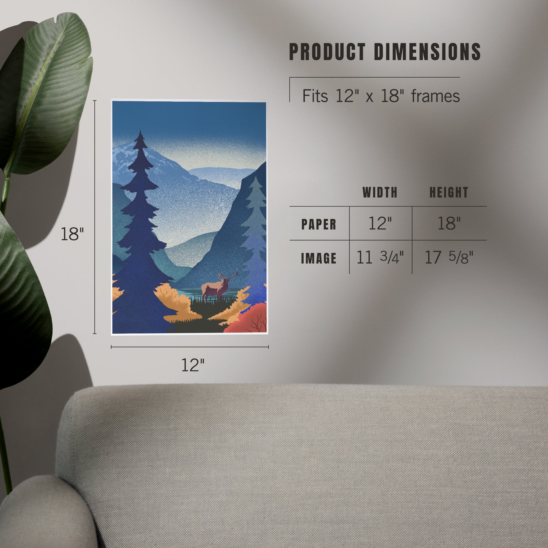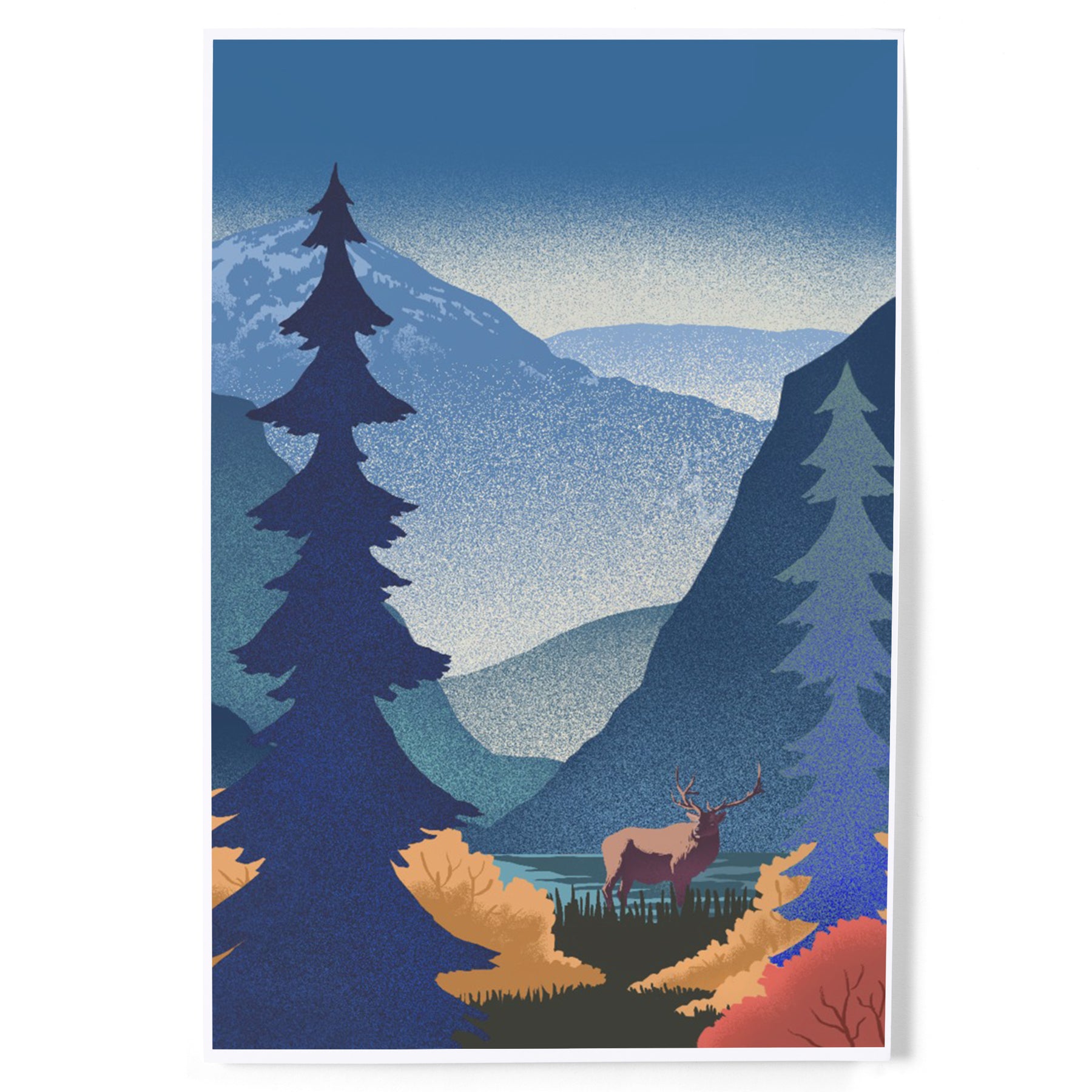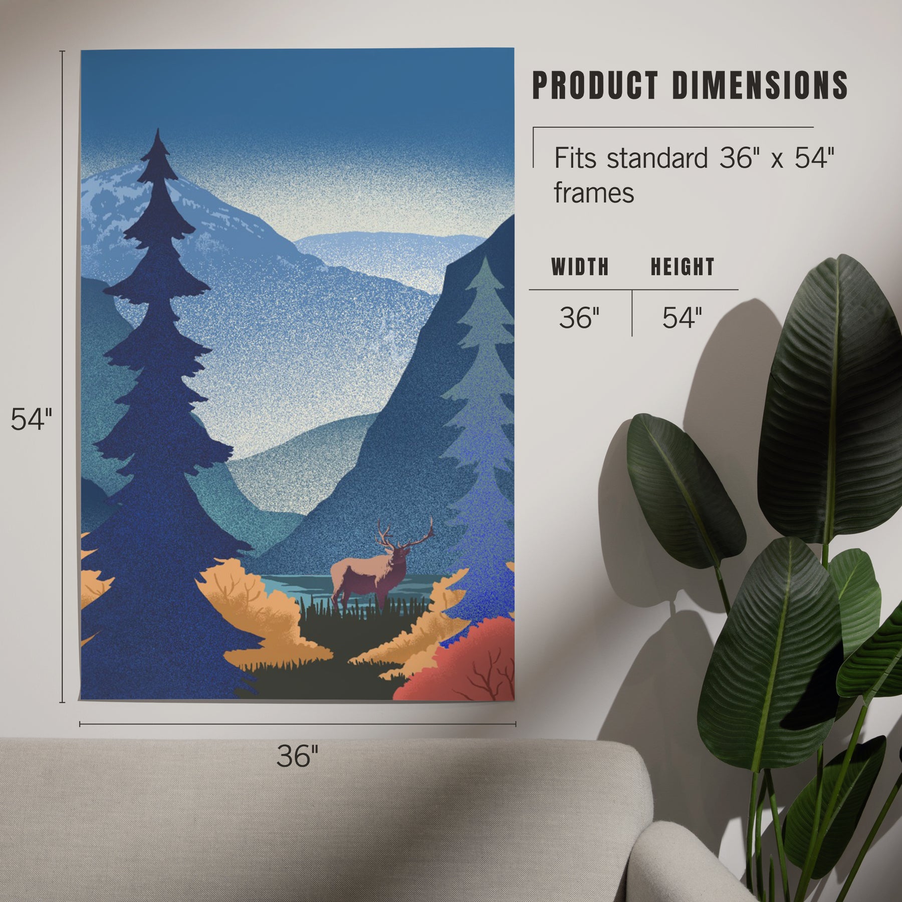 Lithograph, Elk and Mountains Scene,, Art & Giclee Prints Art Lantern Press