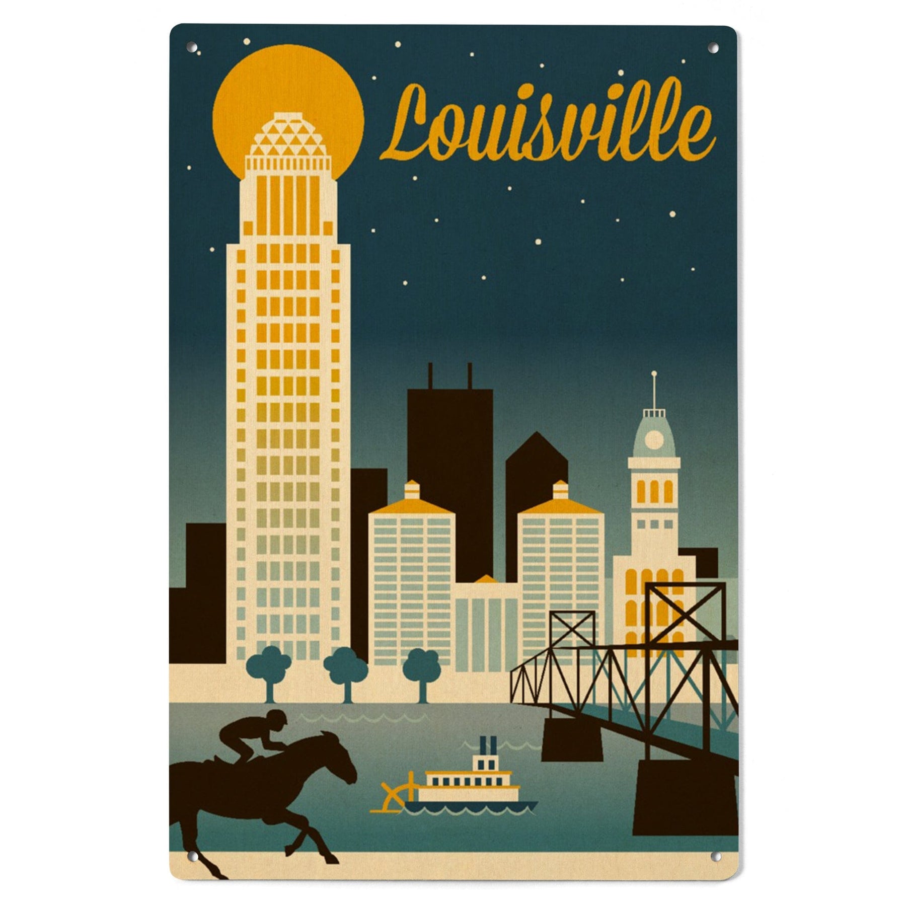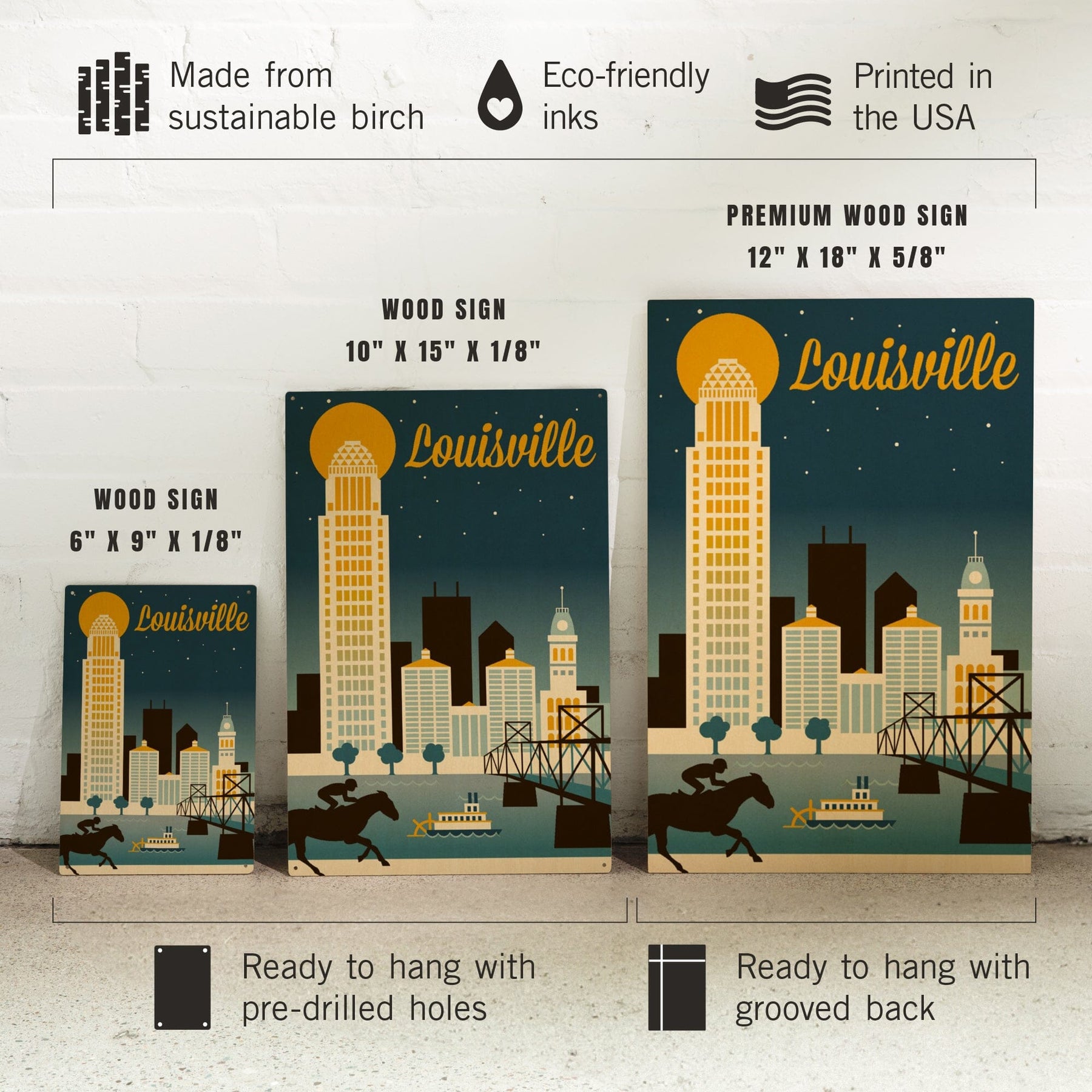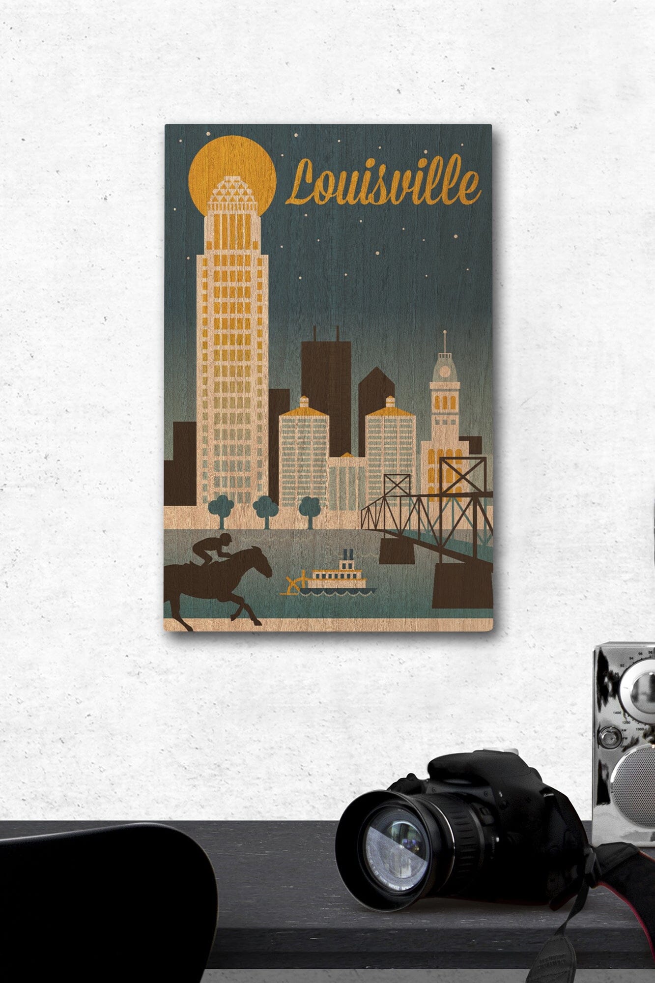 Louisville, Kentucky, Retro Skyline Classic Series, Lantern Press Artwork, Wood Signs and Postcards