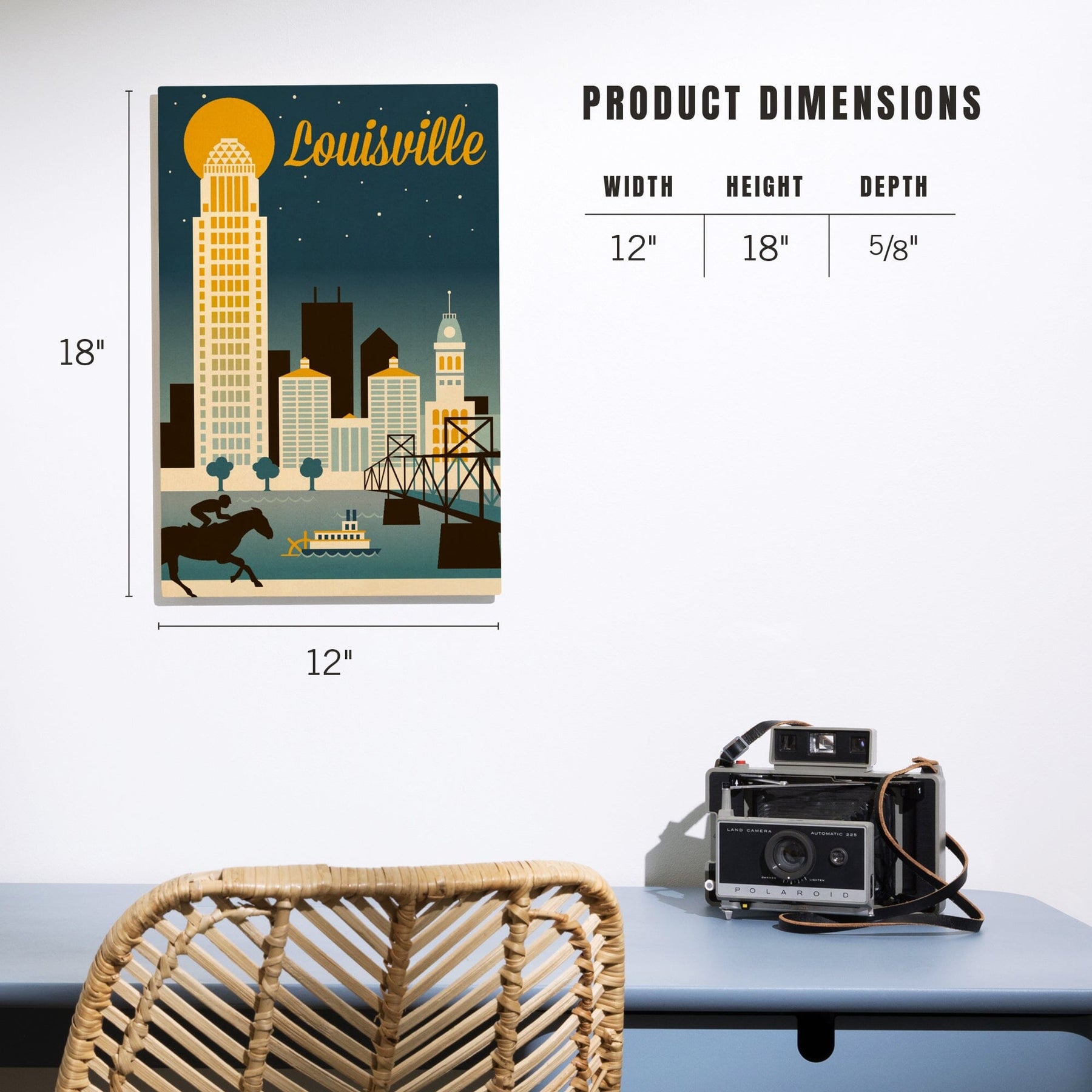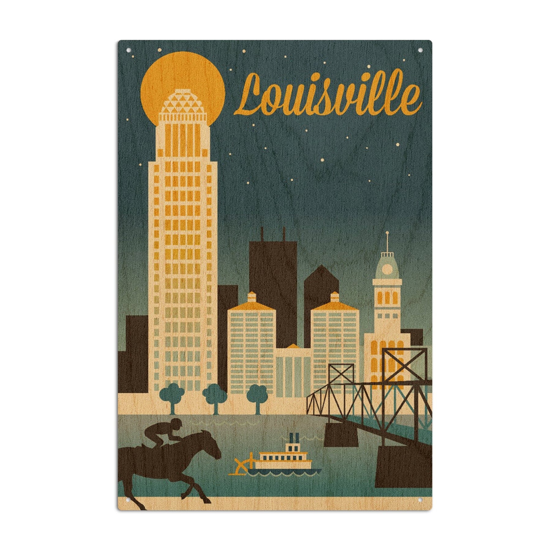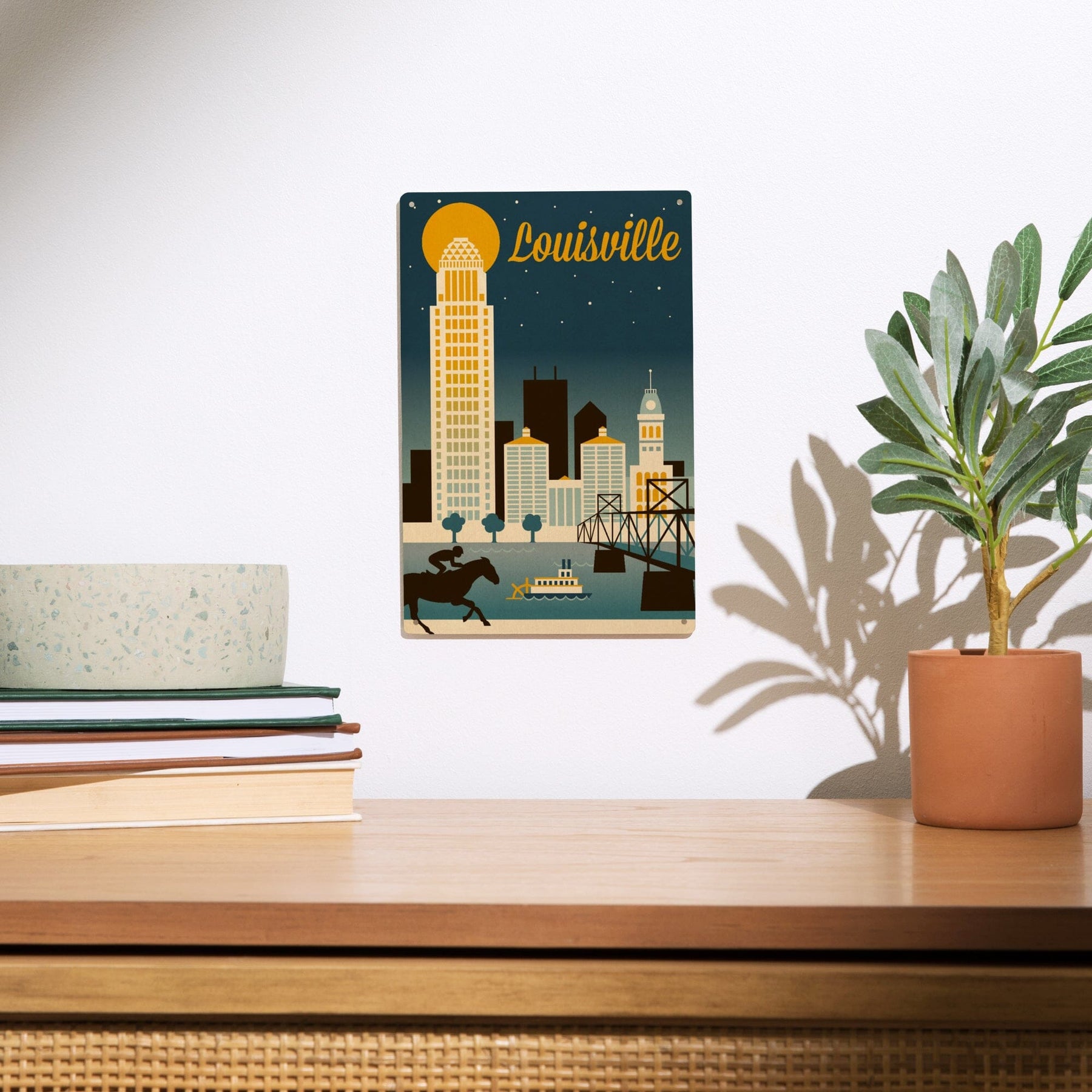 Louisville, Kentucky, Retro Skyline Classic Series, Lantern Press Artwork, Wood Signs and Postcards