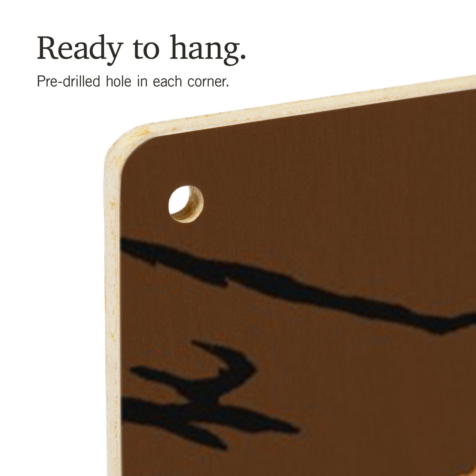 • Hole in each corner, ready to hang