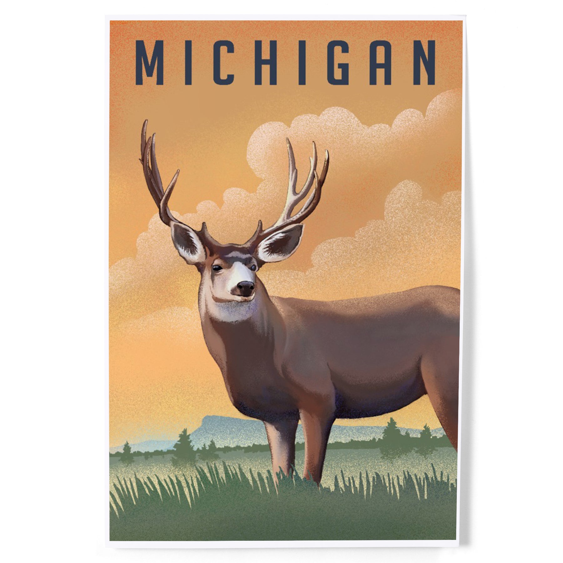Michigan, Mule Deer, Litho, Art & Giclee Prints Art Lantern Press