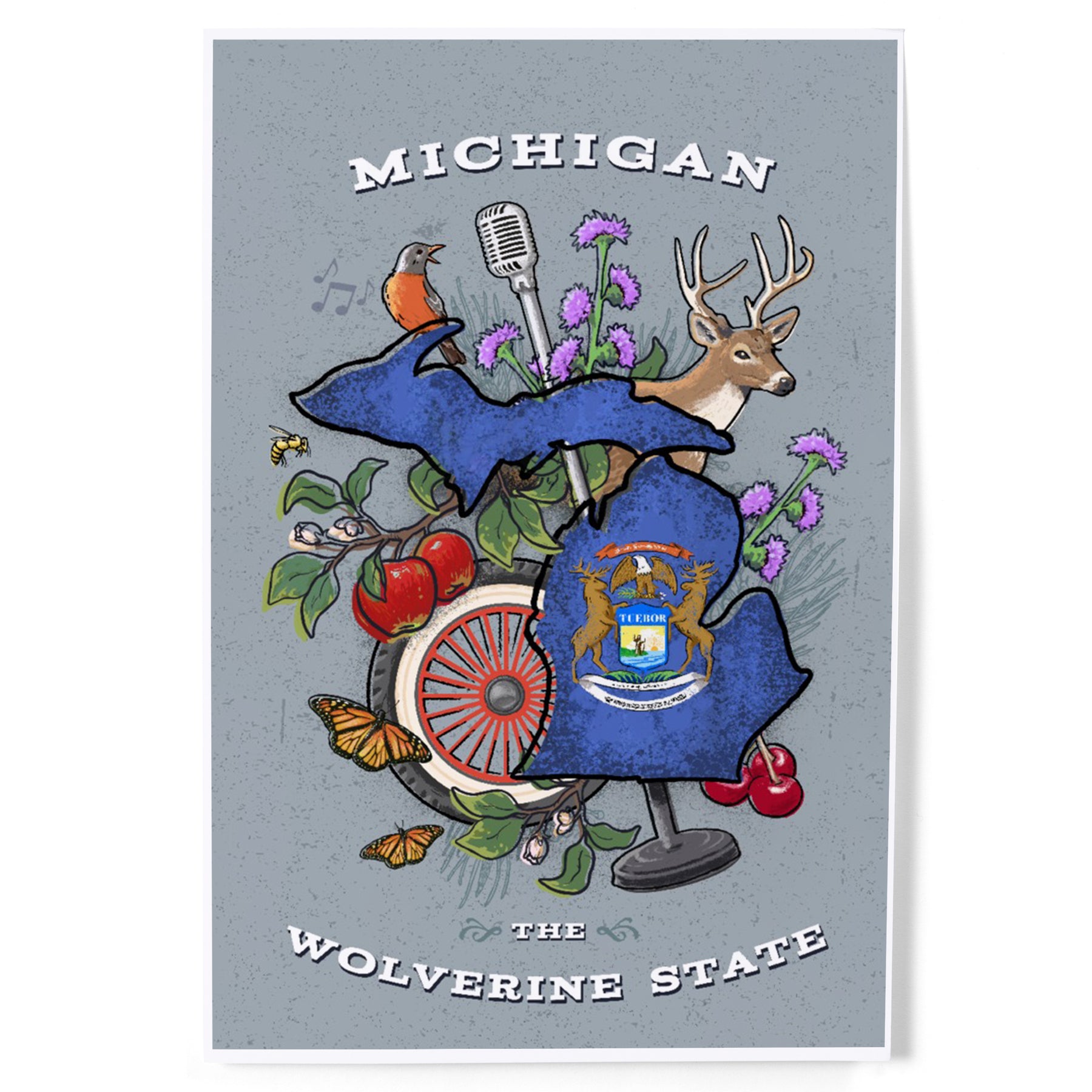Michigan, State Treasure Trove, Art & Giclee Prints Art Lantern Press