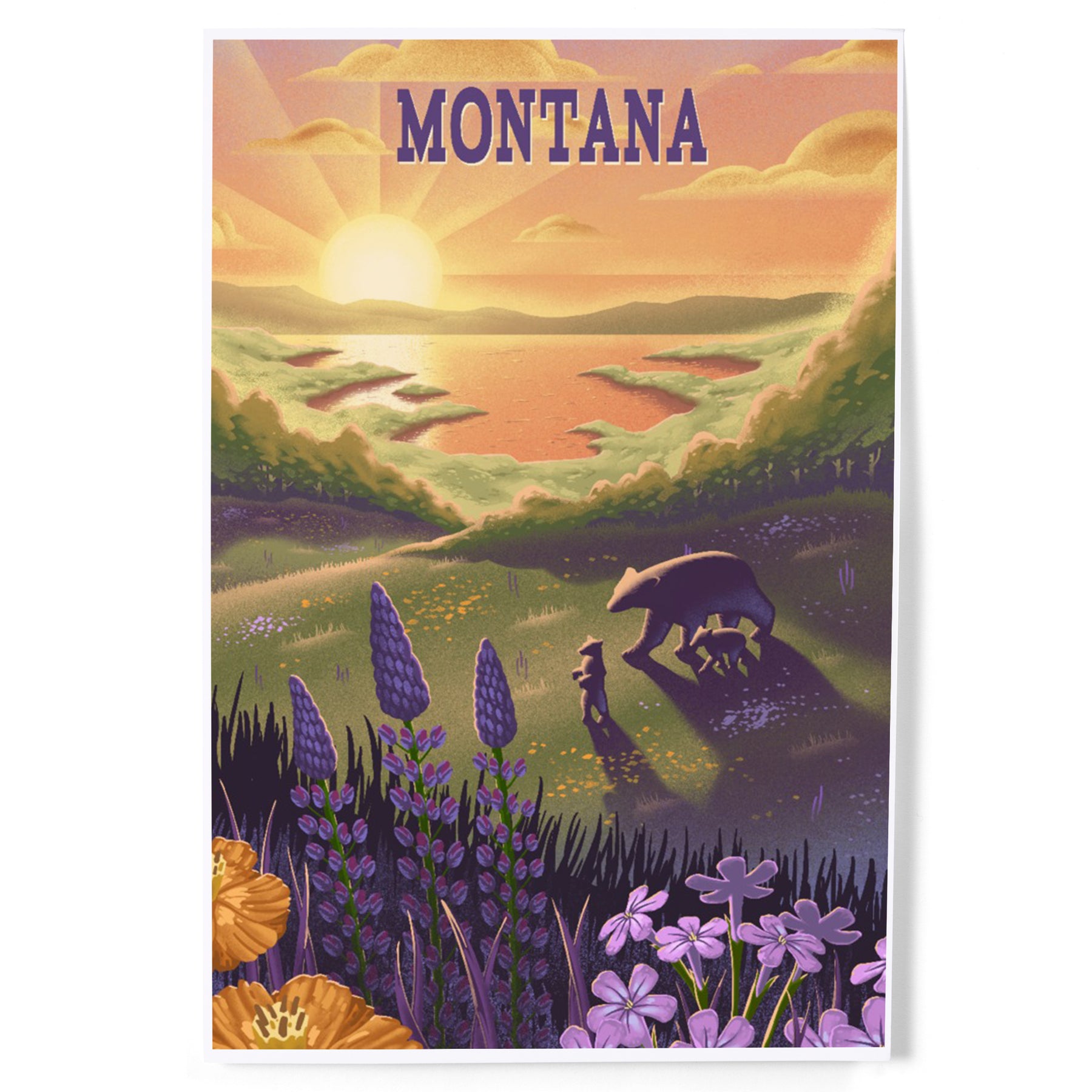 Montana, Lithograph, Bear and Spring Flowers, Lake, Art & Giclee Prints Art Lantern Press