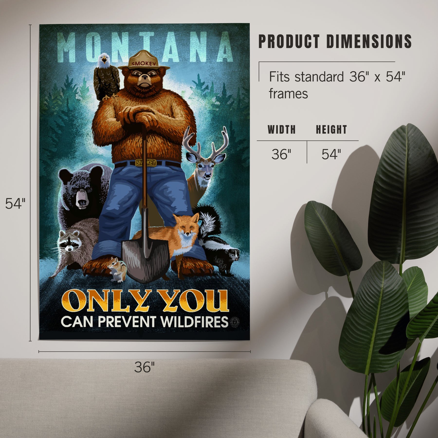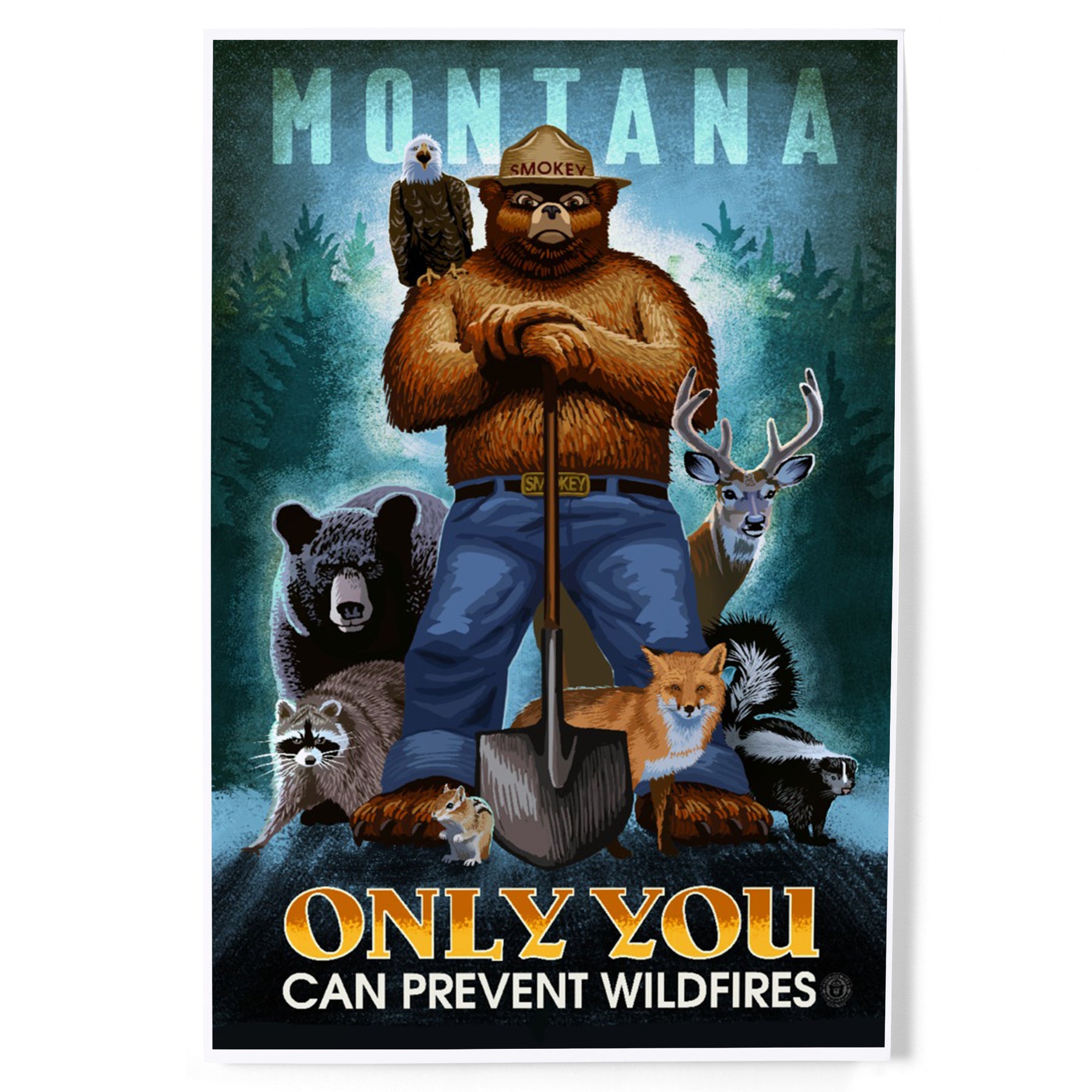 Montana, Smokey Bear and Friends, Only You Can Prevent Wildfires, Art & Giclee Prints