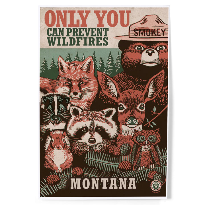 Montana, Smokey Bear and Woodland Creatures, Officially Licensed, Art & Giclee Prints Art Lantern Press
