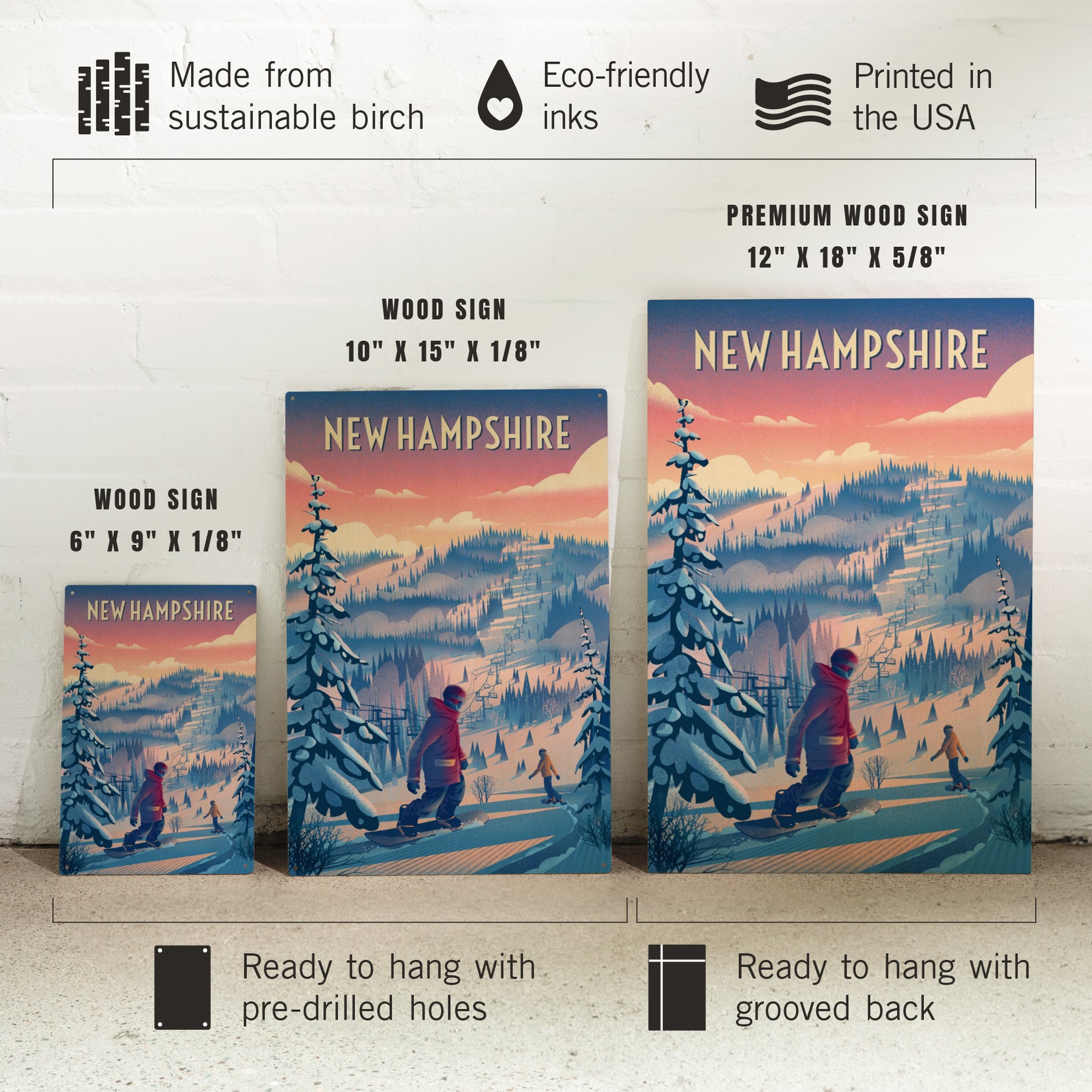 New Hampshire, Shred the Gnar, Snowboarding, Wood Signs and Postcards Wood Lantern Press