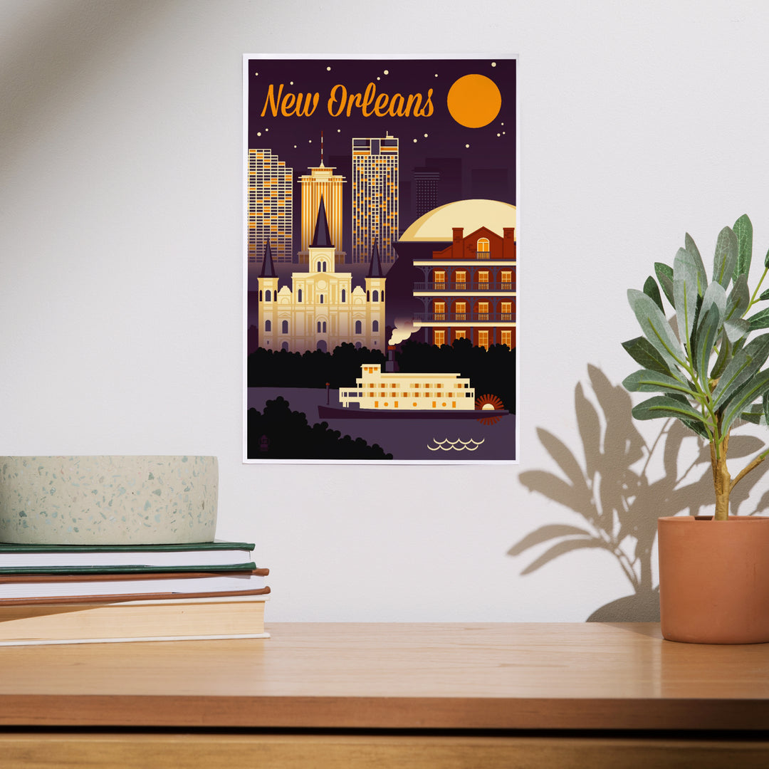 New Orleans, Louisiana, Retro Skyline Chromatic Series, Art & Giclee Prints Art Lantern Press