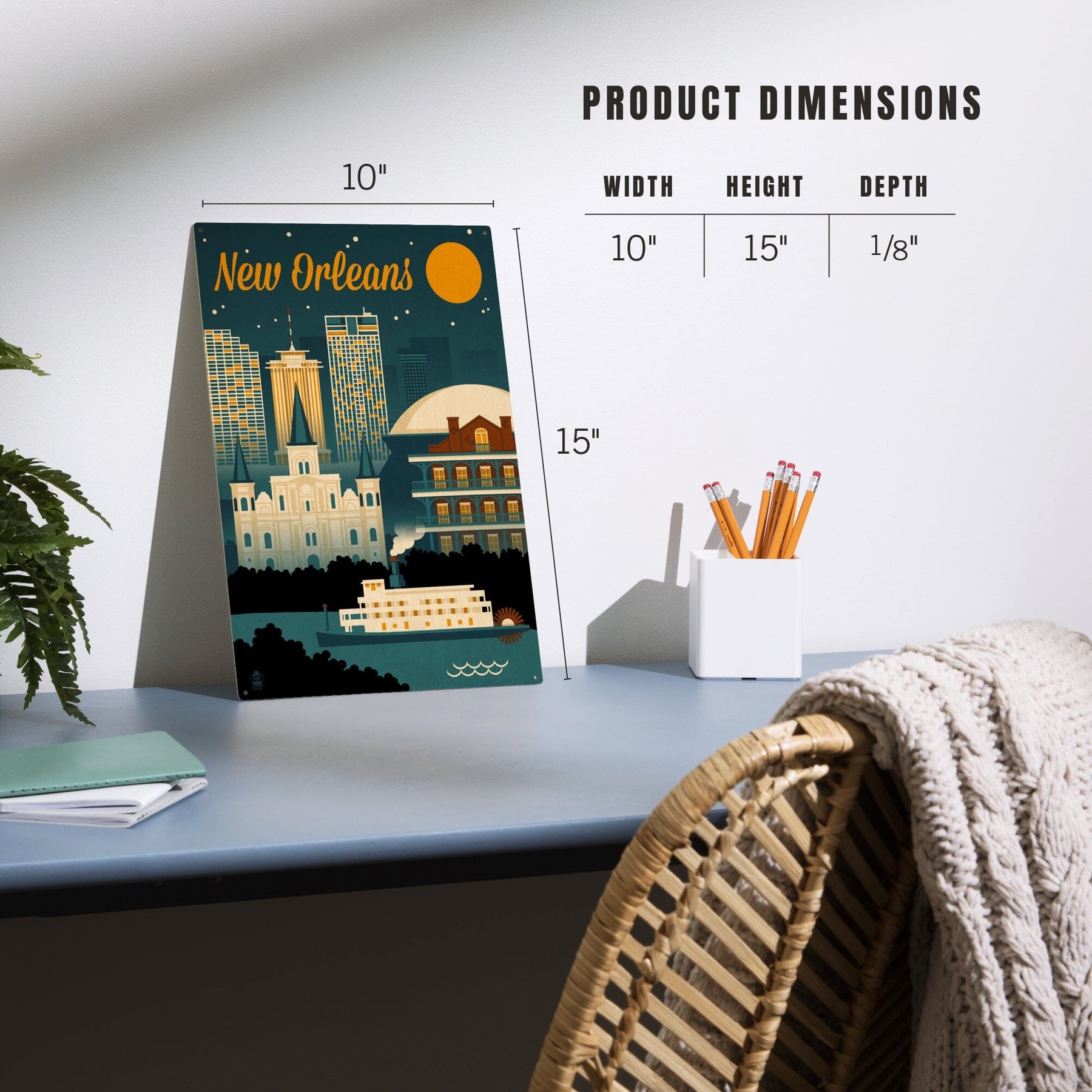 New Orleans, Louisiana, Retro Skyline, Lantern Press Artwork, Wood Signs and Postcards