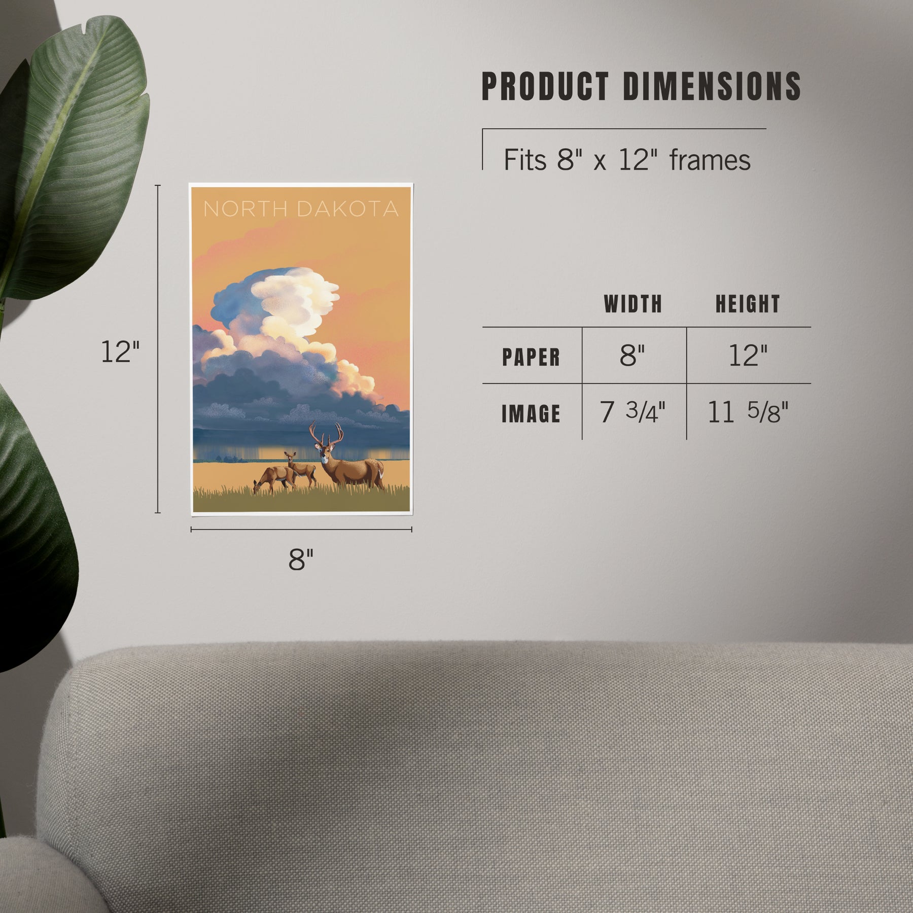 North Dakota, White-tailed Deer and Rain Cloud, Lithograph, Art & Giclee Prints Art Lantern Press