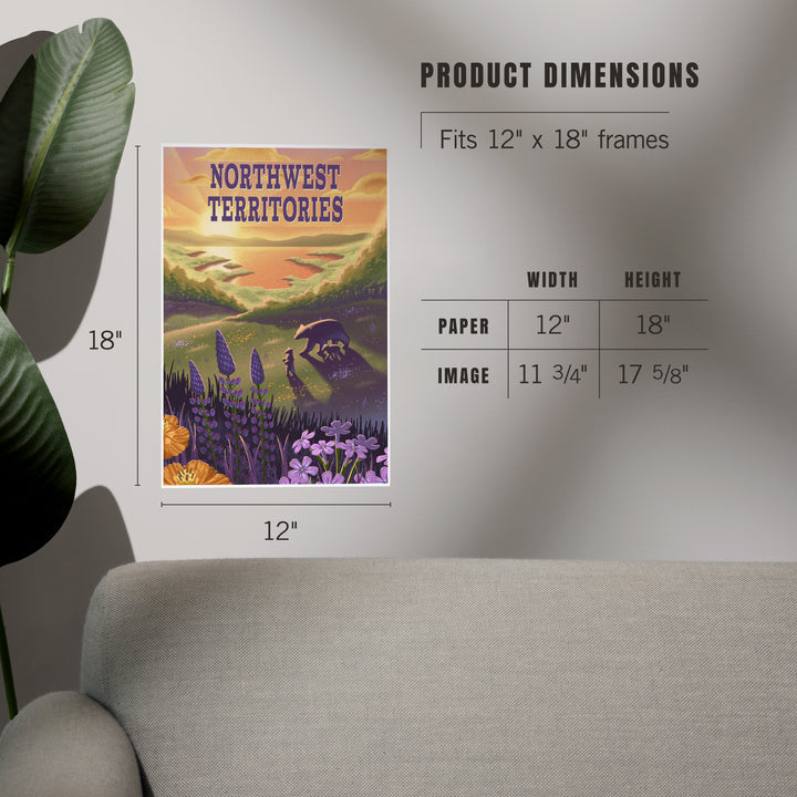 Northwest Territories, Lithograph, Bear and Spring Flowers, Lake, Art & Giclee Prints