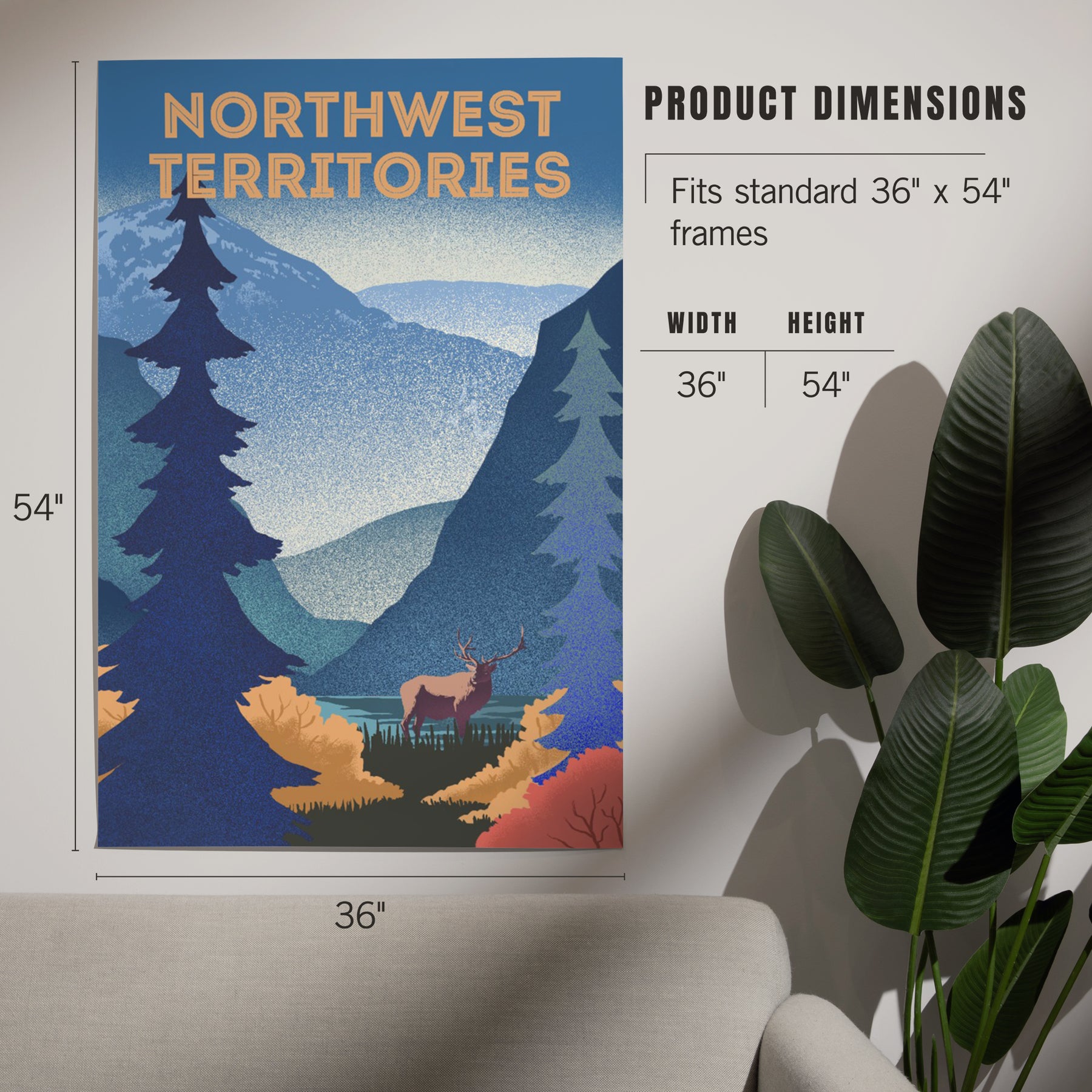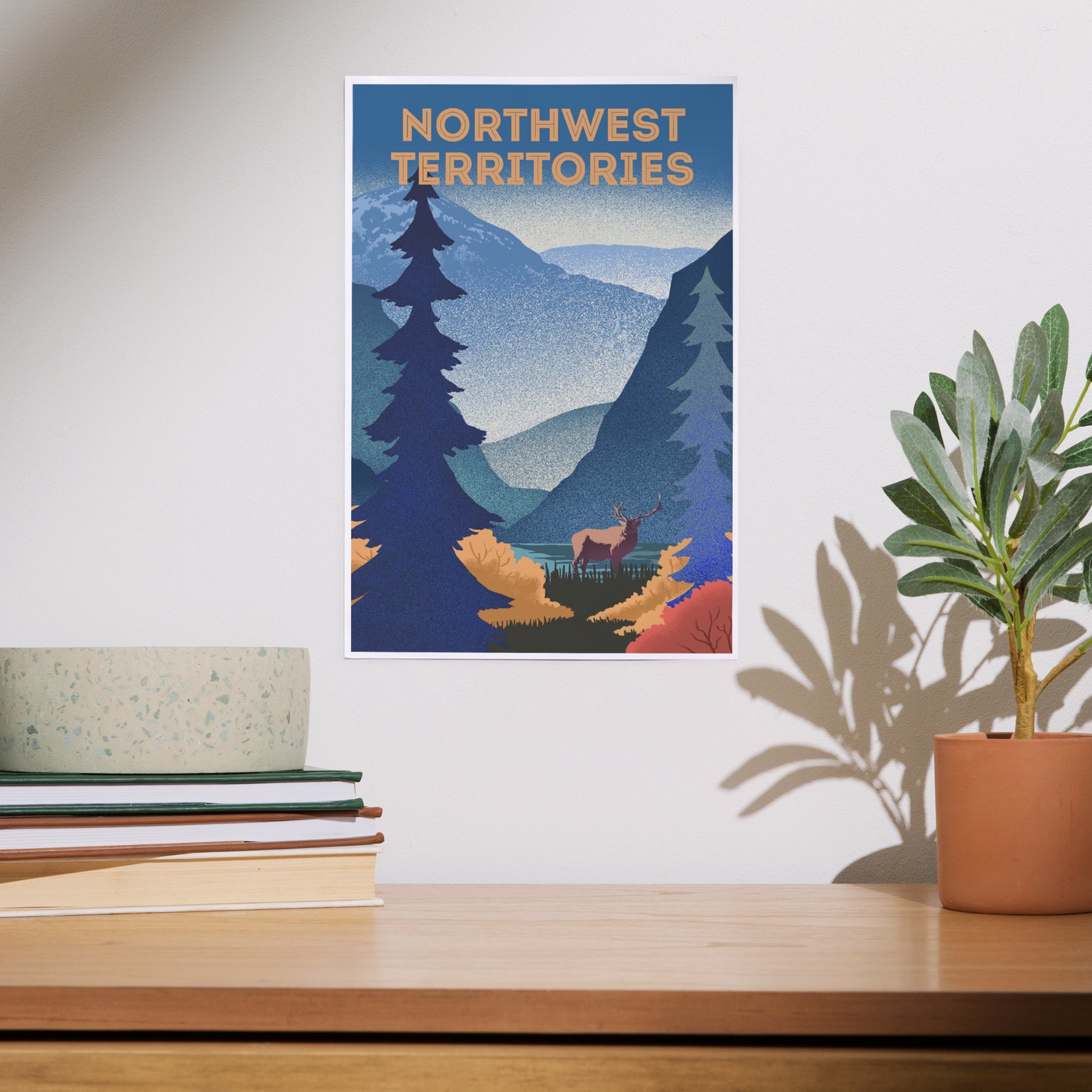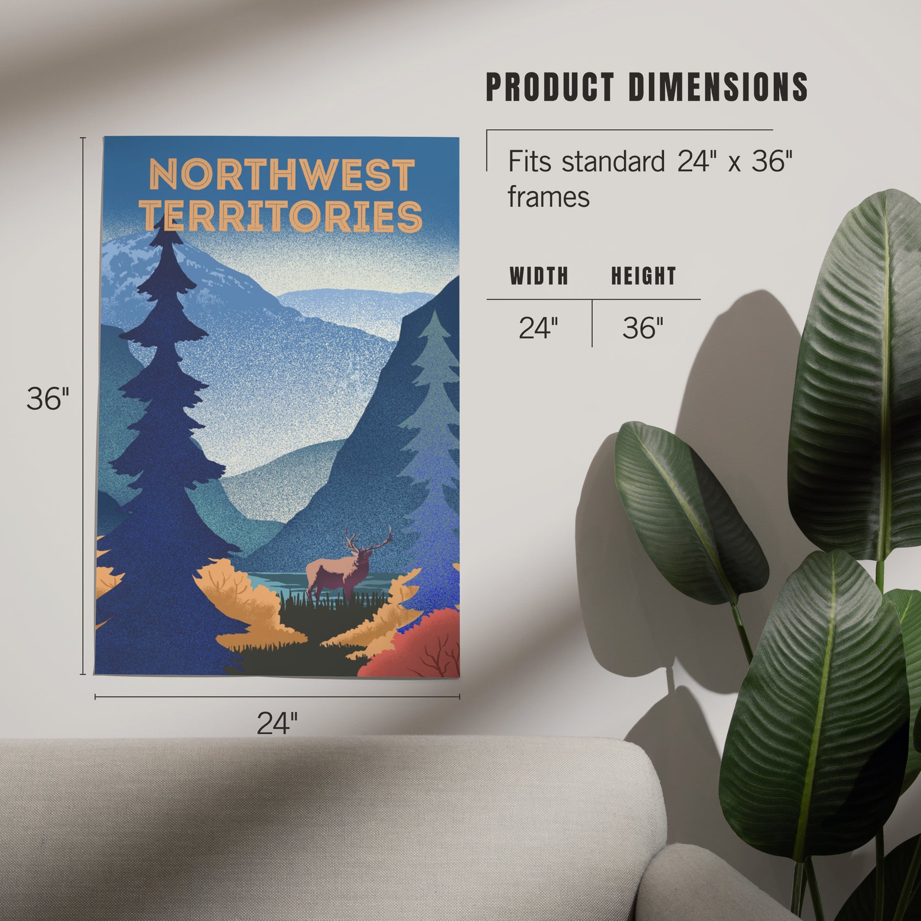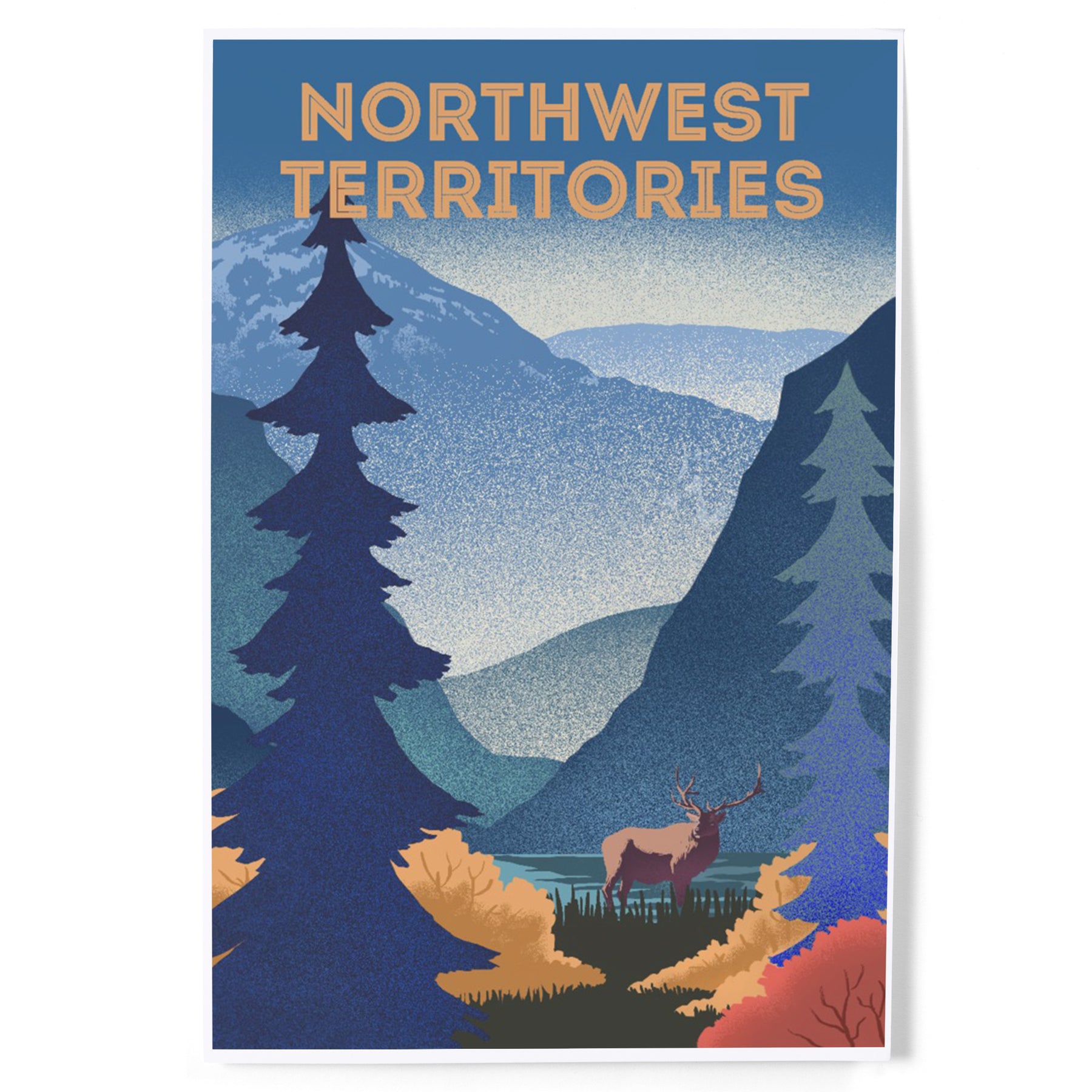 Northwest Territories, Lithograph, Elk and Mountains Scene, Art & Giclee Prints Art Lantern Press