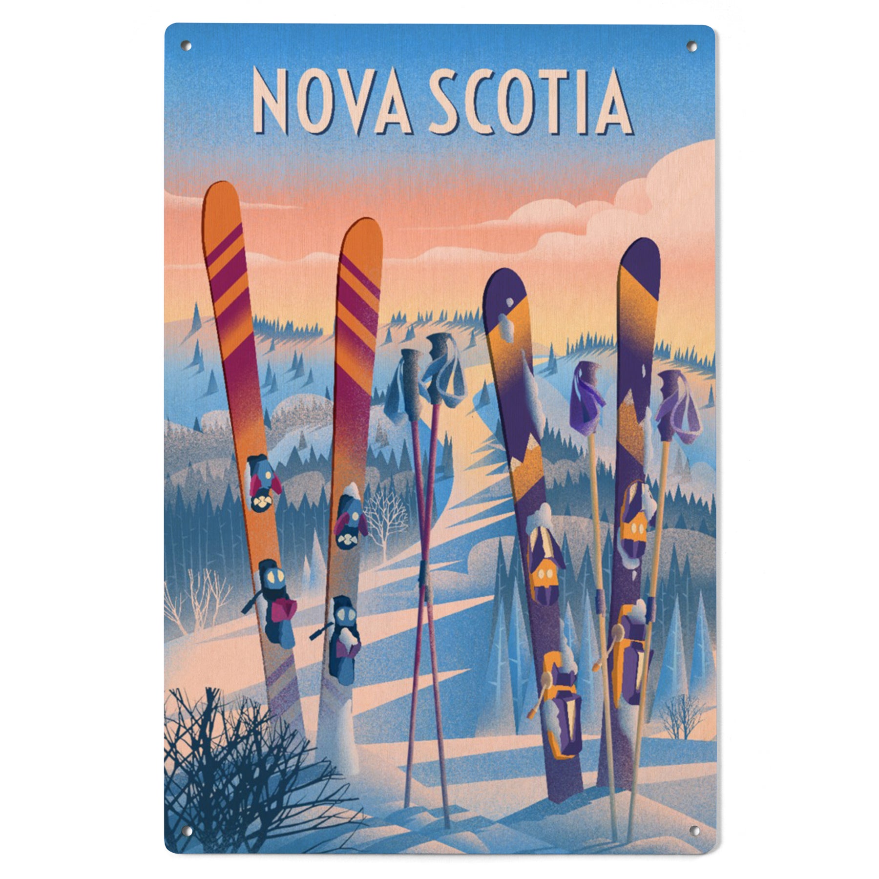 Nova Scotia, Prepare for Takeoff, Skis in Snowbank, Wood Signs and Postcards Wood Lantern Press