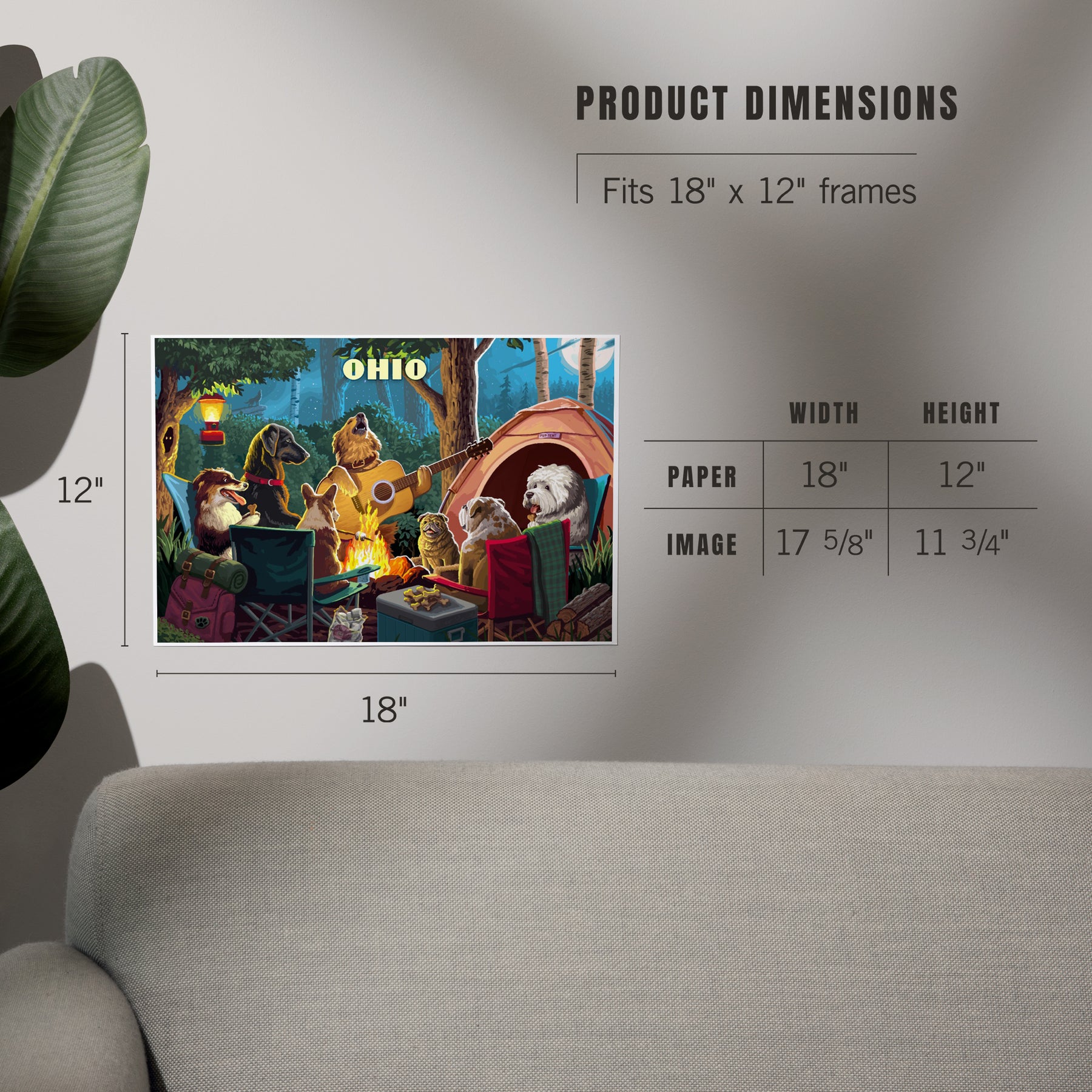 Ohio, Painterly, Pack Life, Dogs Around Campfire, Art & Giclee Prints Art Lantern Press