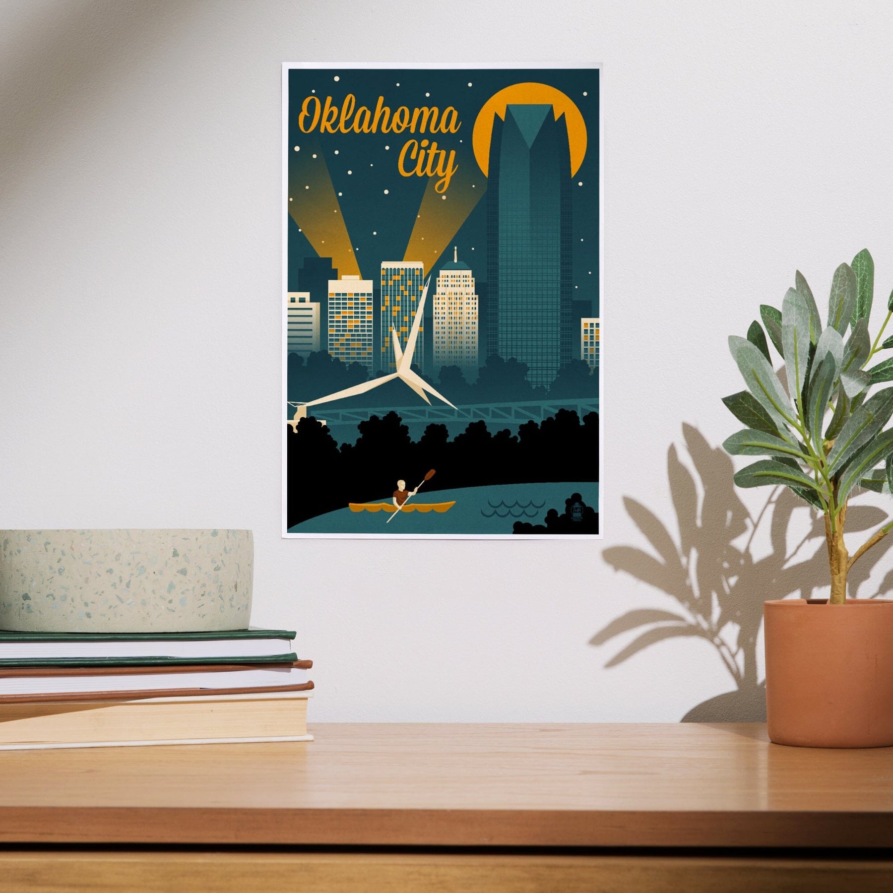 Oklahoma City, Oklahoma, Retro Skyline, Art & Giclee Prints Art Lantern Press