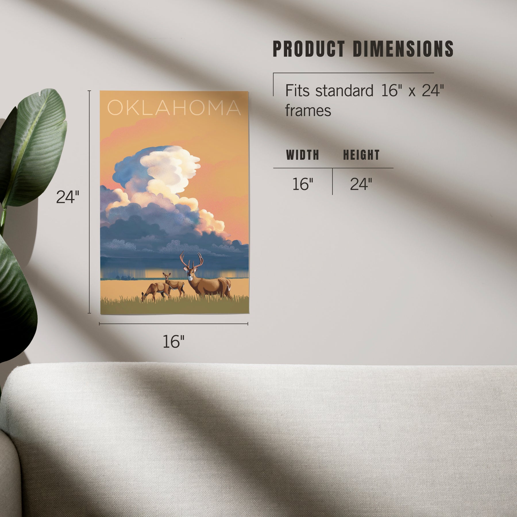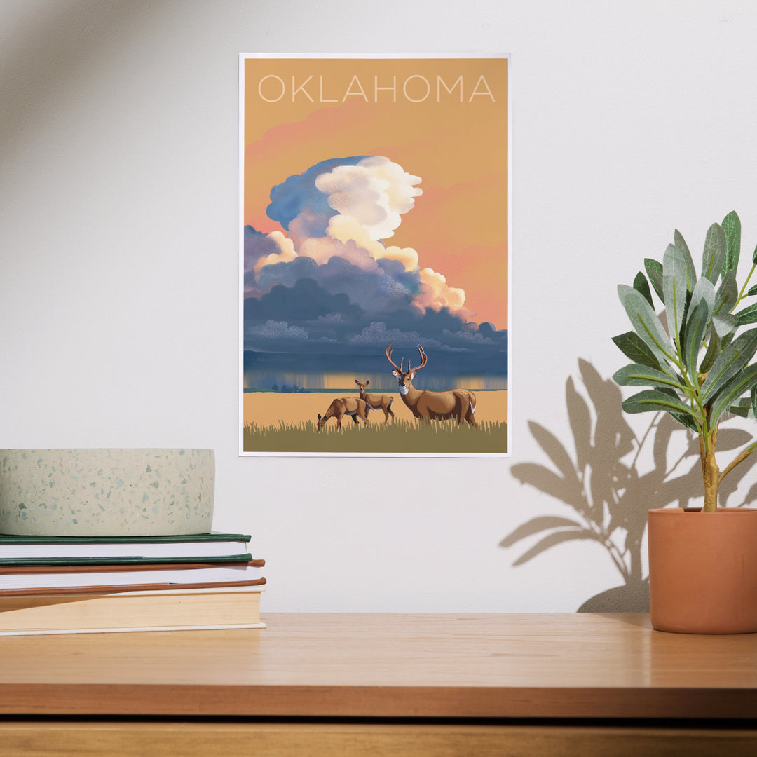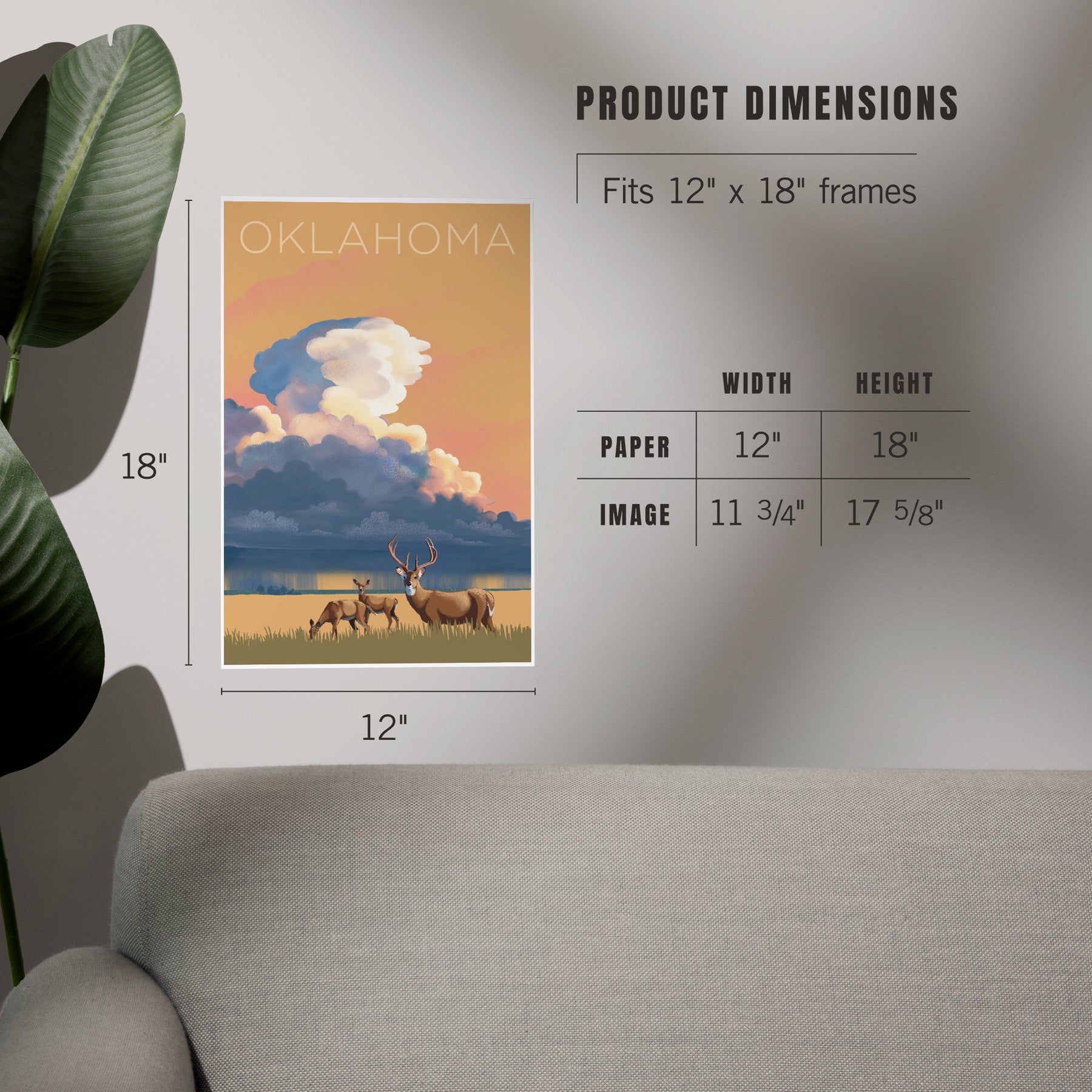 Oklahoma, White-tailed Deer and Rain Cloud, Lithograph, Art & Giclee Prints Art Lantern Press