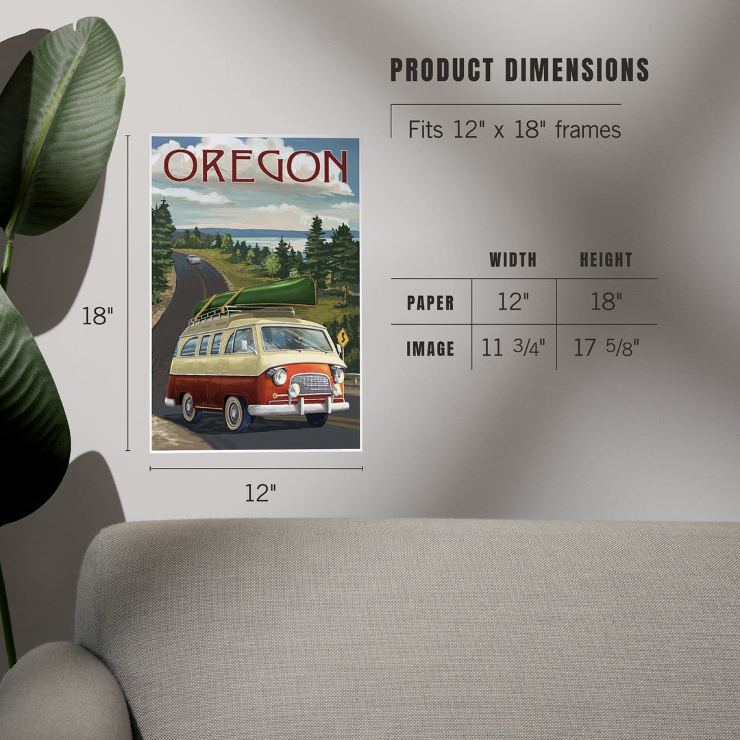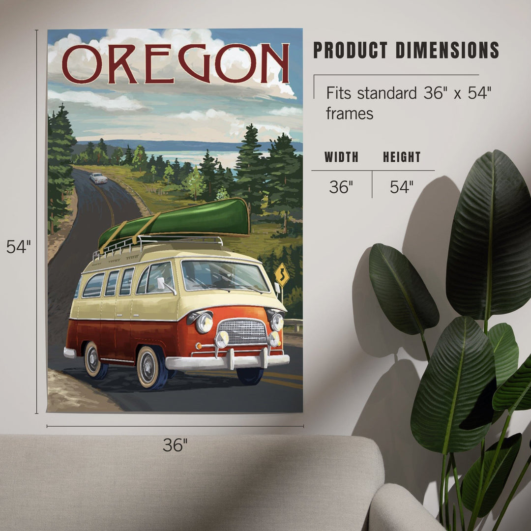 Oregon, LP Camper Van and Lake, Art & Giclee Prints Art Lantern Press