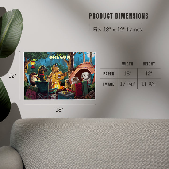 Oregon, Painterly, Pack Life, Dogs Around Campfire, Art & Giclee Prints Art Lantern Press