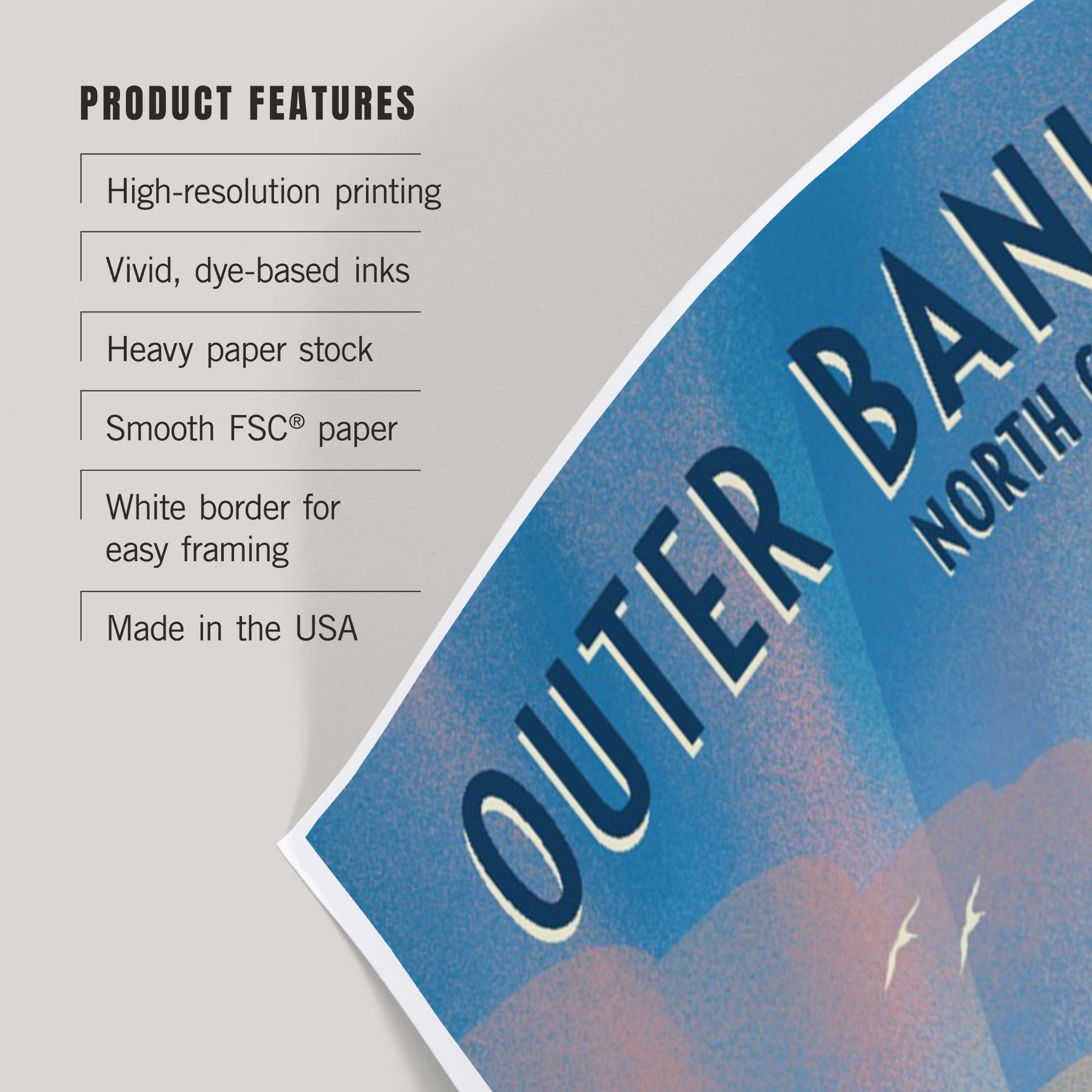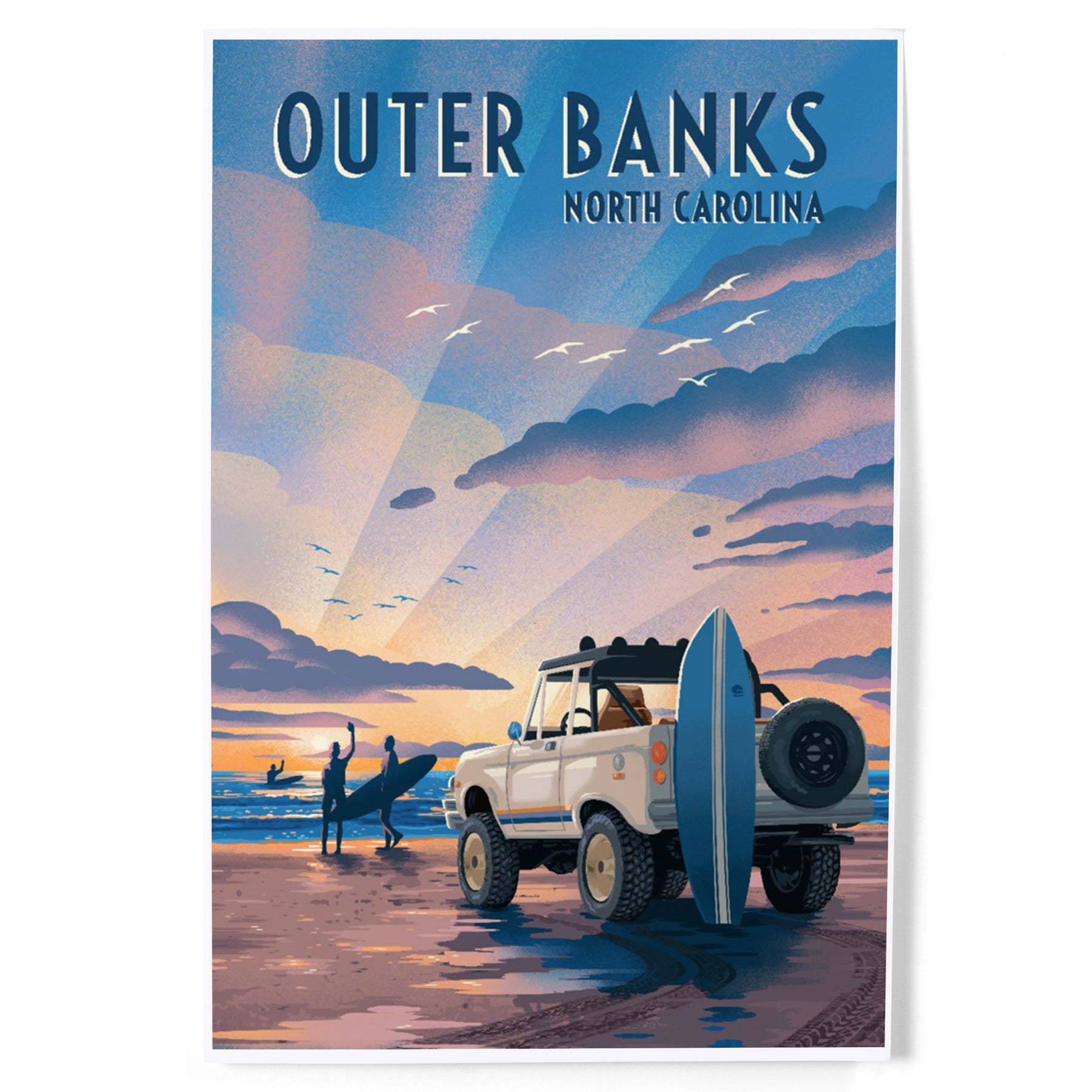 Outer Banks, North Carolina, Lithograph, Surfers on Beach, Art & Giclee Prints