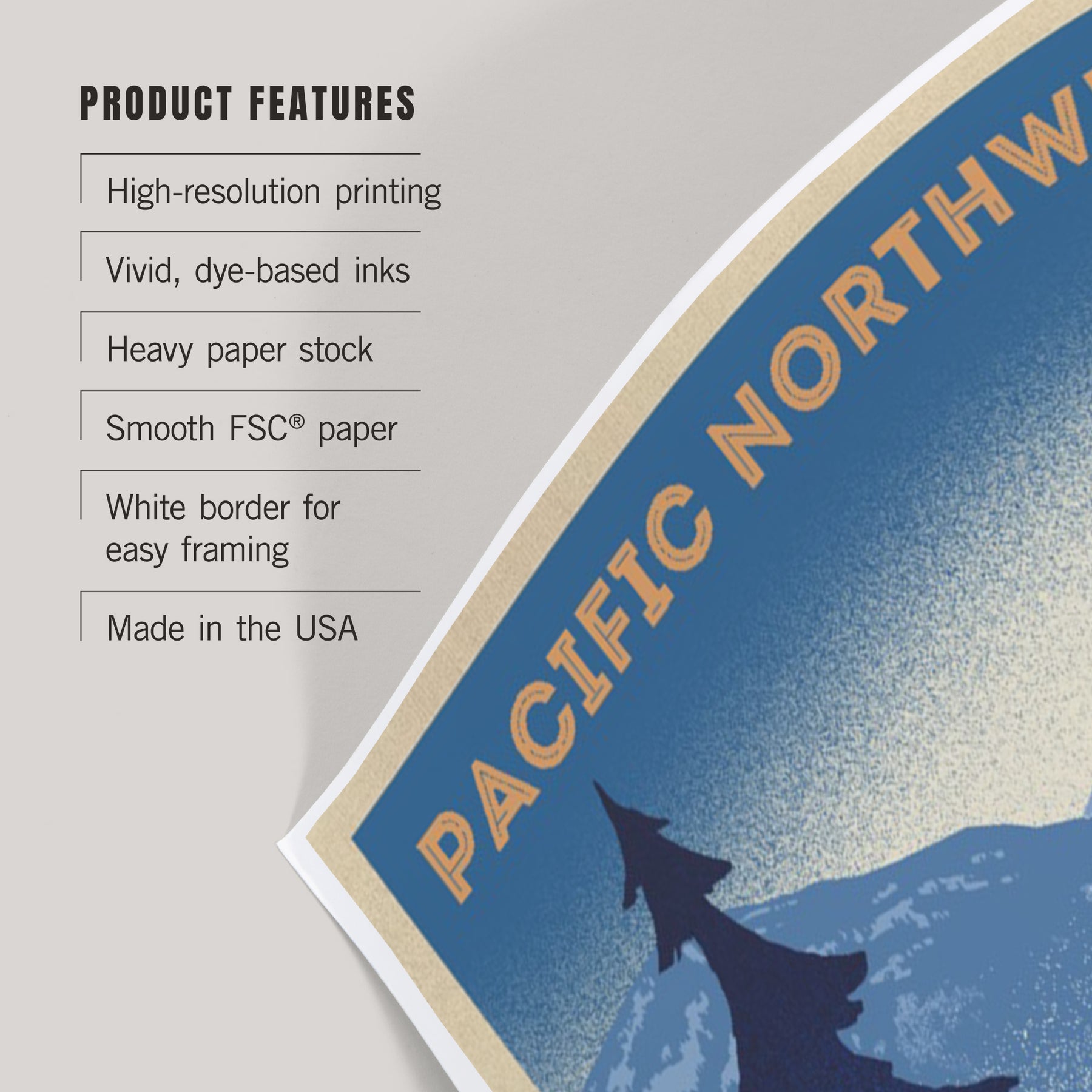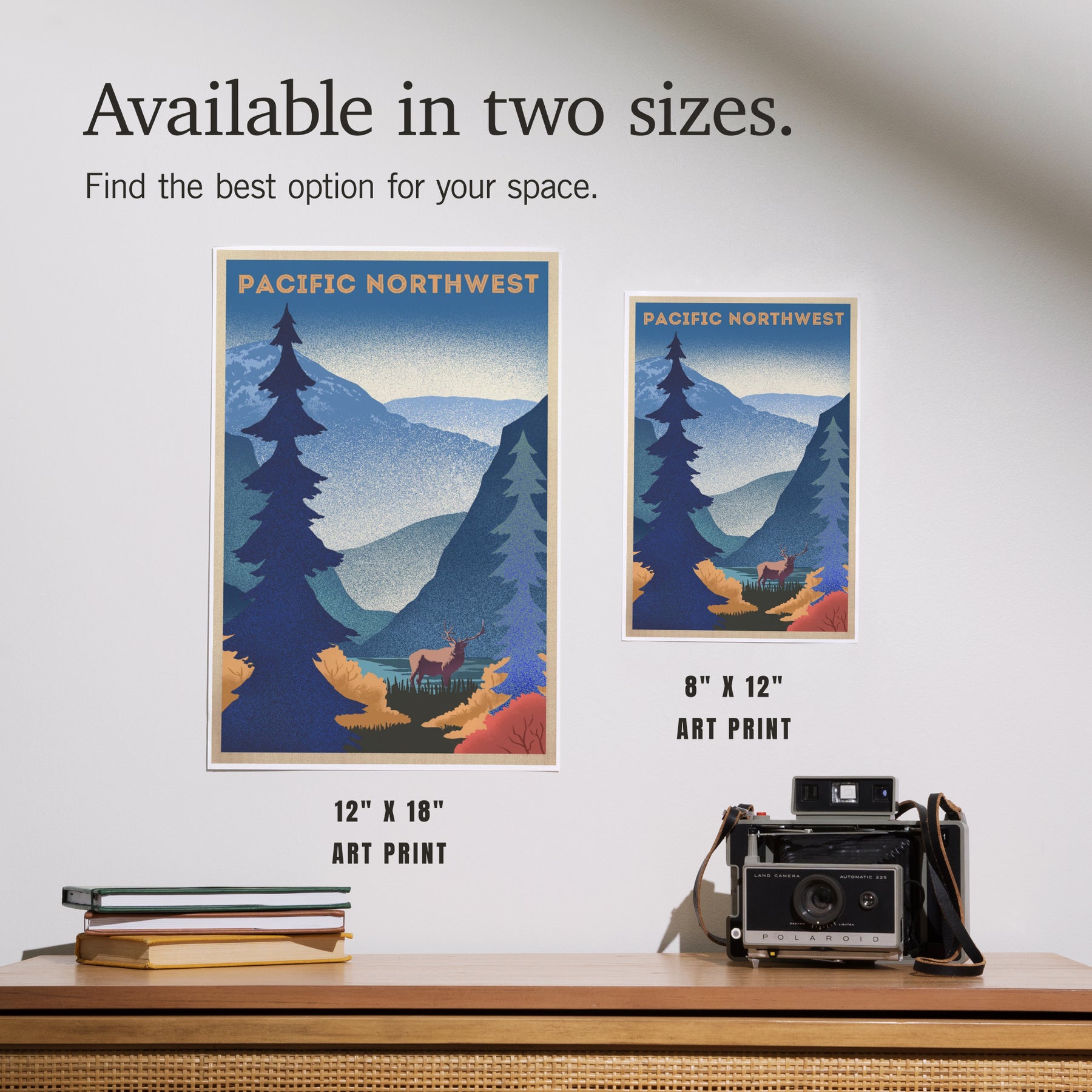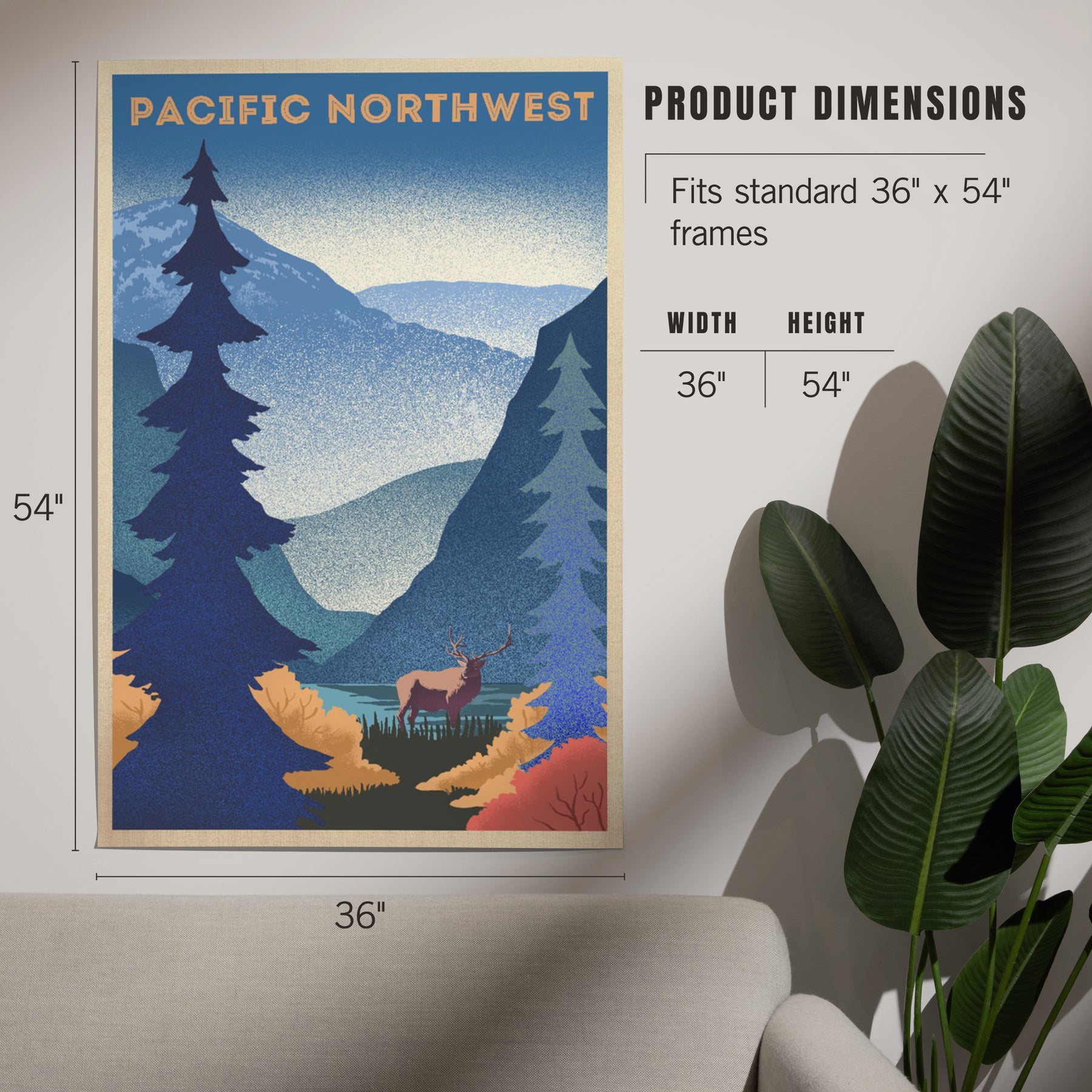 Pacific Northwest, Elk and Mountain Scene, Lithograph, Art & Giclee Prints Art Lantern Press