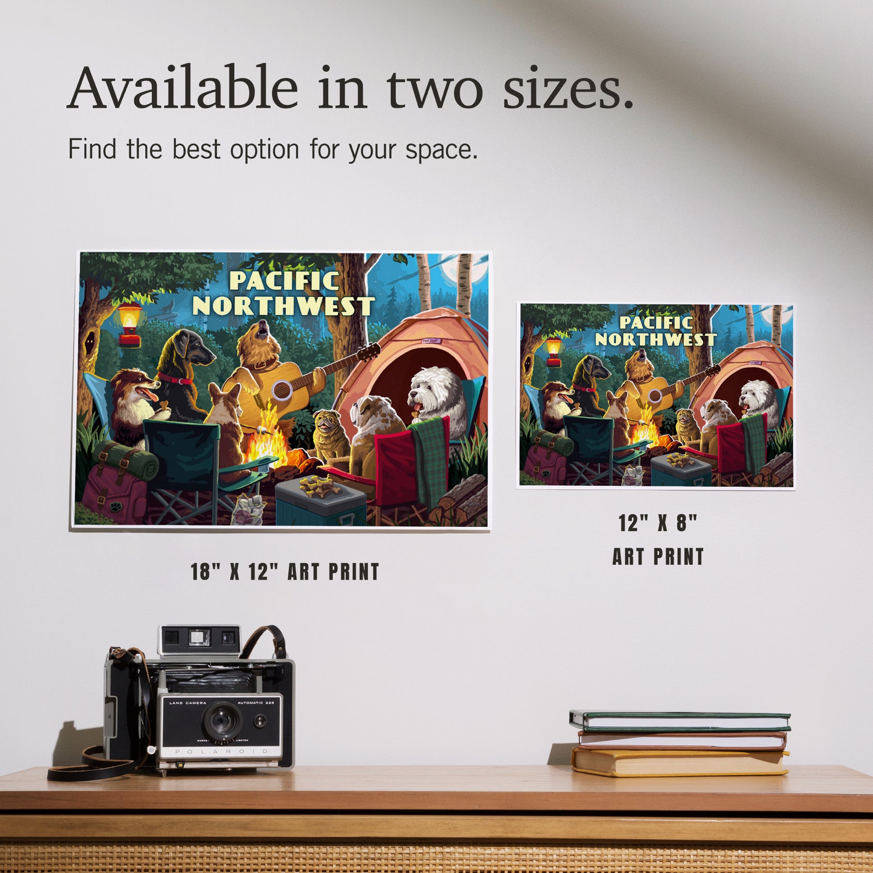 Pacific Northwest, Painterly, Pack Life, Dogs Around Campfire, Art & Giclee Prints