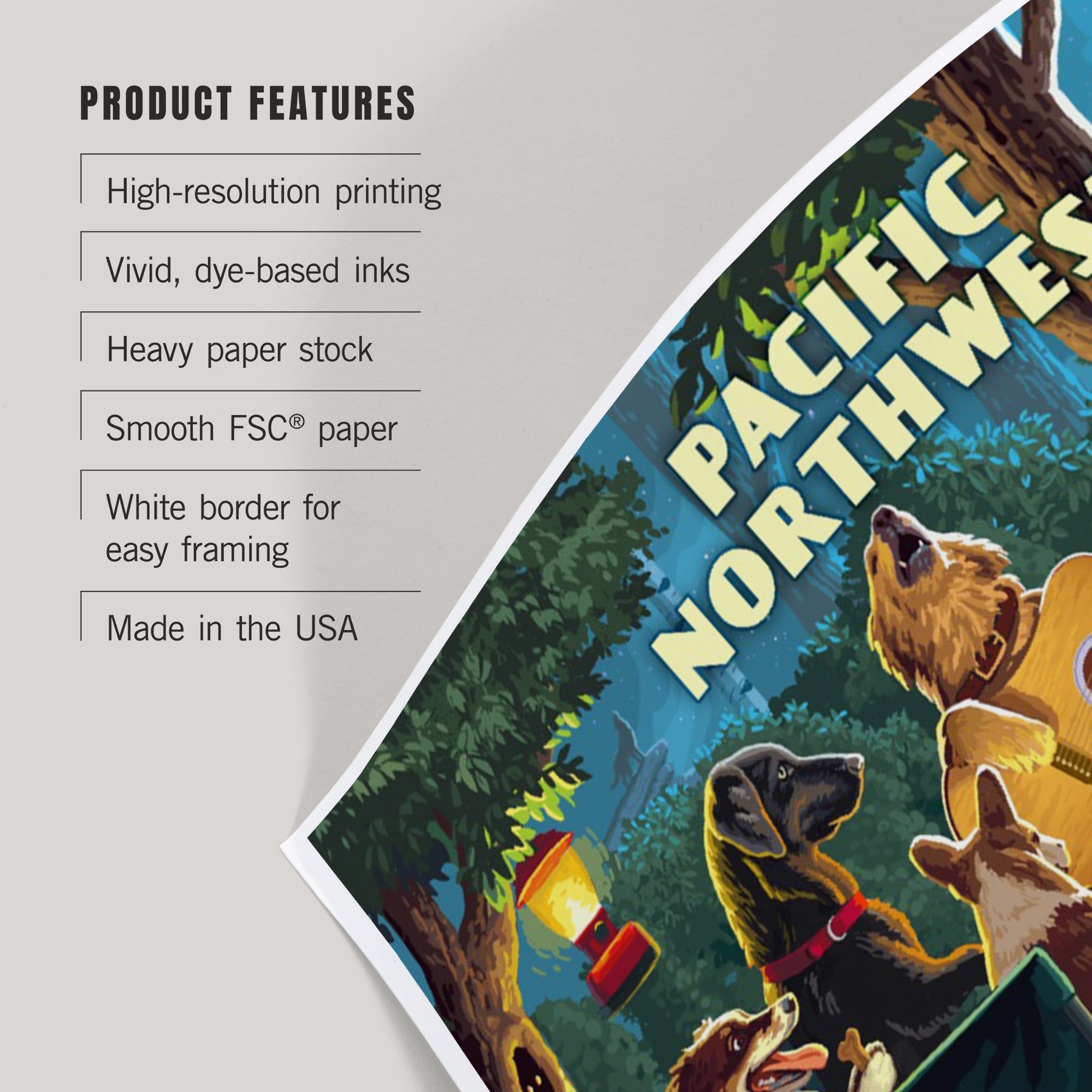 Pacific Northwest, Painterly, Pack Life, Dogs Around Campfire, Art & Giclee Prints Art Lantern Press