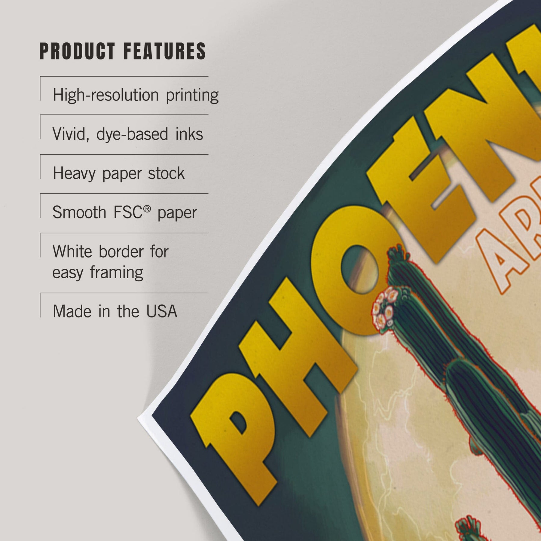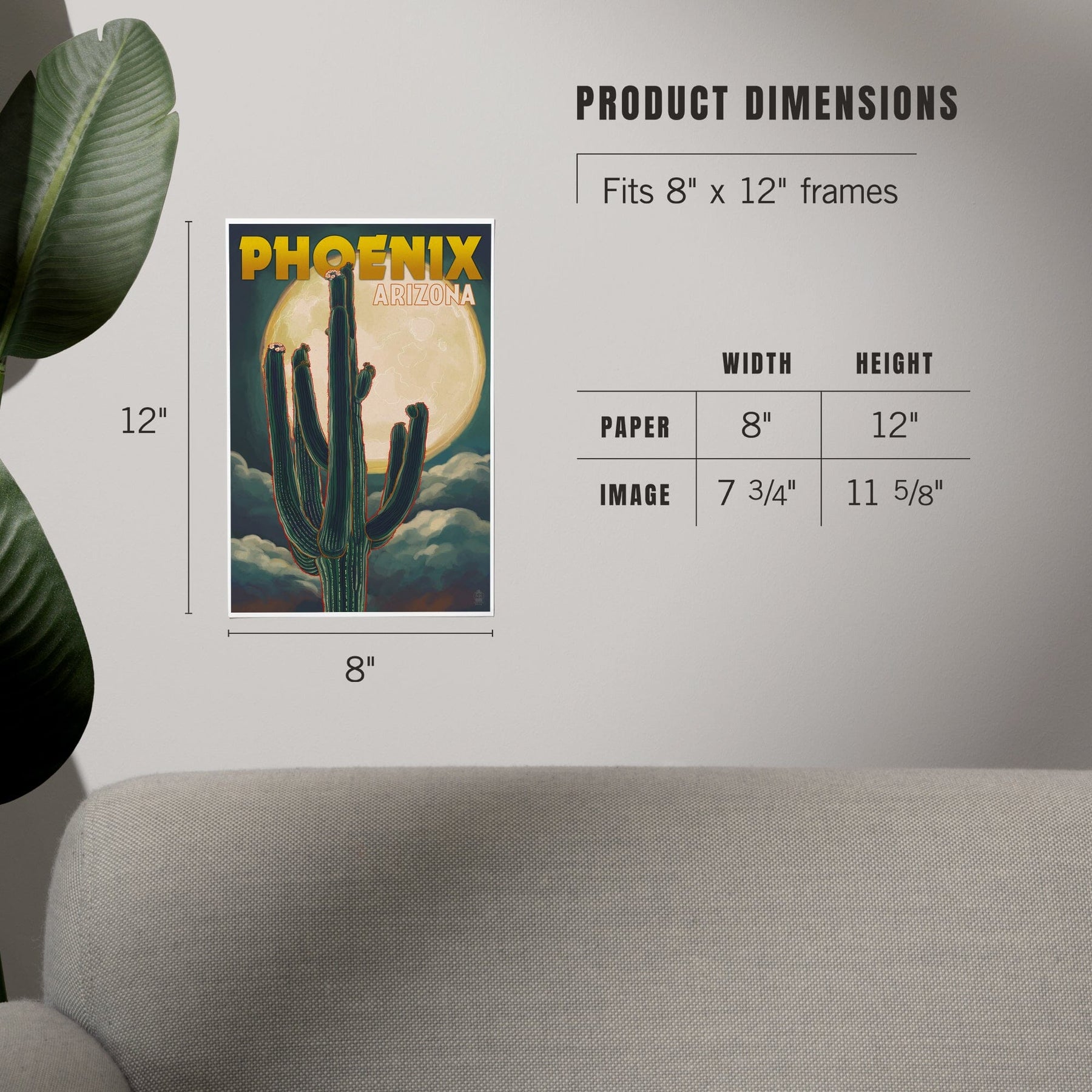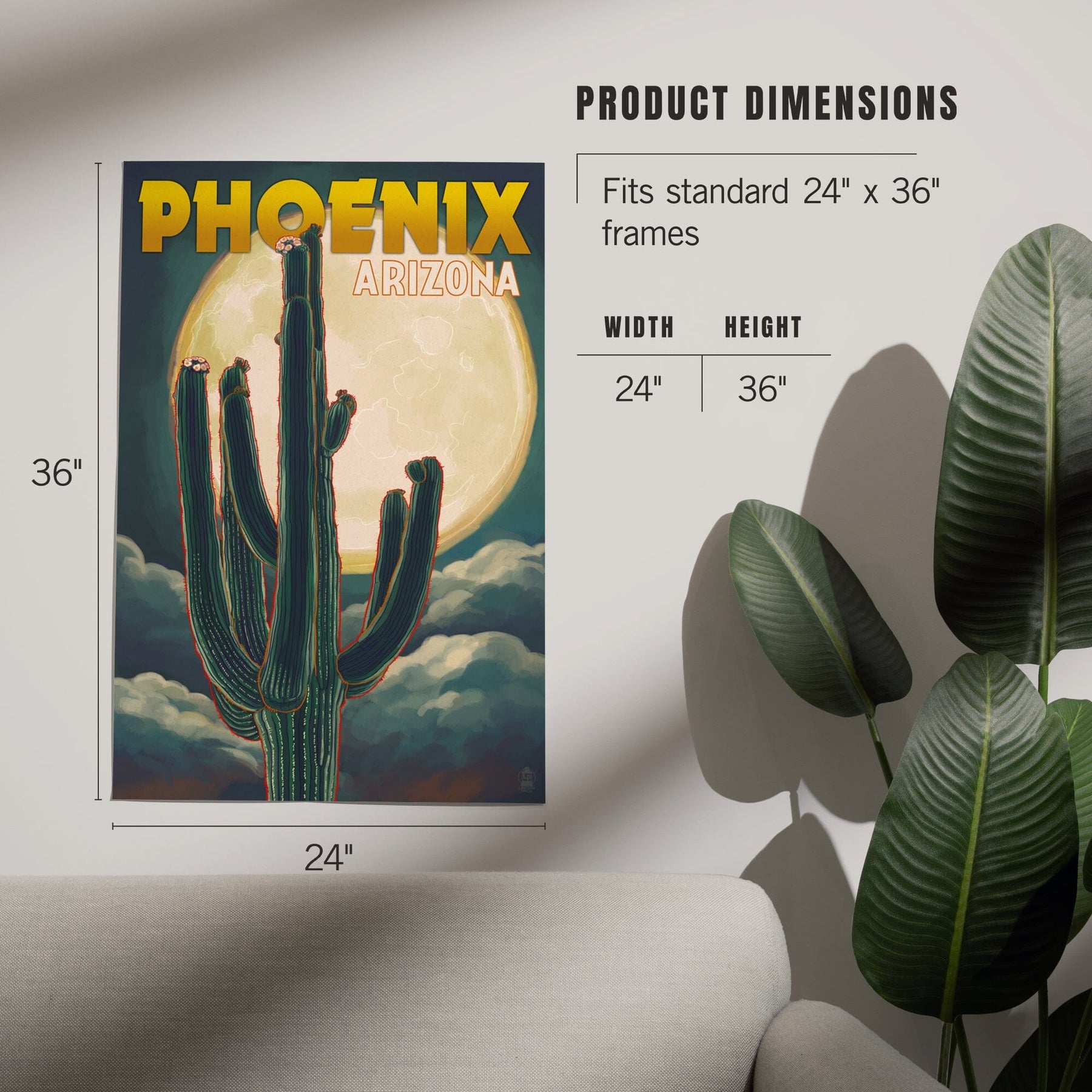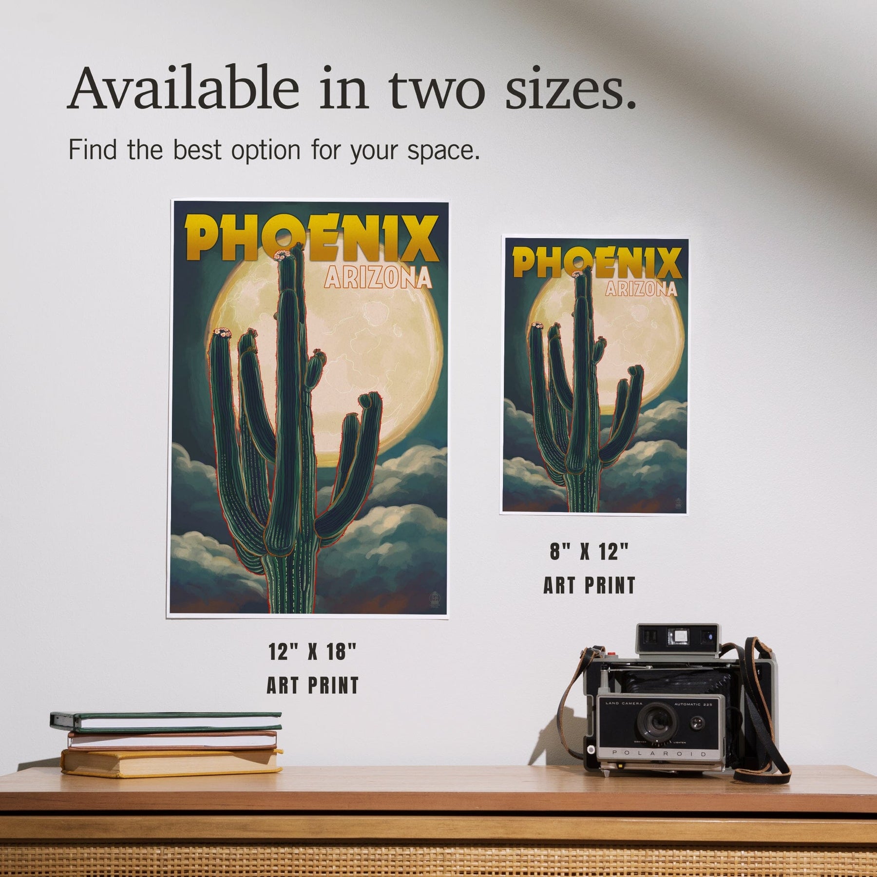 Phoenix, Arizona, Cactus and Full Moon, Art & Giclee Prints Art Lantern Press