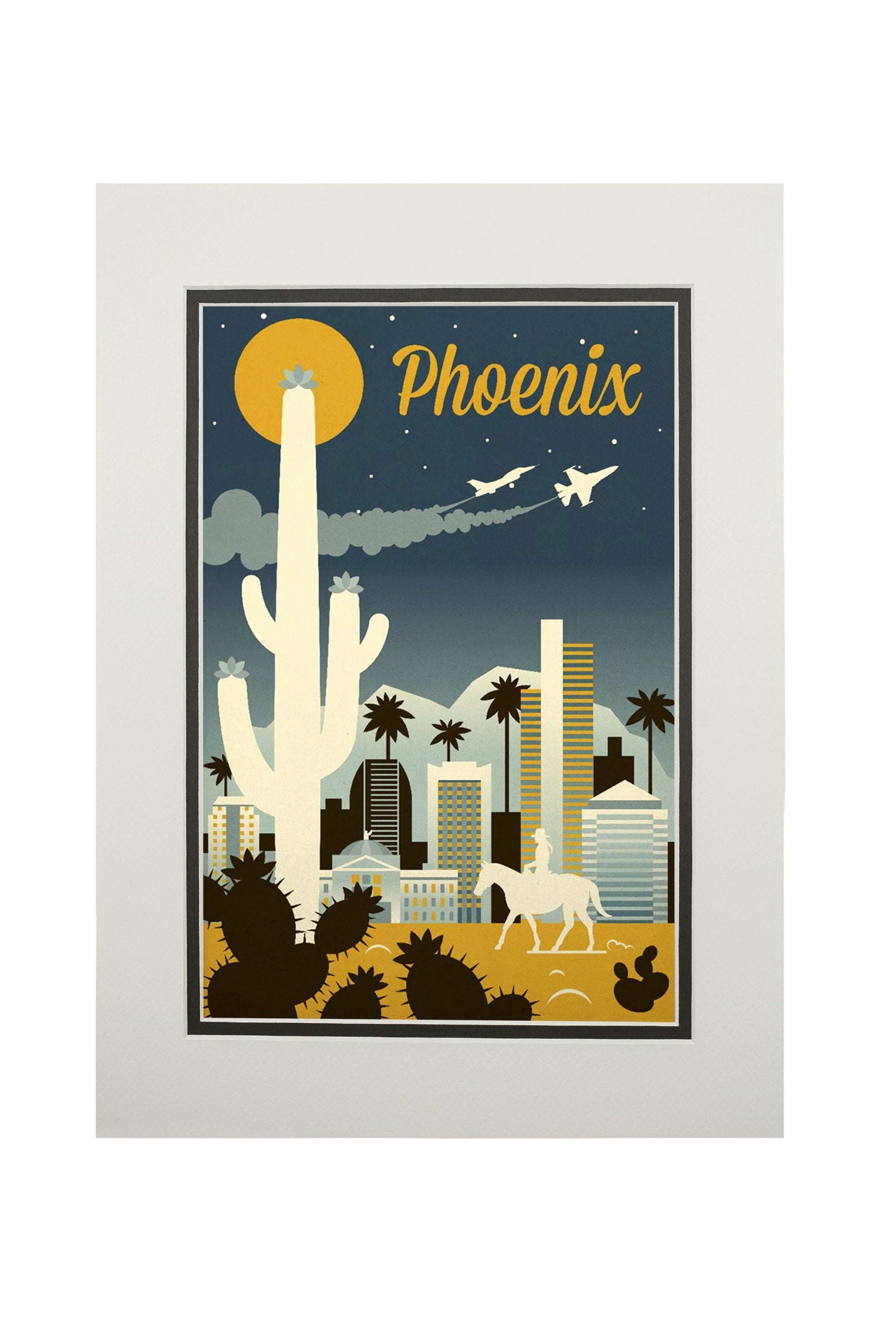 Phoenix, Arizona, Retro Skyline Series, Art & Giclee Prints