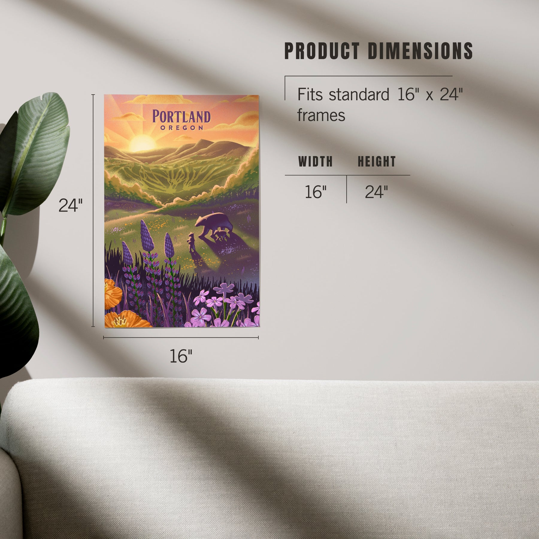 Portland, Oregon, Bear and Spring Flowers, Lithograph, Art & Giclee Prints Art Lantern Press