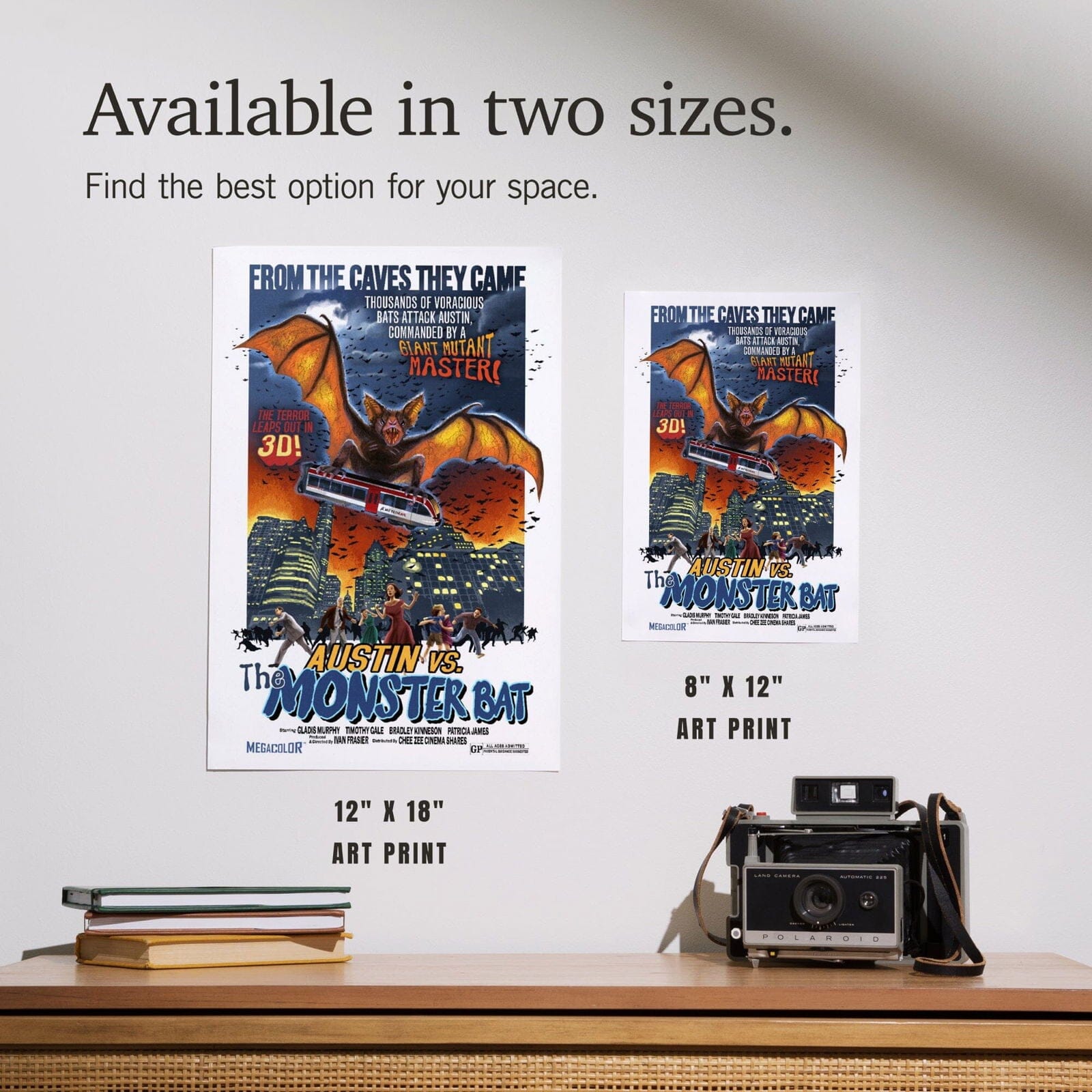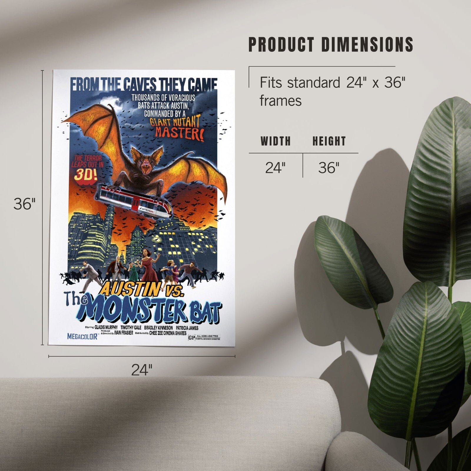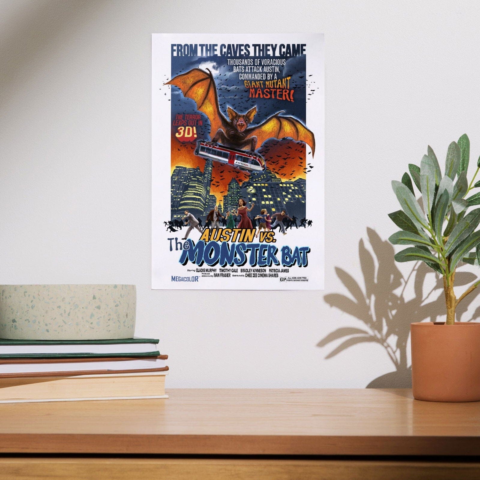 Austin, Texas, Austin vs The Monster Bat, B Movie Poster, Art & Giclee Prints