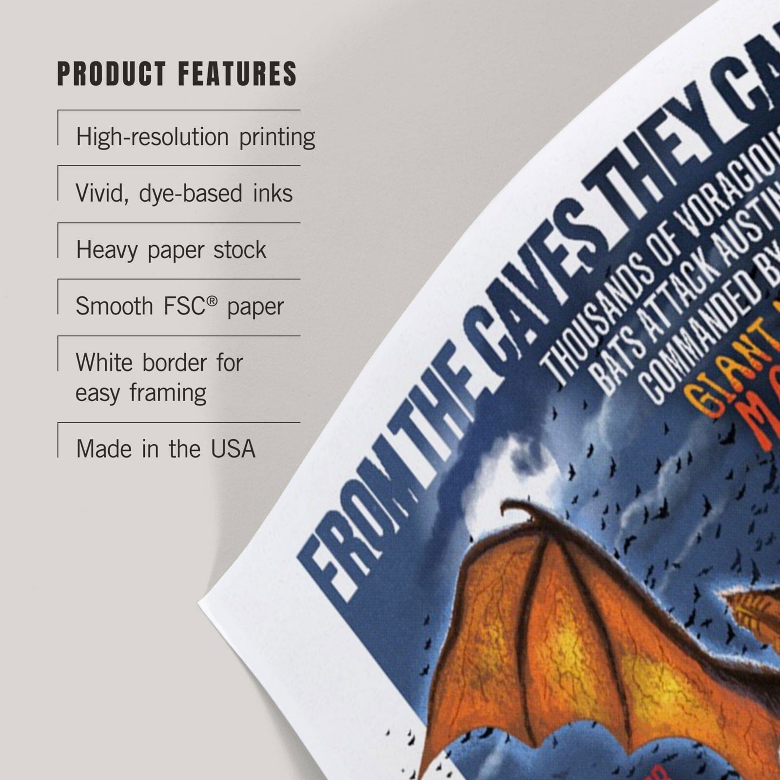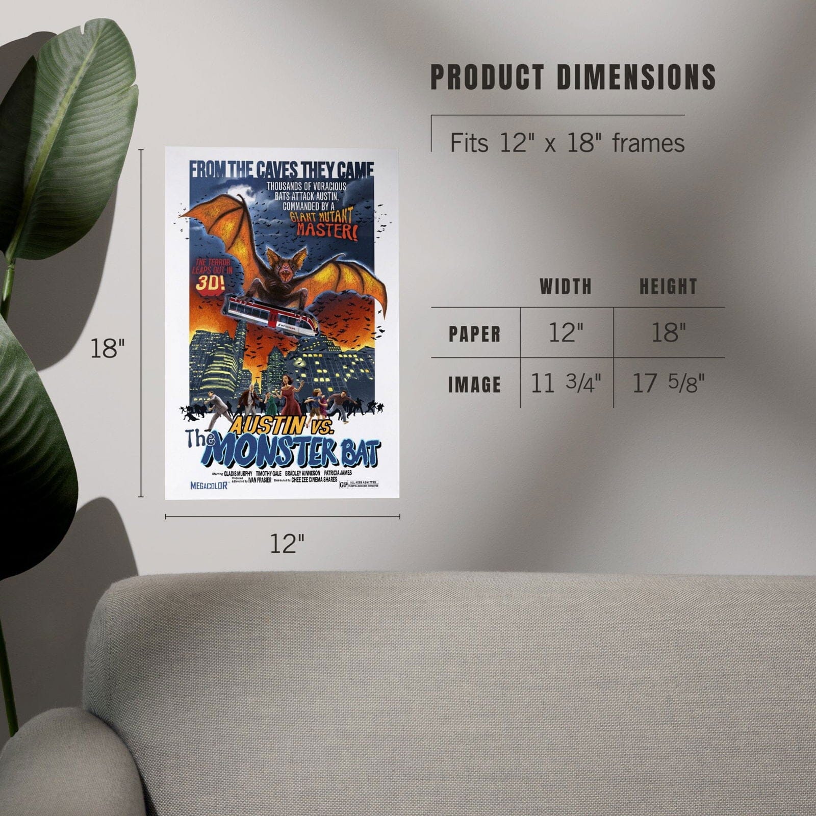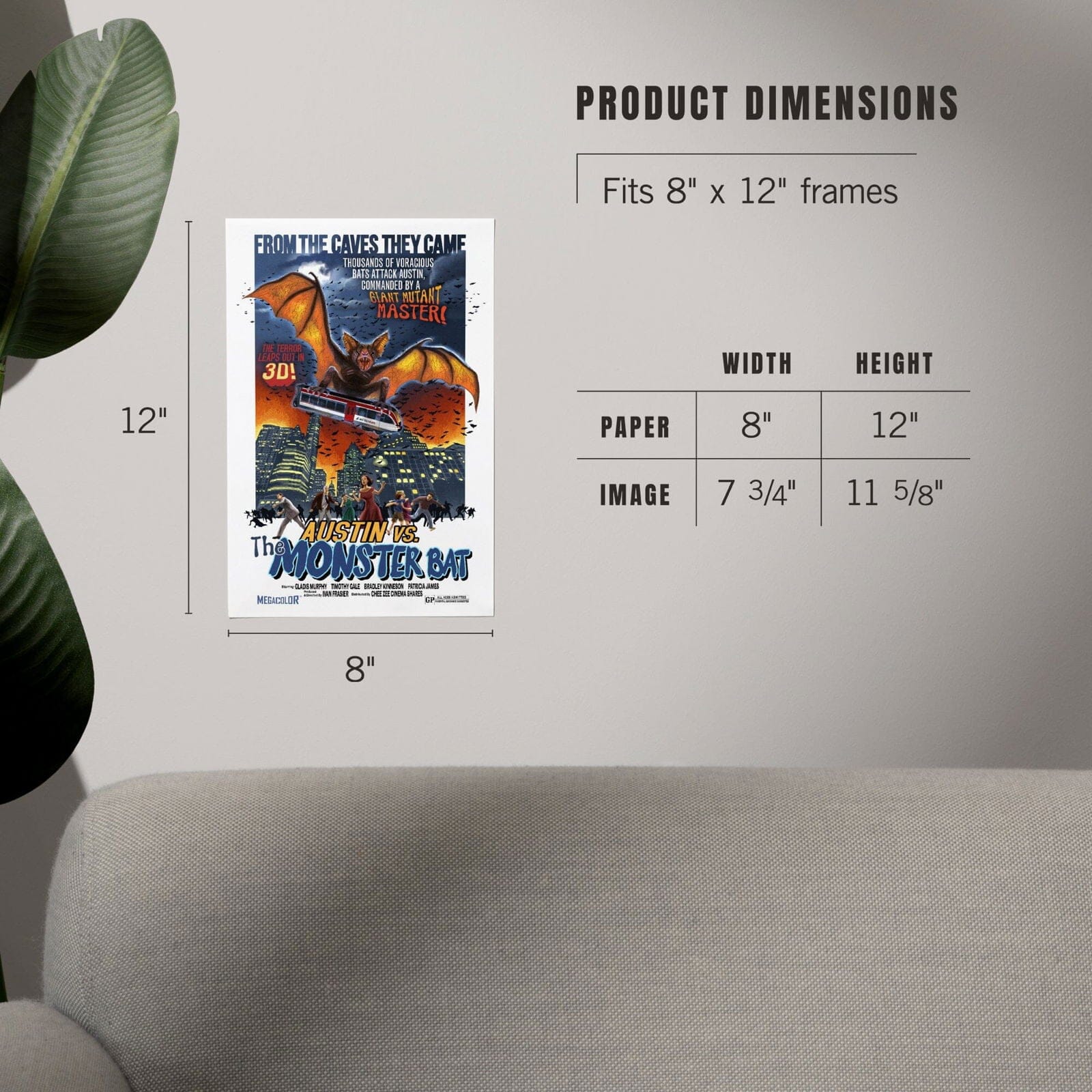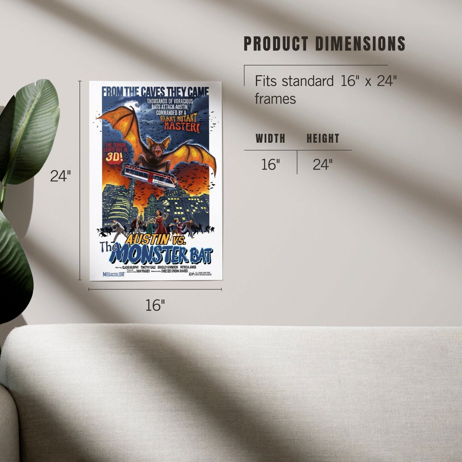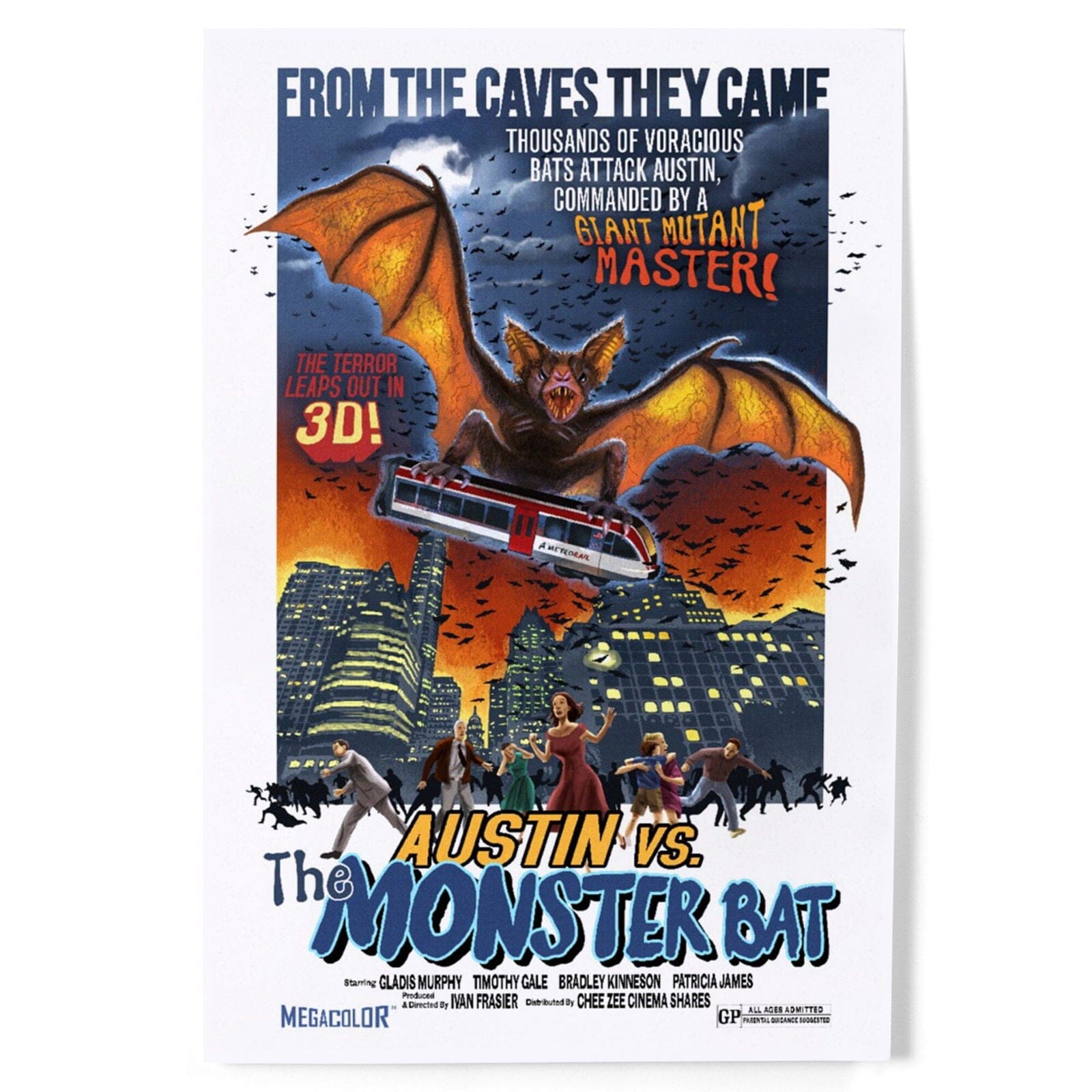 Austin, Texas, Austin vs The Monster Bat, B Movie Poster, Art & Giclee Prints Art Lantern Press