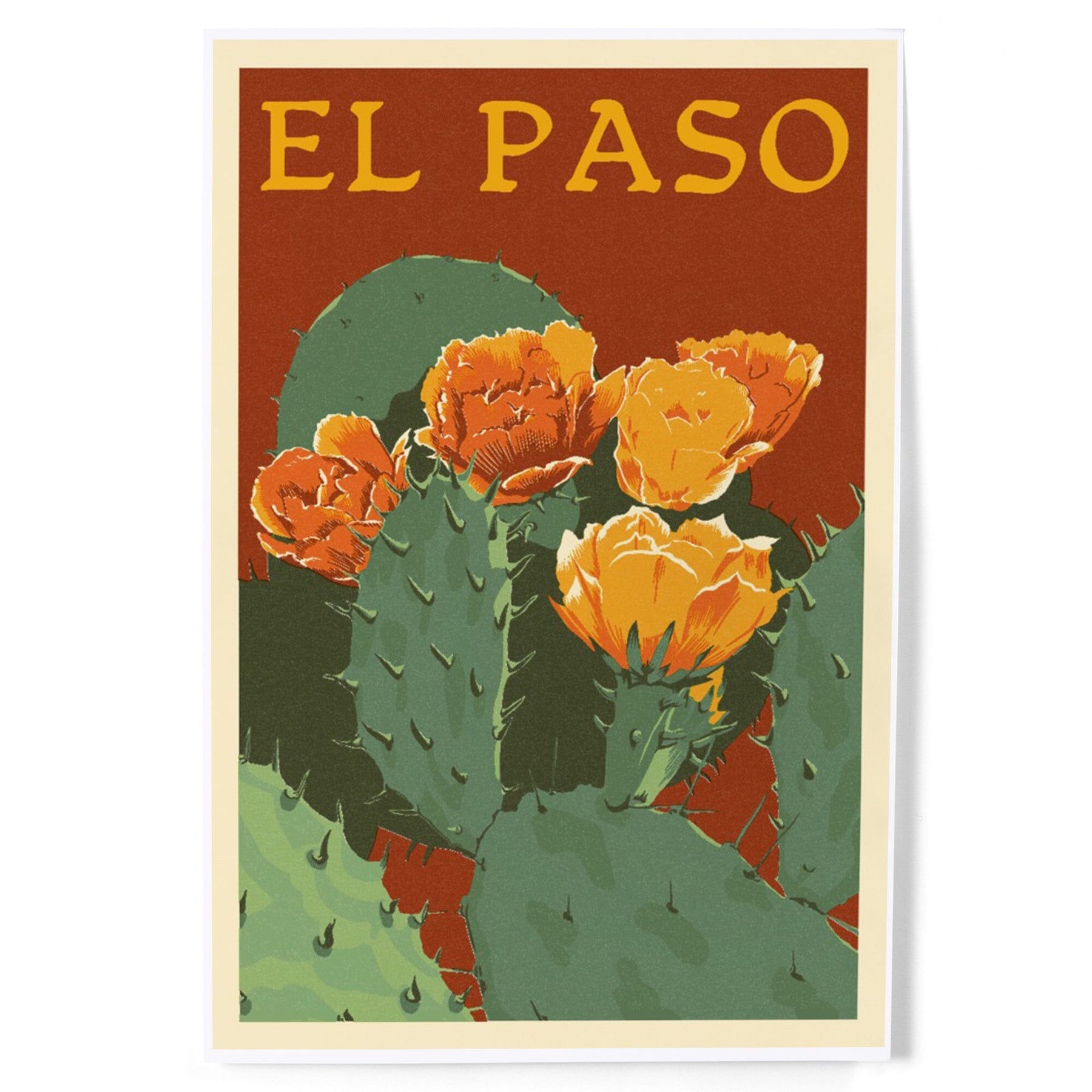 El Paso, Prickly Pear Cactus, Letterpress, Art & Giclee Prints - Lantern Press
