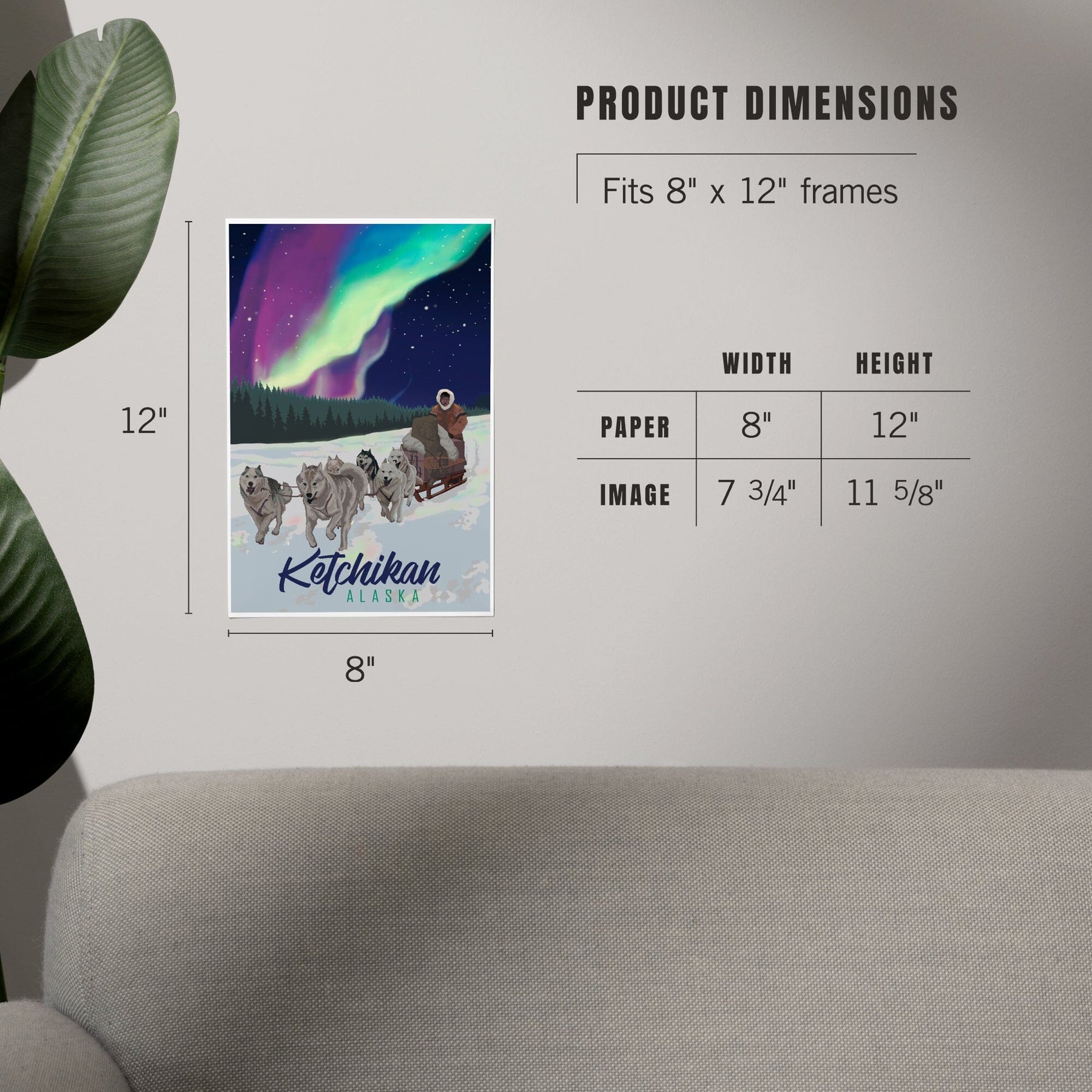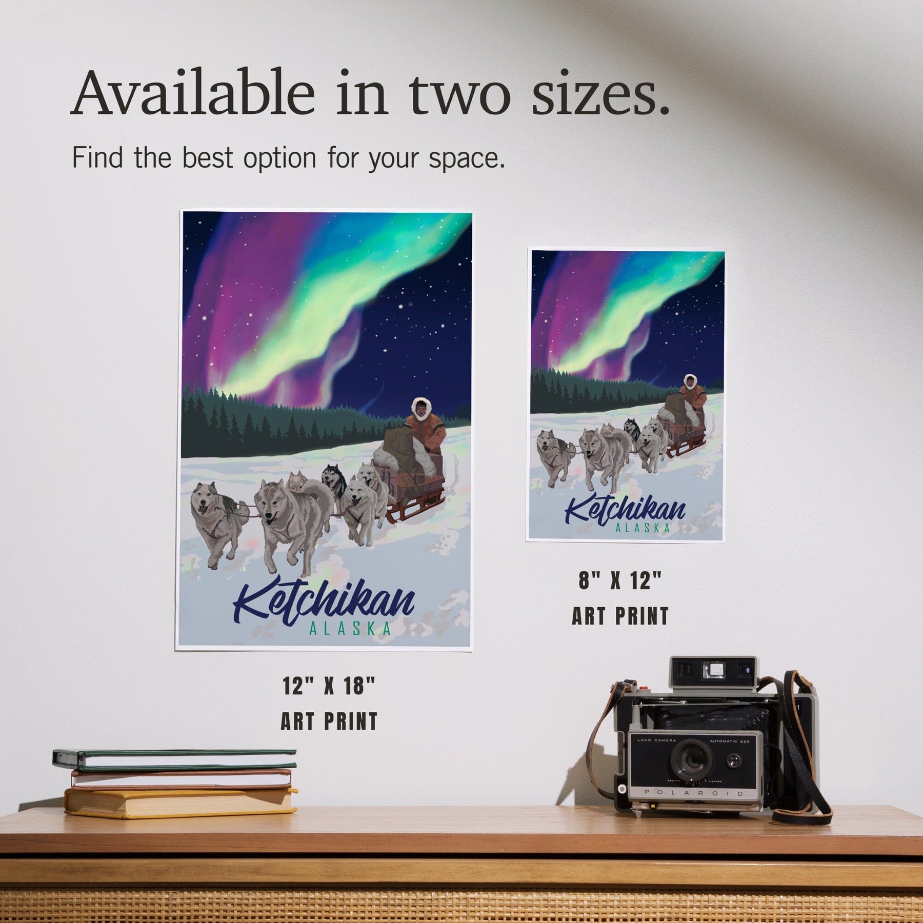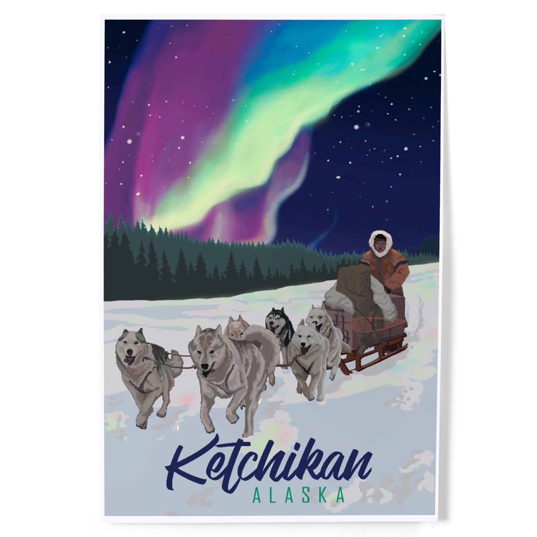 Ketchikan, Alaska, Northern Lights, Dog Sled, Art & Giclee Prints - Lantern Press