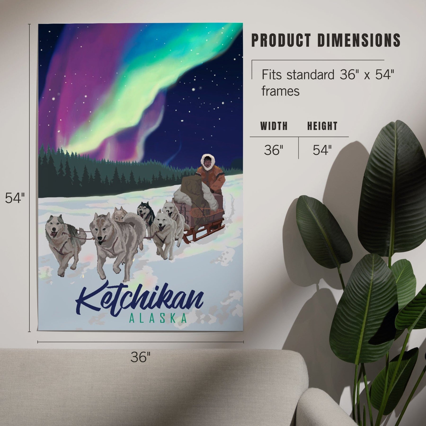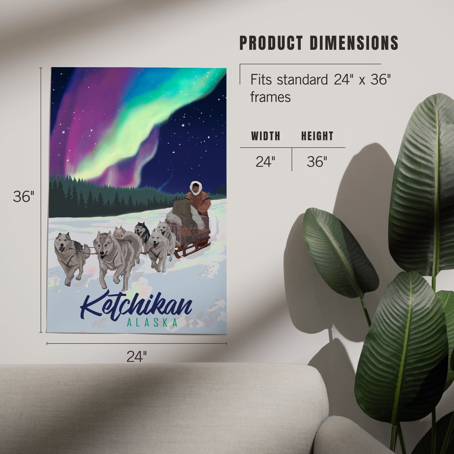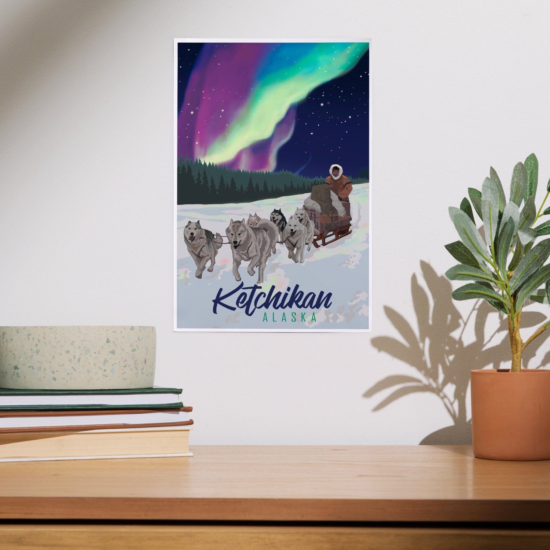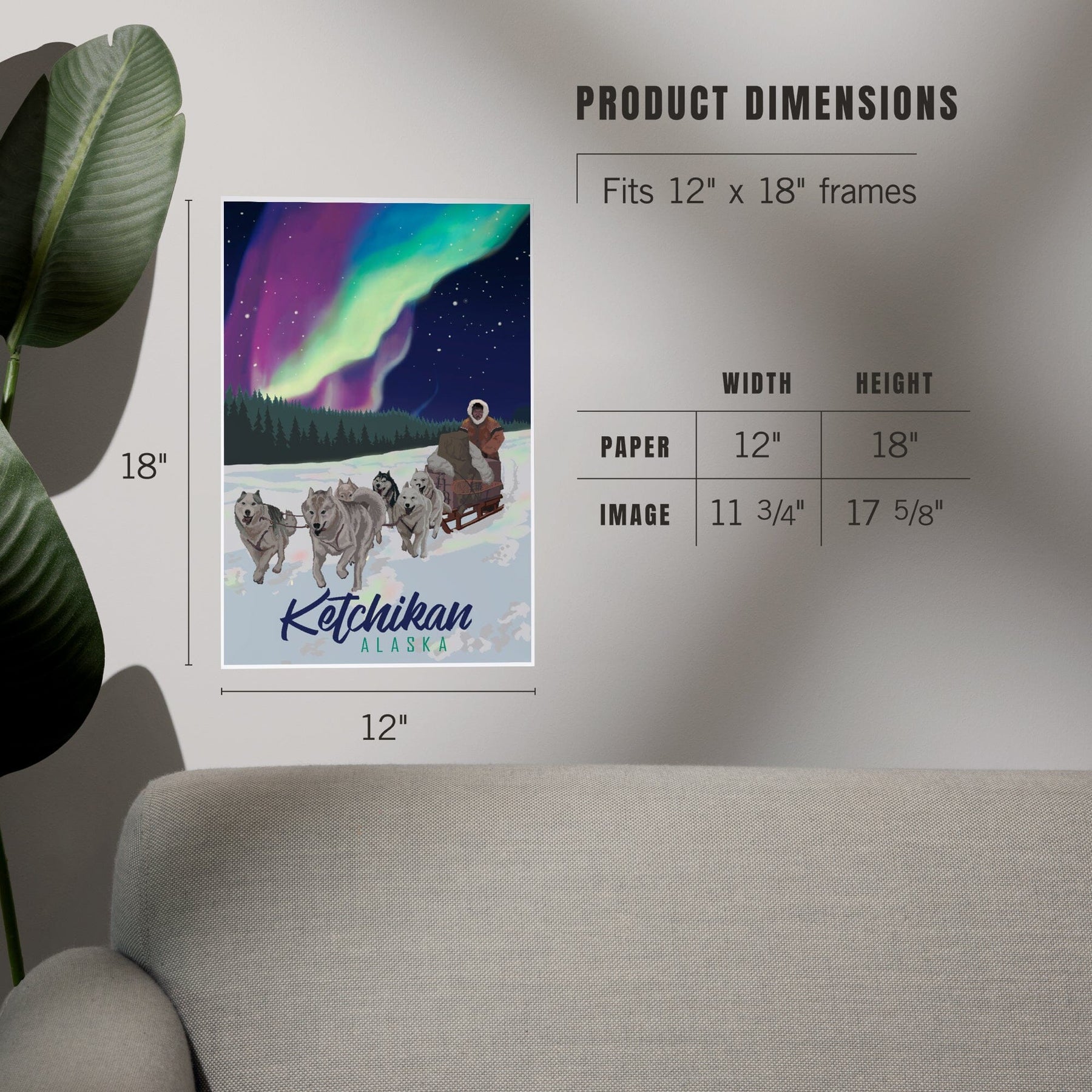Ketchikan, Alaska, Northern Lights, Dog Sled, Art & Giclee Prints - Lantern Press