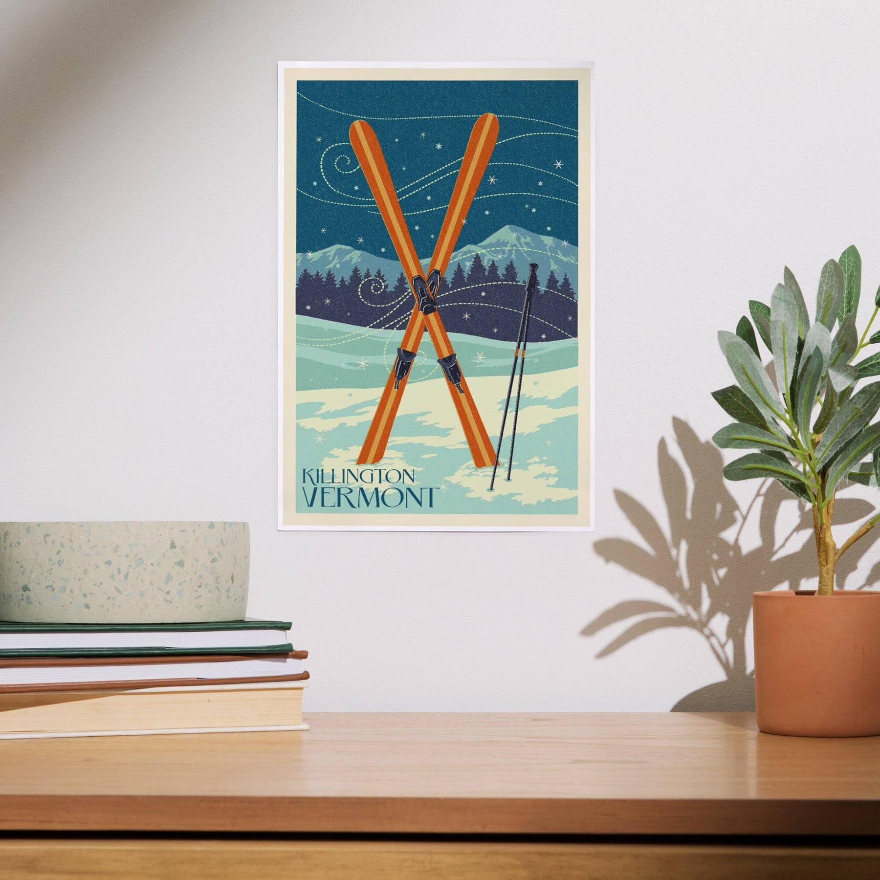 Killington, Vermont, Crossed Skis, Letterpress, Art & Giclee Prints - Lantern Press