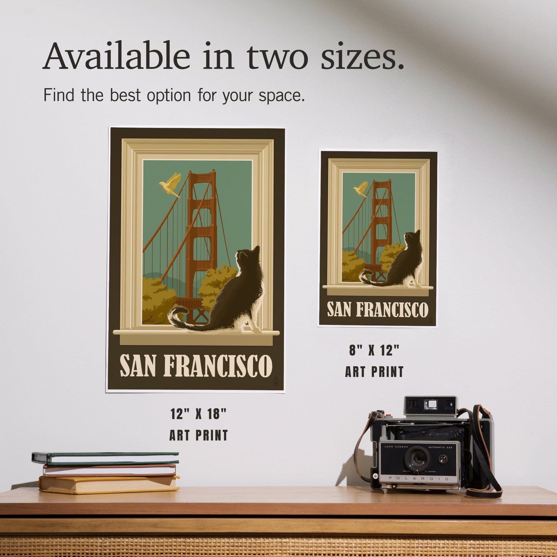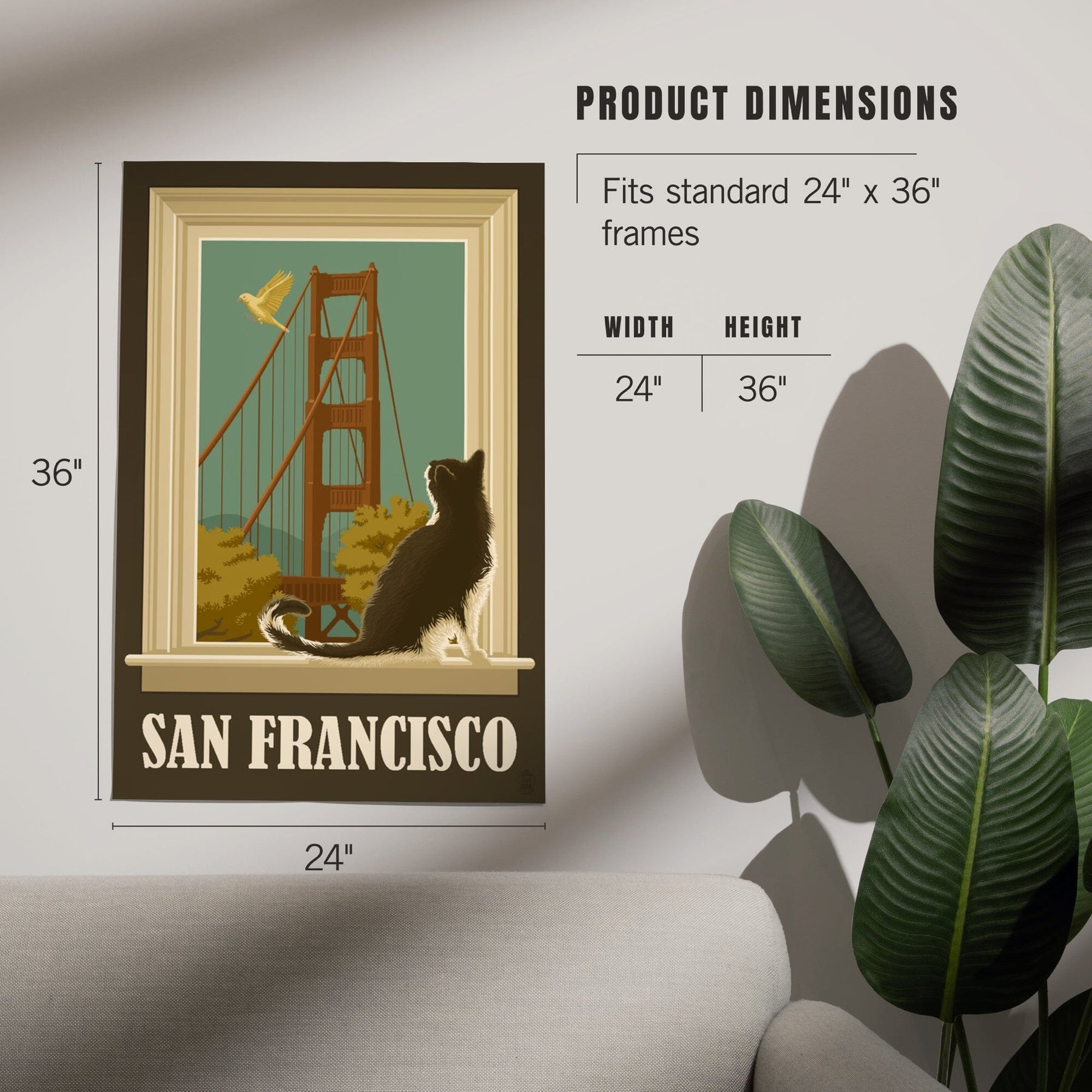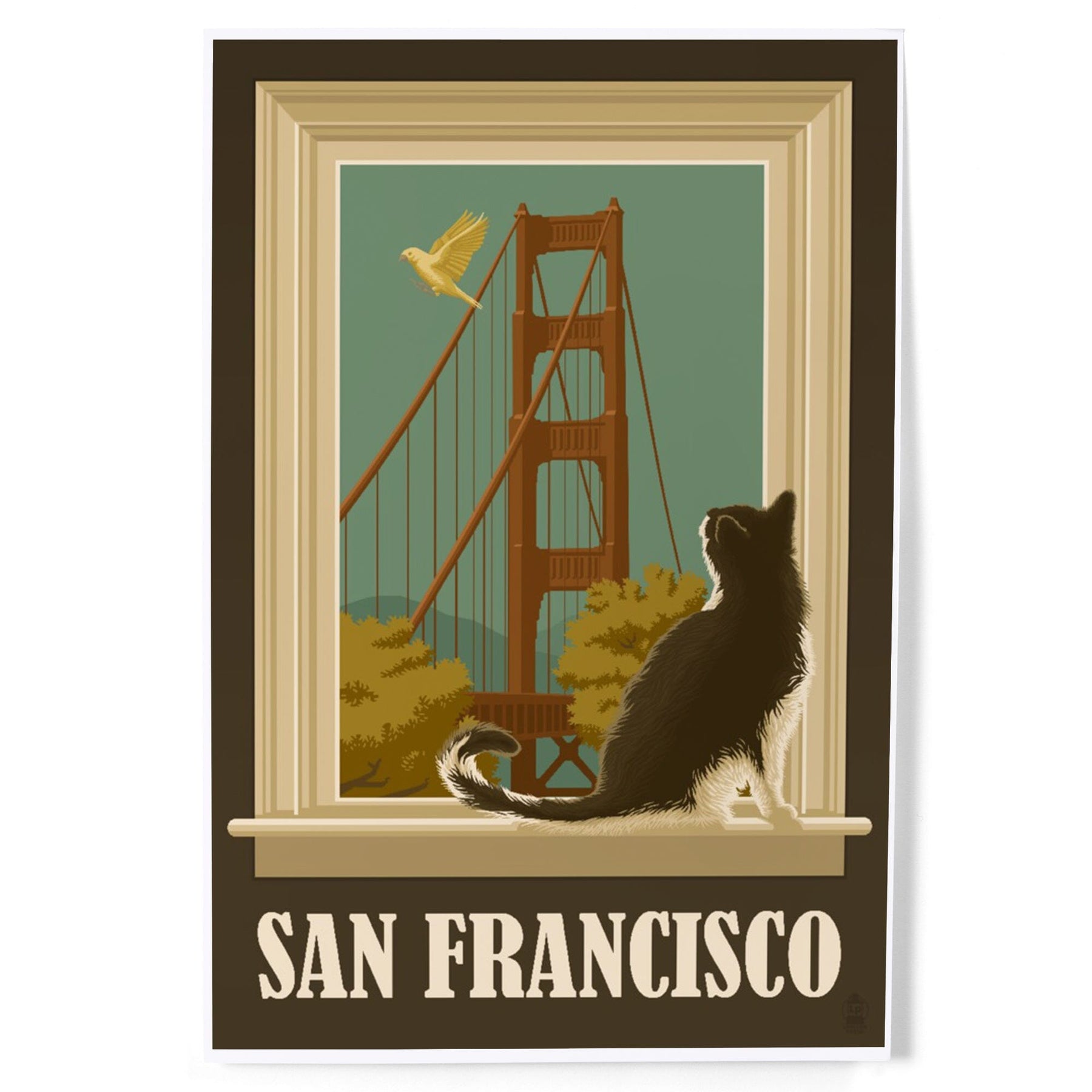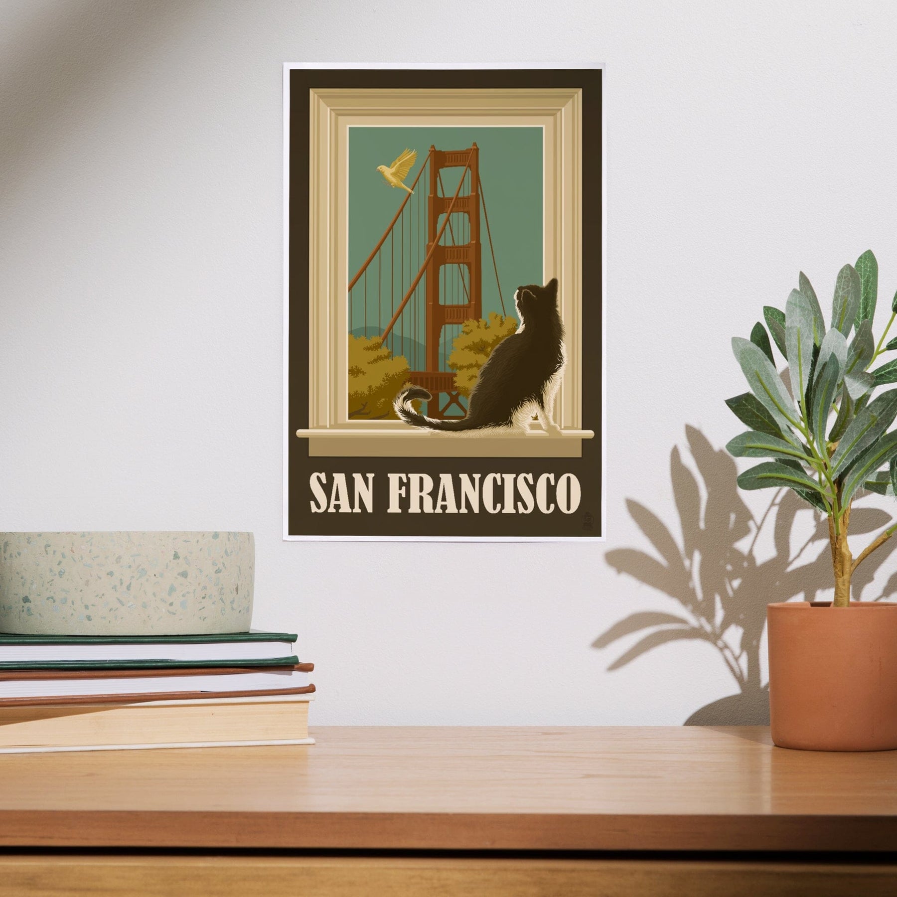 San Francisco, California, Golden Gate Bridge and Cat Window, Art & Giclee Prints Art Lantern Press