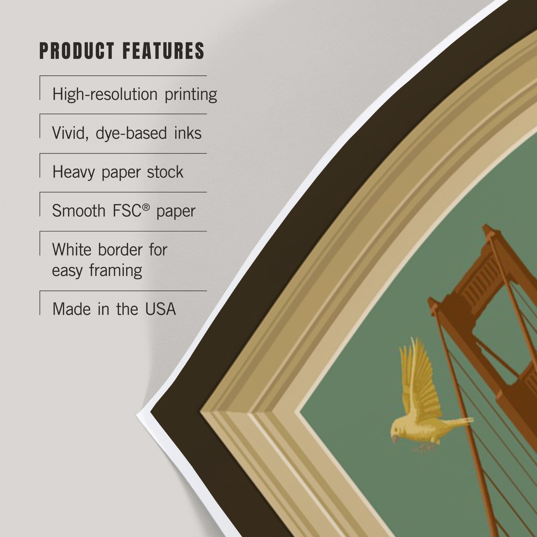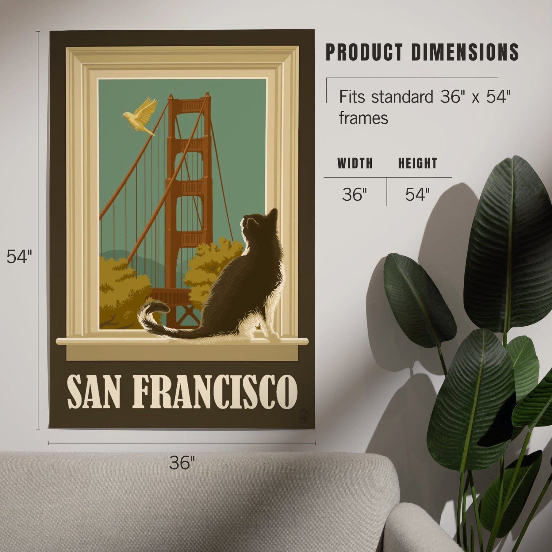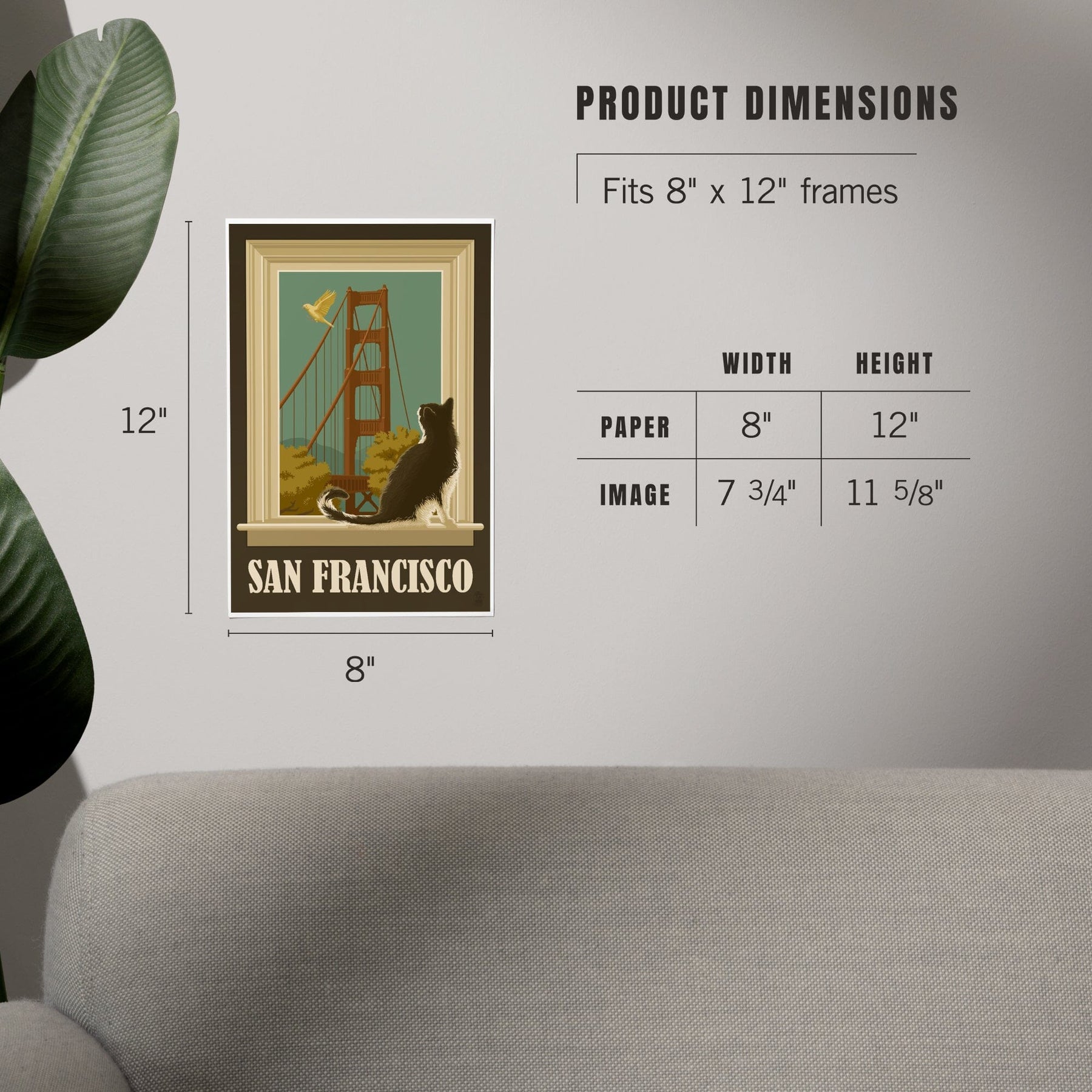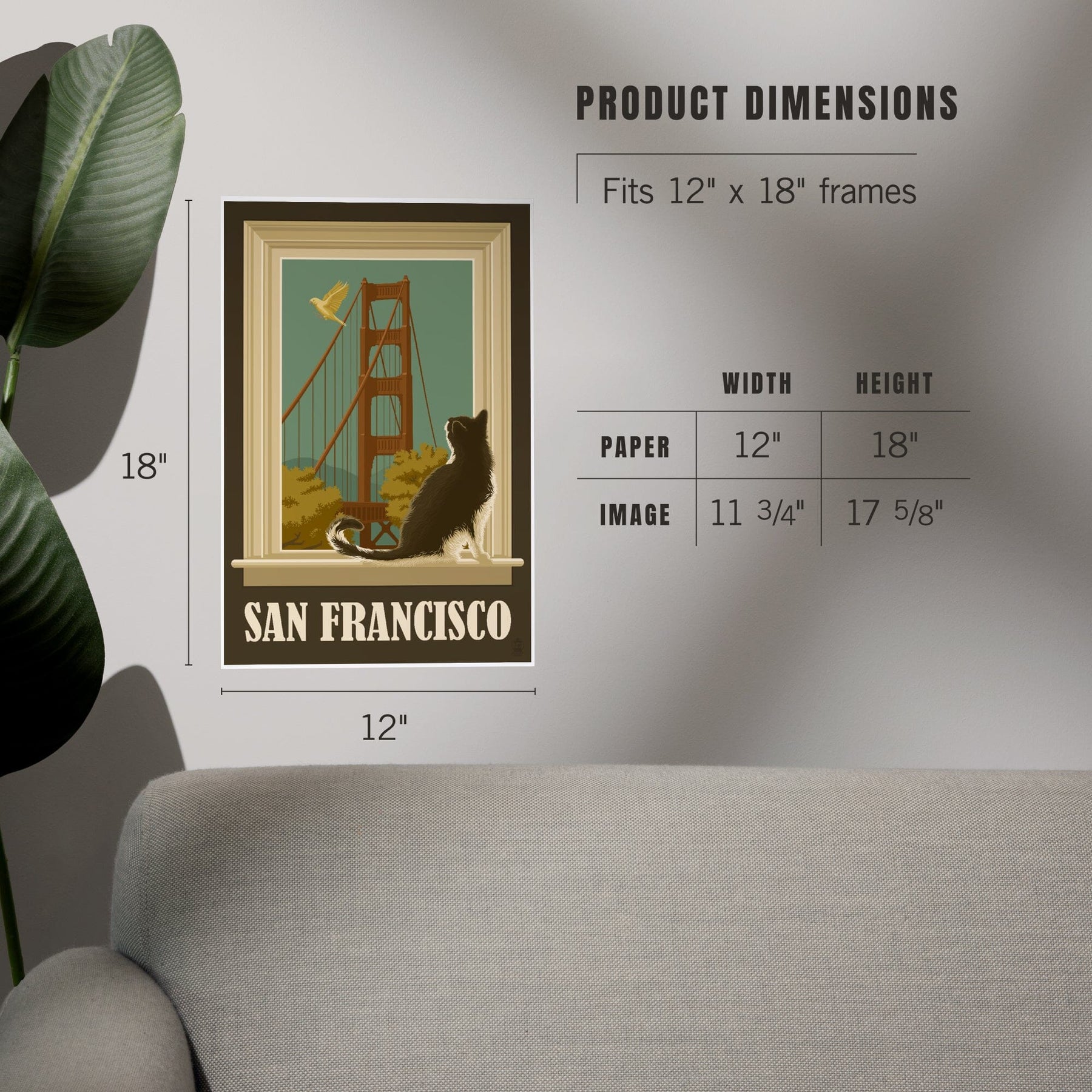 San Francisco, California, Golden Gate Bridge and Cat Window, Art & Giclee Prints Art Lantern Press
