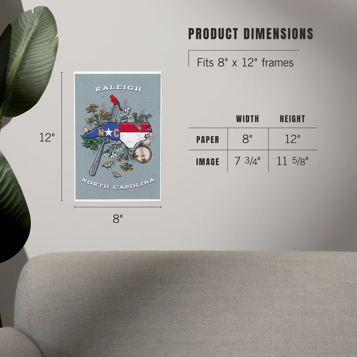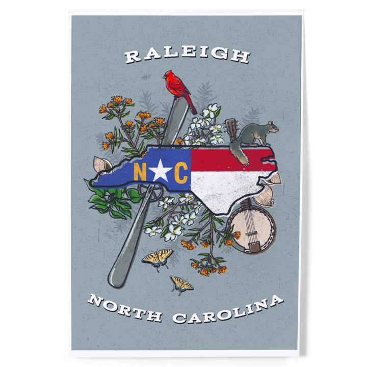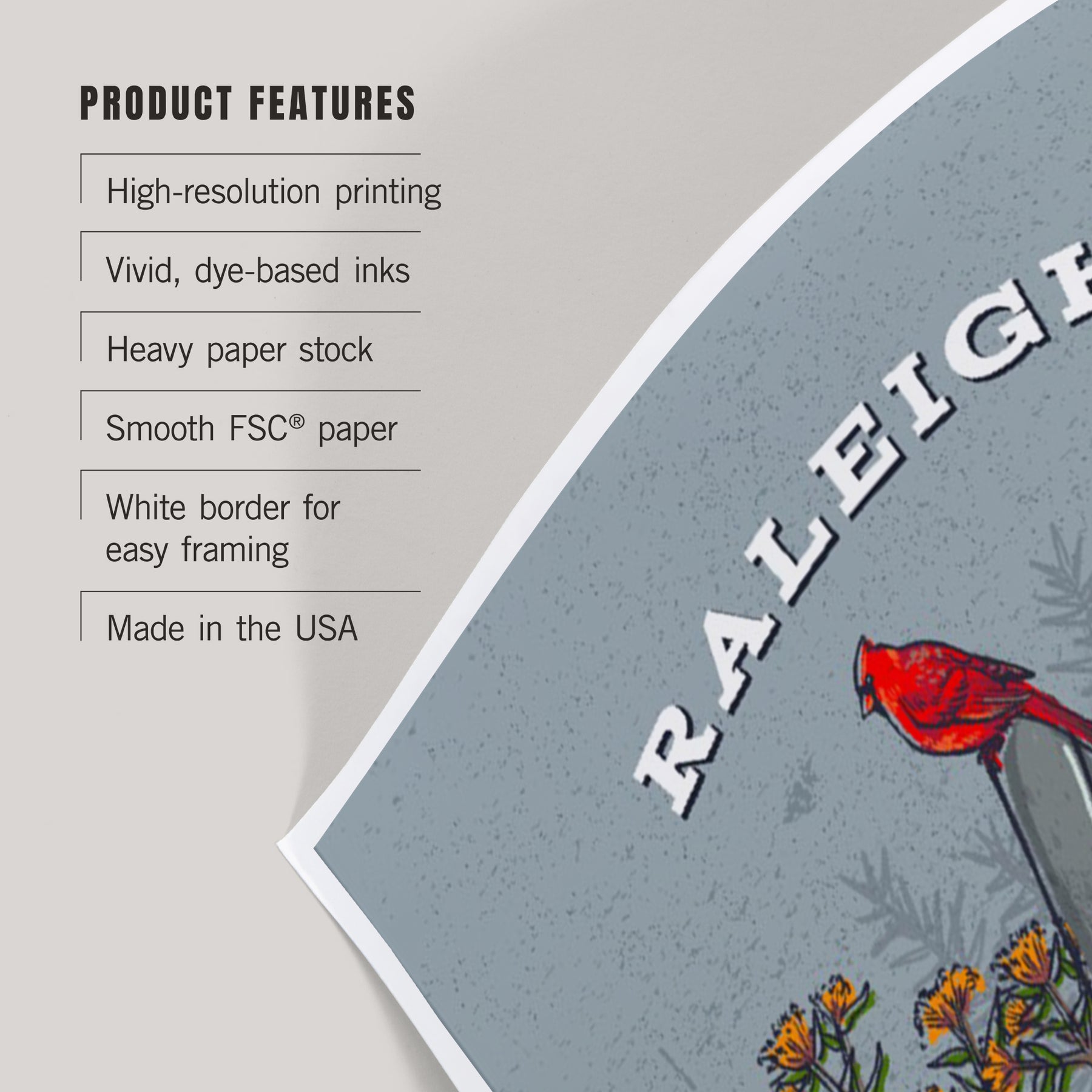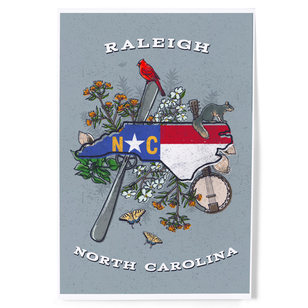 Raleigh, North Carolina, State Treasure Trove, Art & Giclee Prints Art Lantern Press