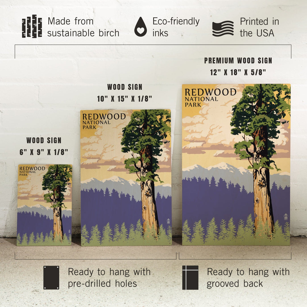 Redwood National Park, California, Towering Redwood, Lantern Press Artwork, Wood Signs and Postcards Wood Lantern Press